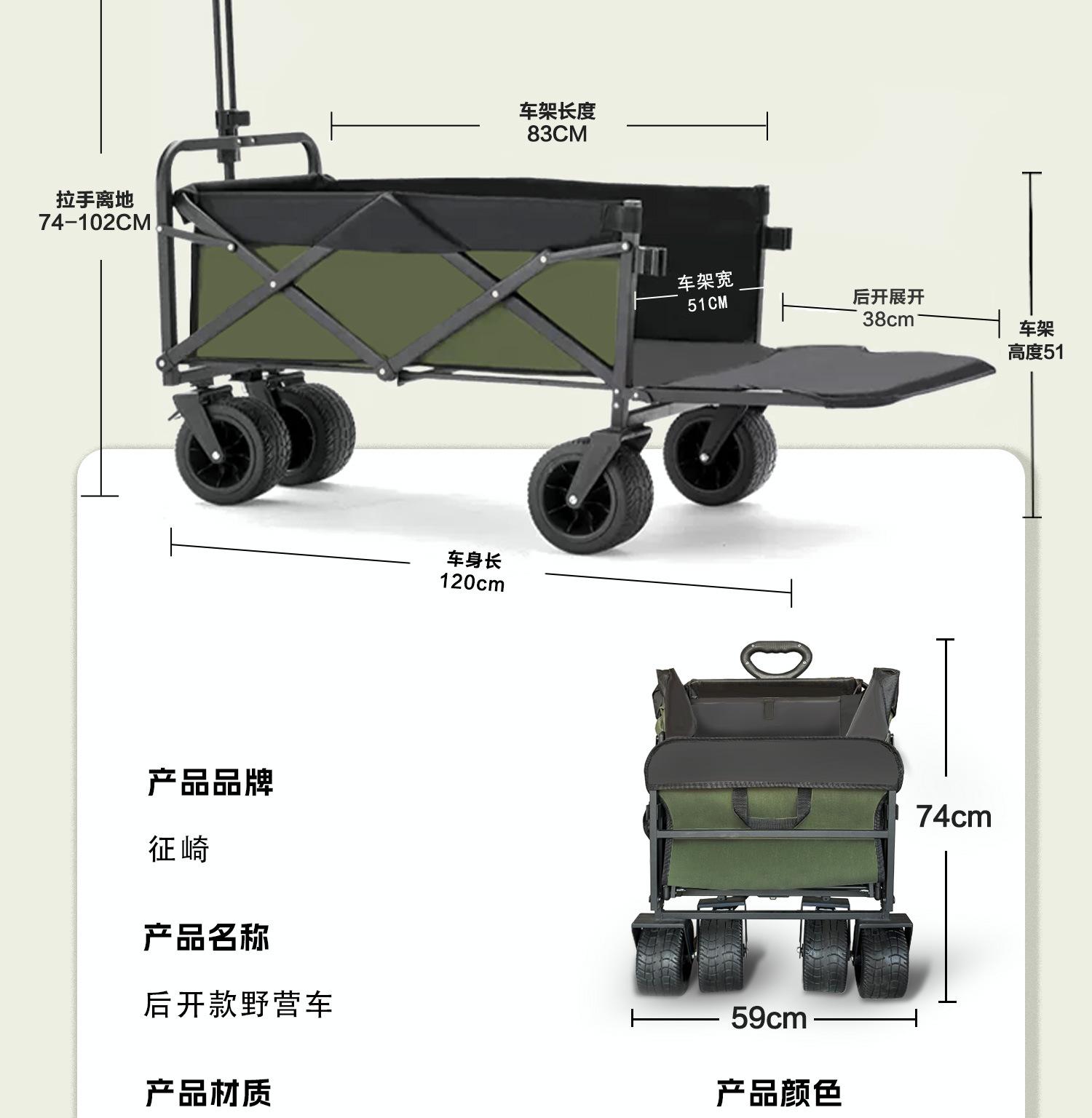 Carrinho de acampamento ao ar livre, reboque dobrável, barraca, carrinho de puxar grande, trailer de acampamento com abertura traseira puxada manualmente