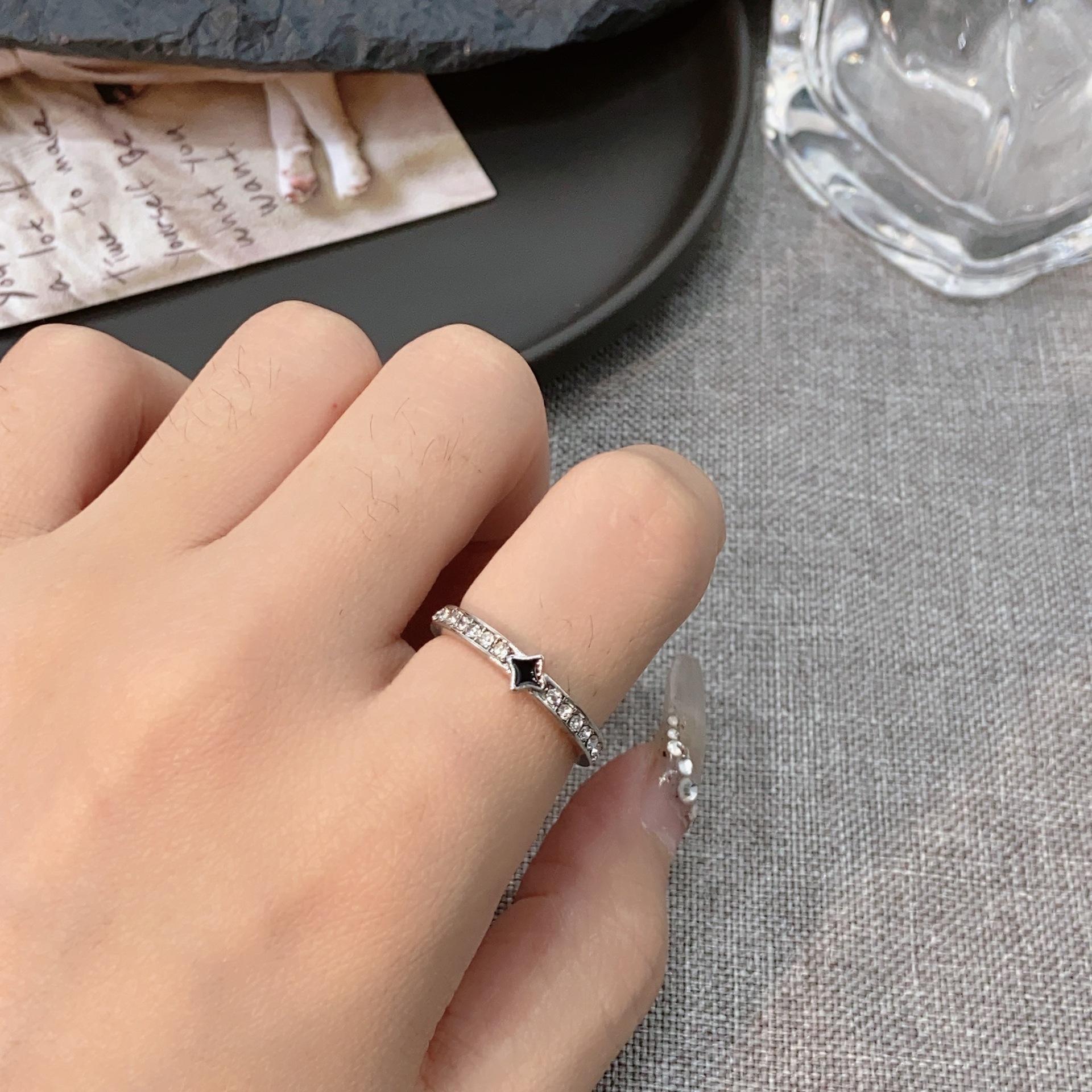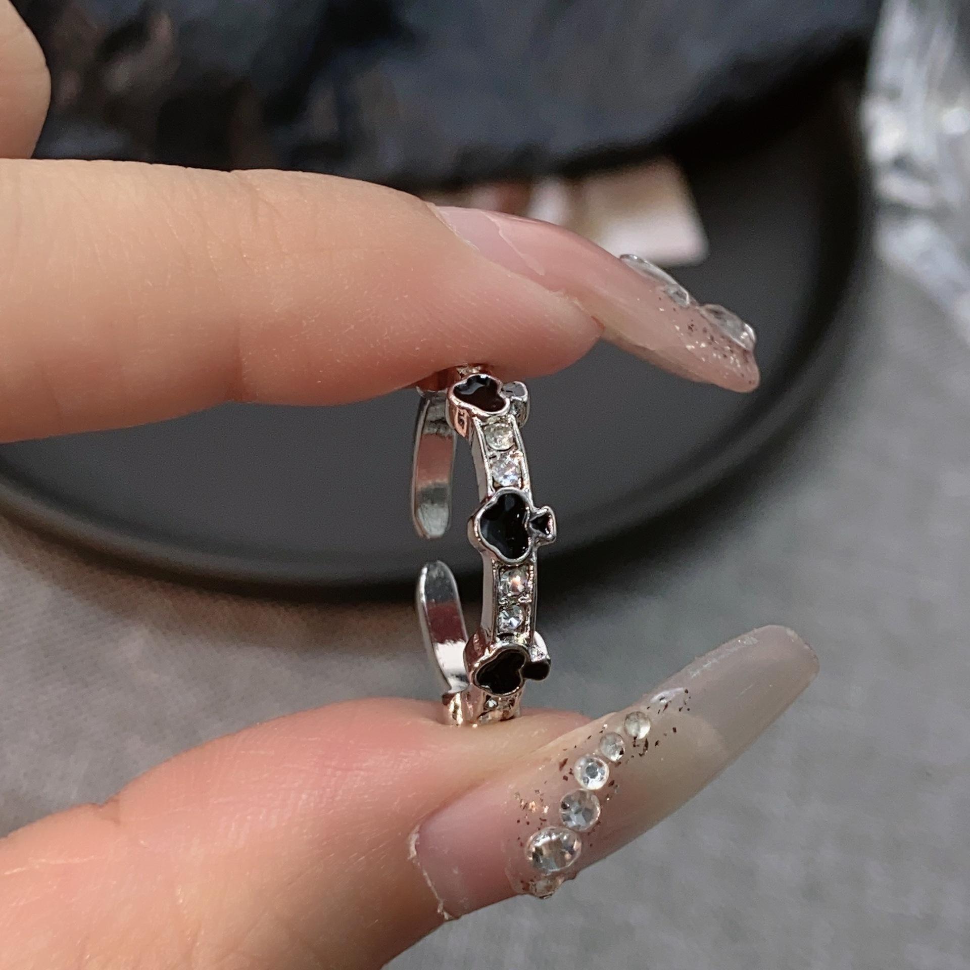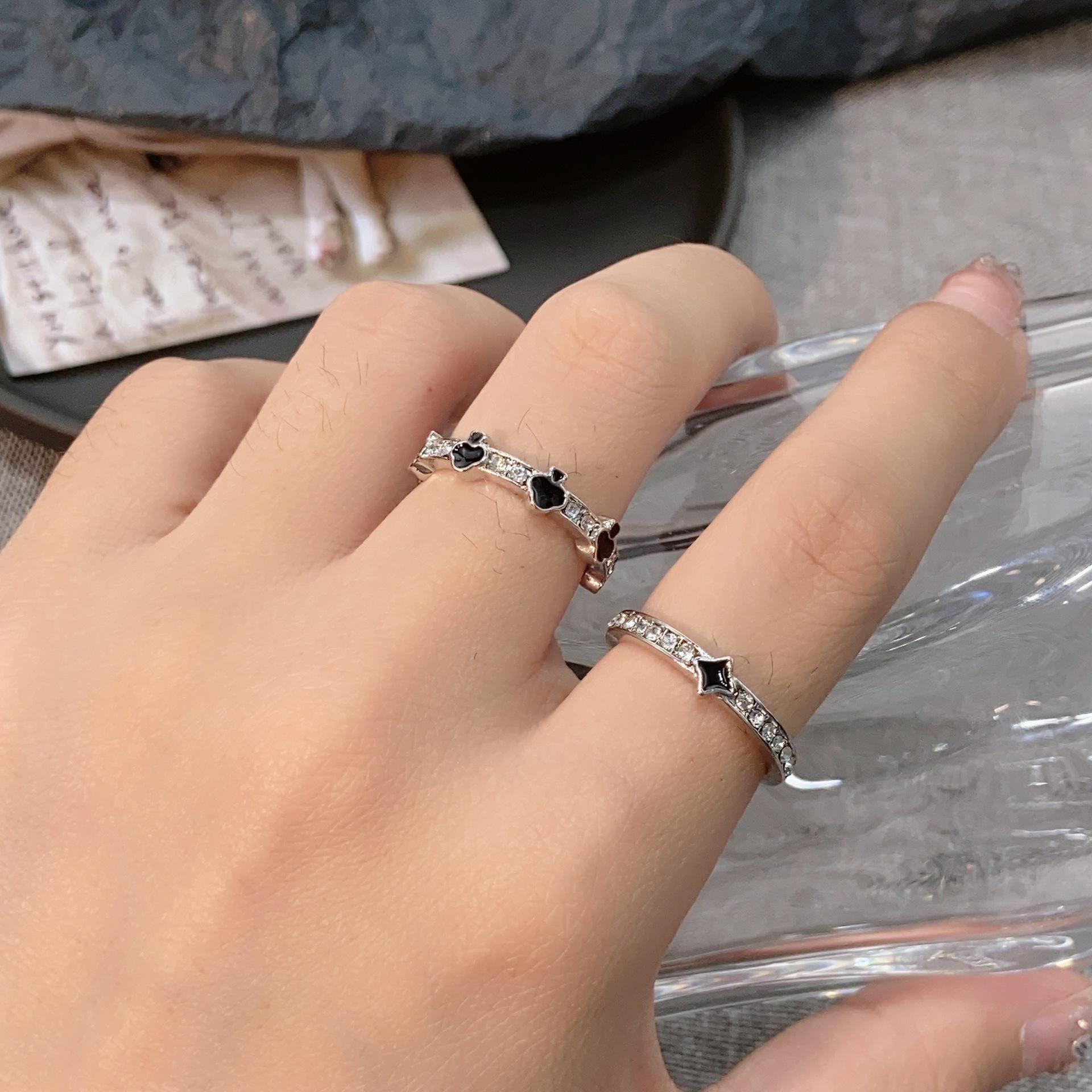 Compre Anel de esmalte preto Love Dropping, anel feminino leve, luxuoso, de alta qualidade, estilo descolado, design de nicho, anel versátil, moderno no atacado no Joom.pro