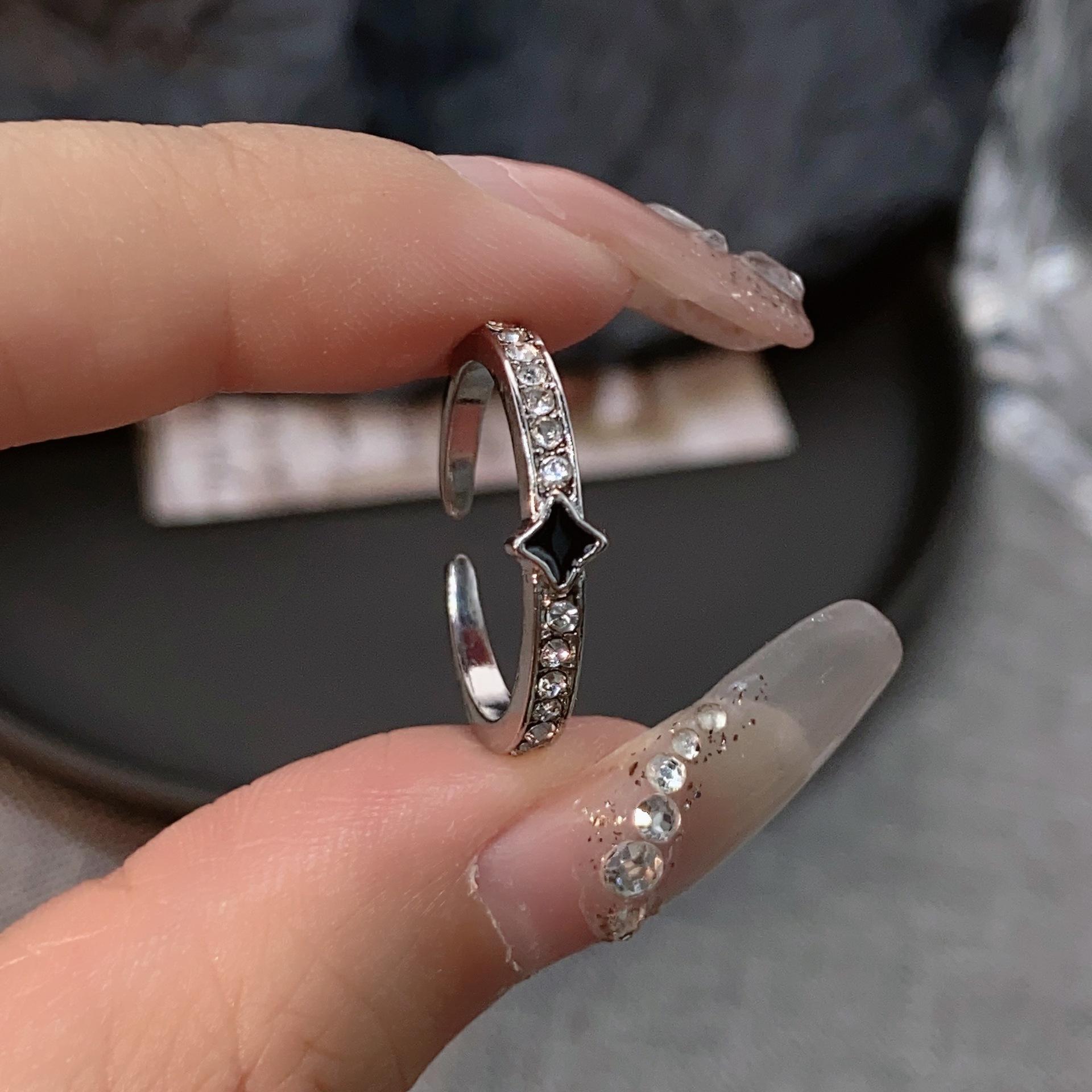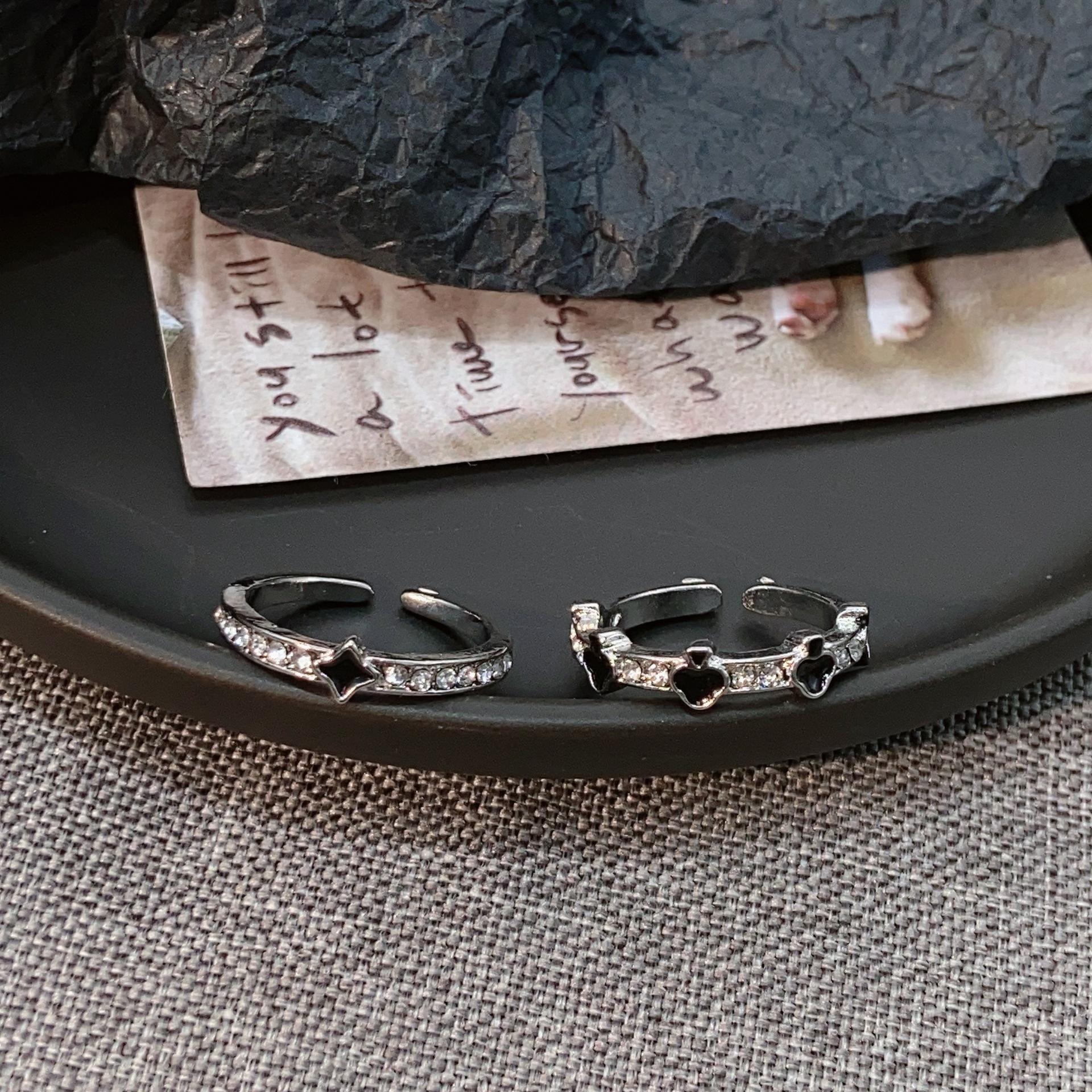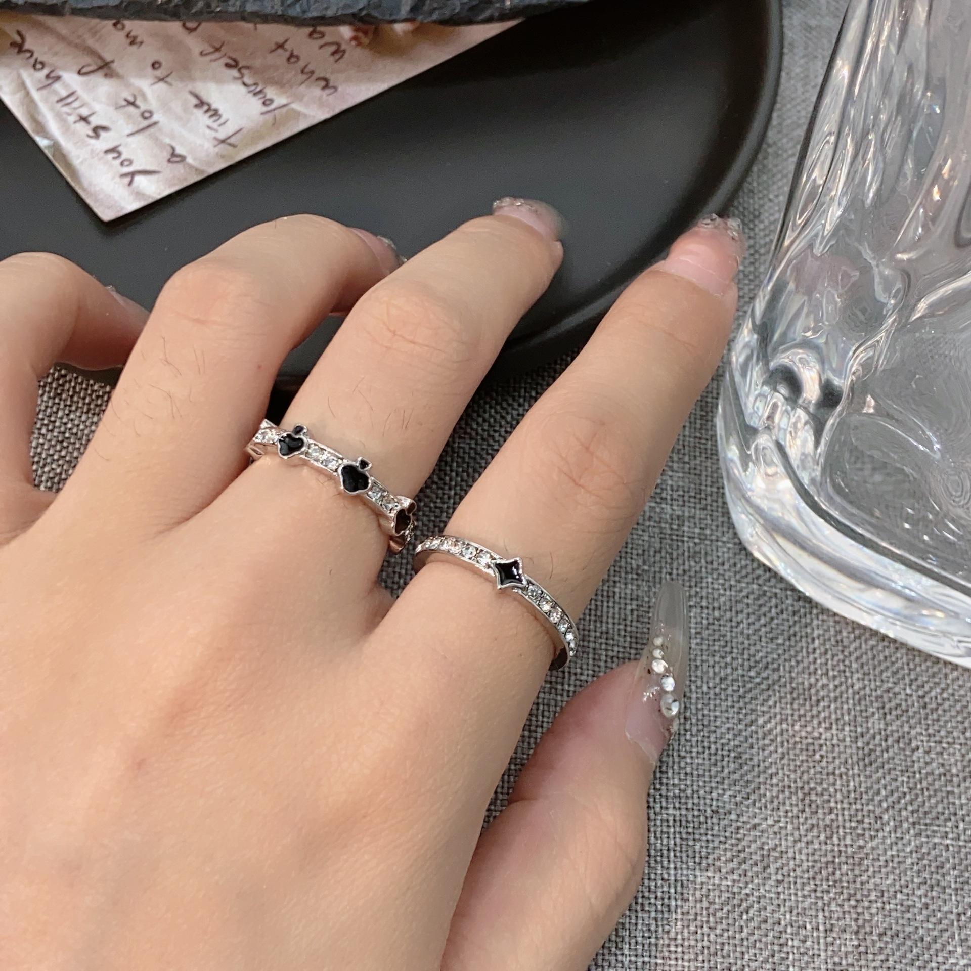 Compre Anel de esmalte preto Love Dropping, anel feminino leve, luxuoso, de alta qualidade, estilo descolado, design de nicho, anel versátil, moderno no atacado no Joom.pro