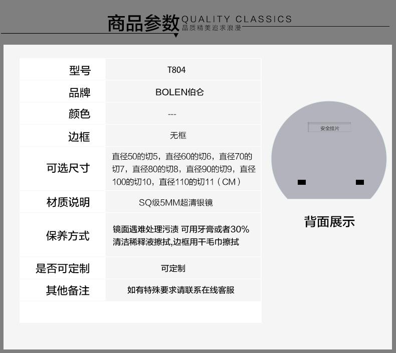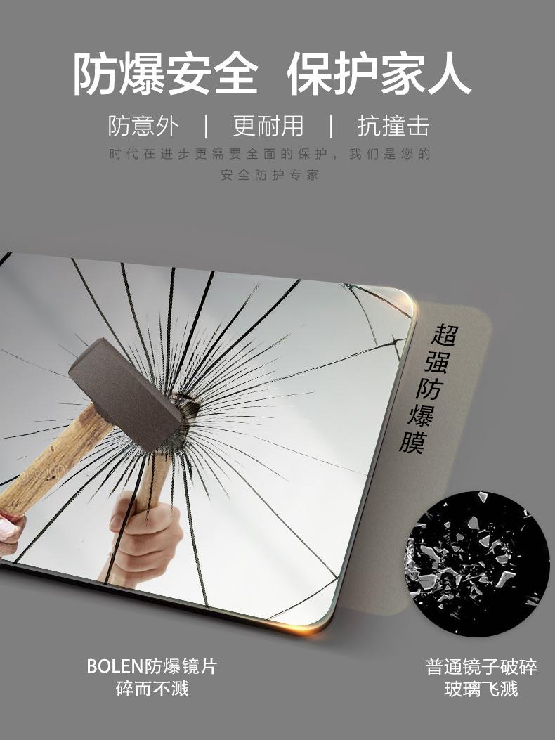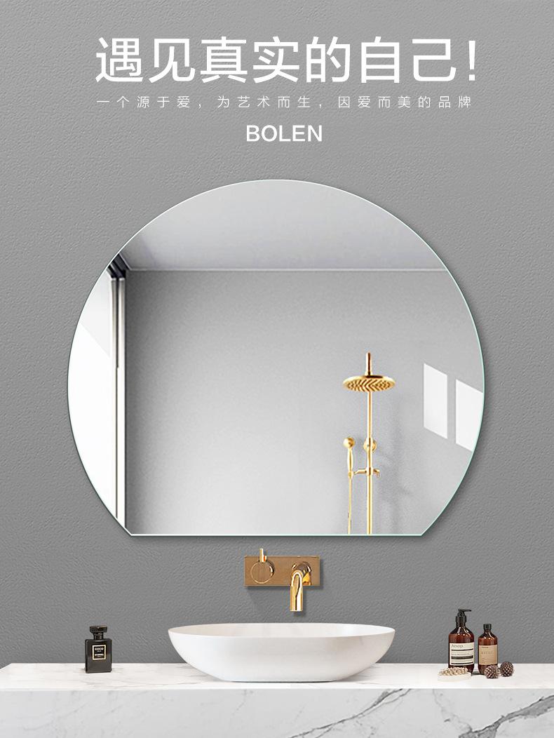 Bolen Espelho de pia de banheiro semicircular personalizado, espelho de penteadeira, espelho de parede à prova de explosão