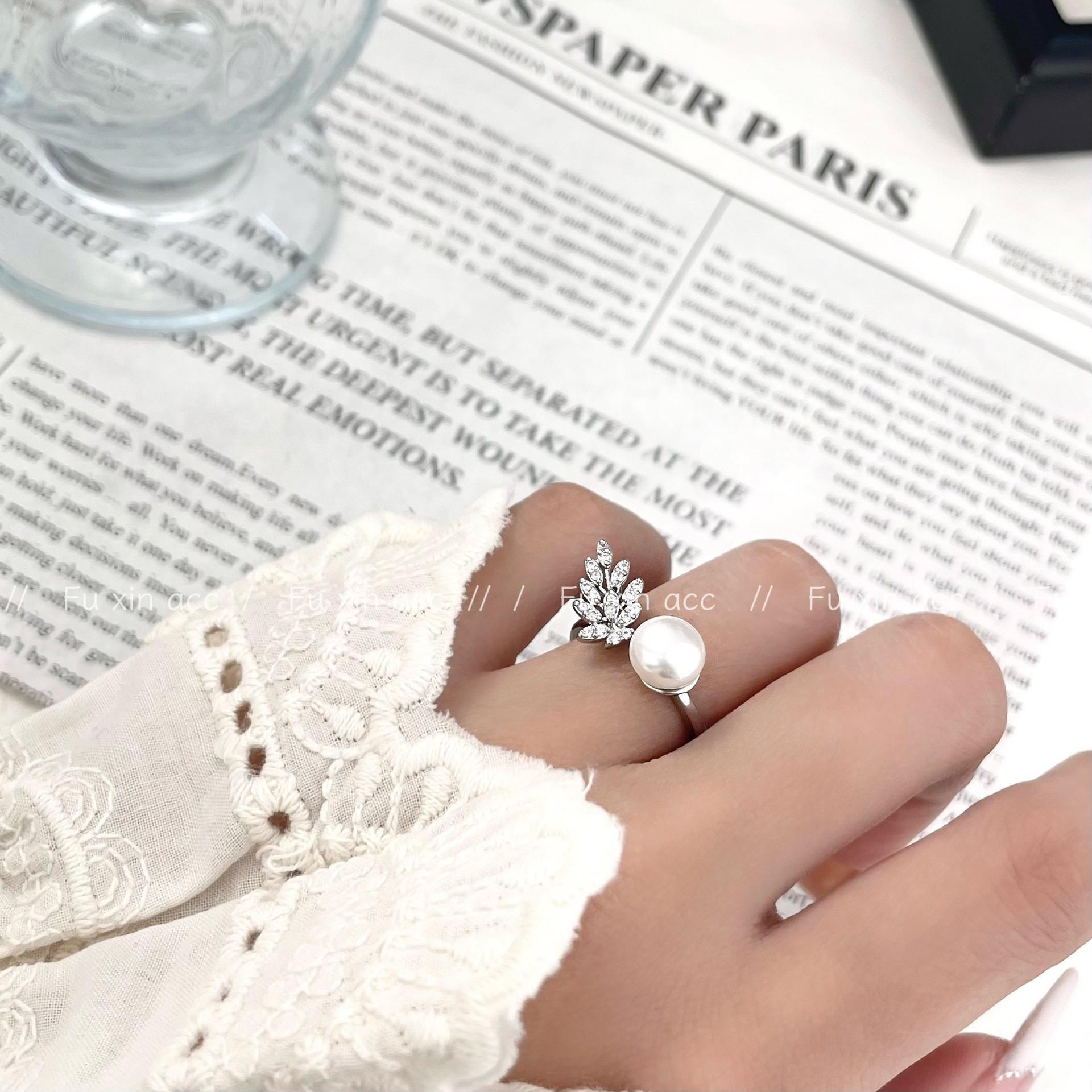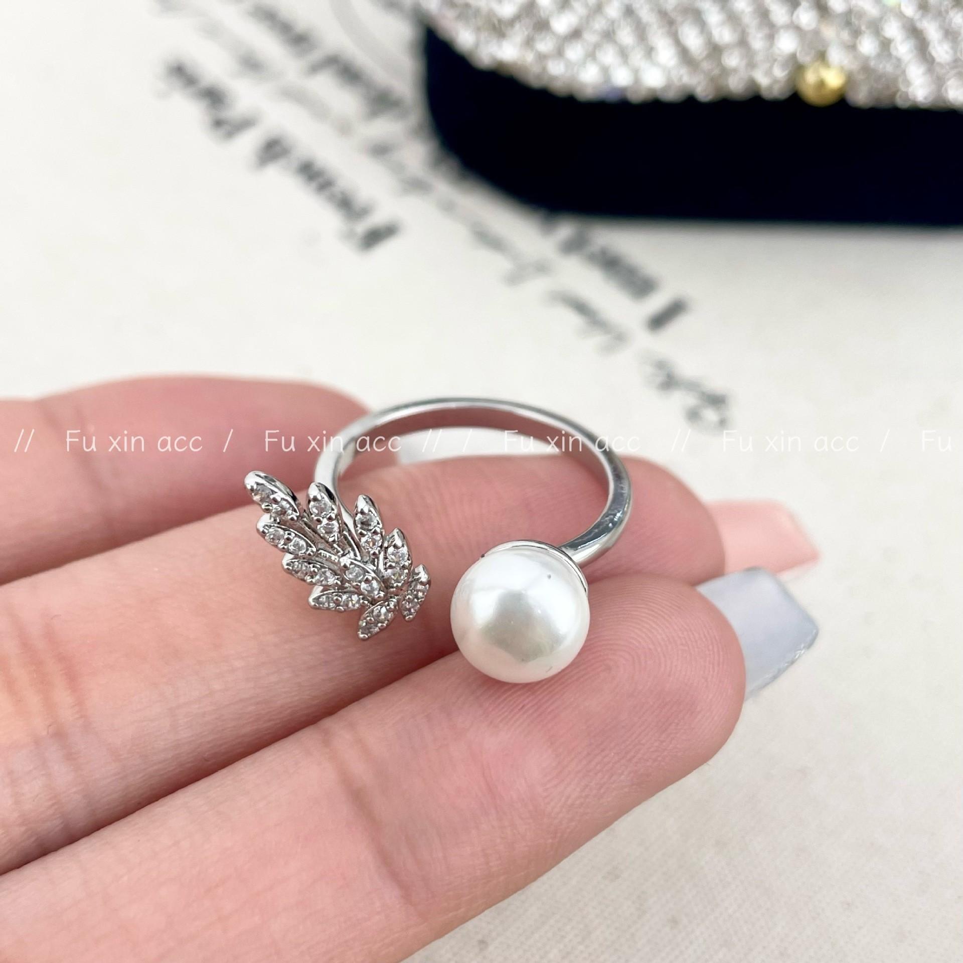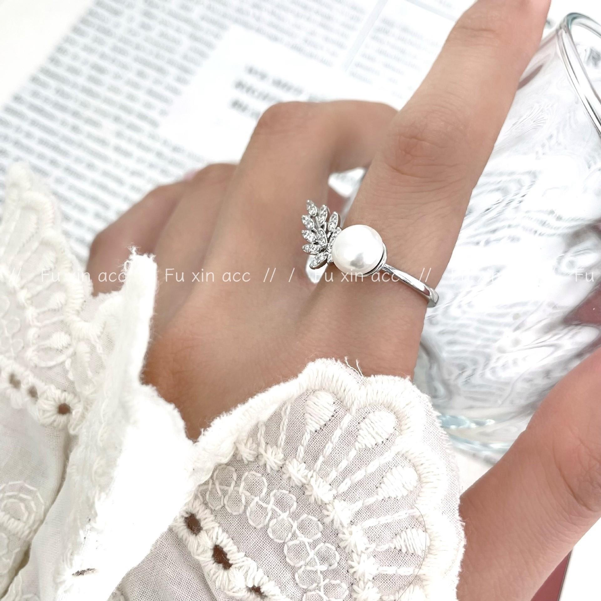 Meia Asas Pérola Anel de Abertura Frontal Moda Feminina de Luxo Leve Anel de Abertura para Todos os Pares Design de Nicho Joias de Alta Qualidade