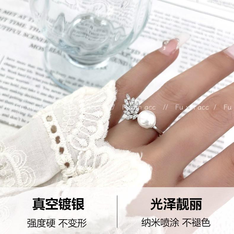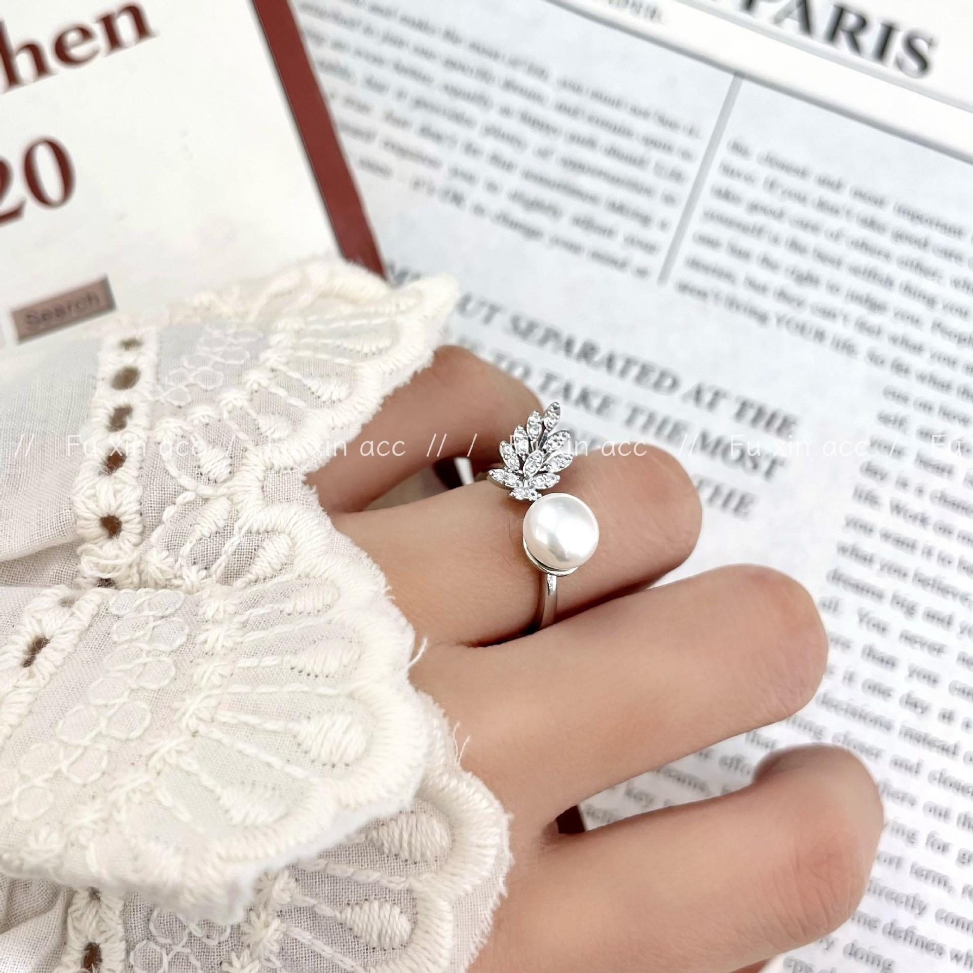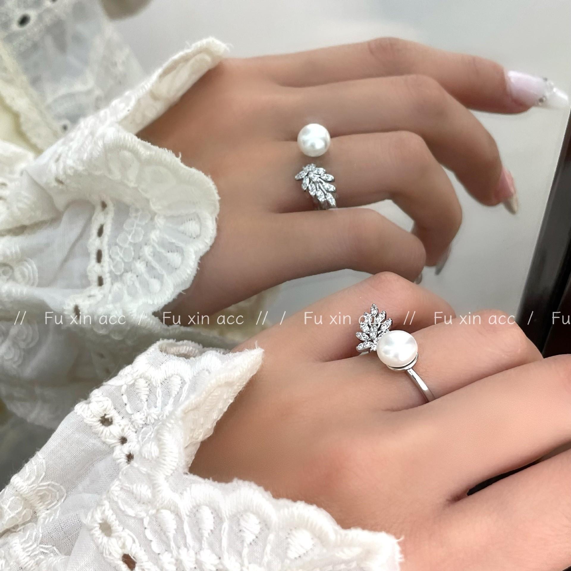 Meia Asas Pérola Anel de Abertura Frontal Moda Feminina de Luxo Leve Anel de Abertura para Todos os Pares Design de Nicho Joias de Alta Qualidade