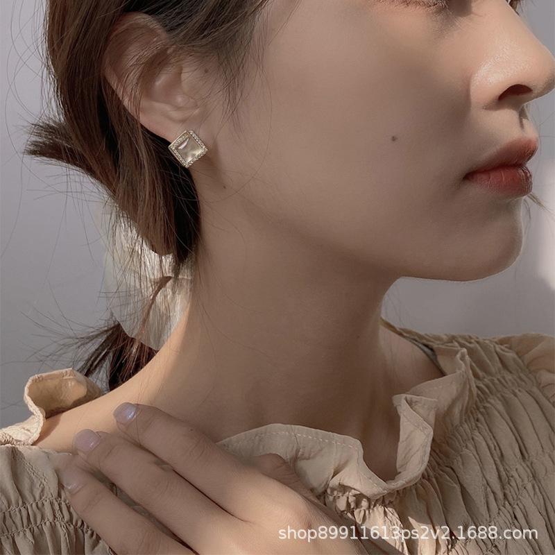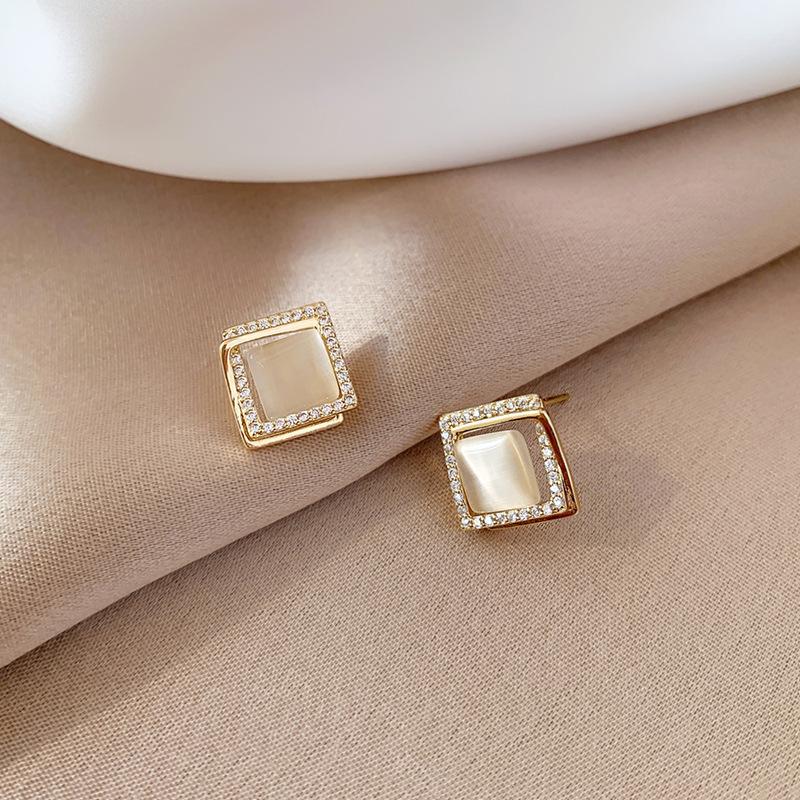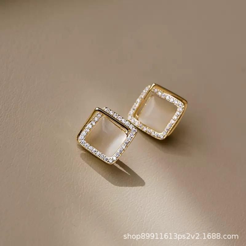 Compre Novos Brincos Quadrados Multicamadas Retro Franceses com Pedra Olho de Gato, Brincos Simples e Elegantes para Mulheres, Luxo Leve, Versátil e Sofisticado no atacado no Joom.pro