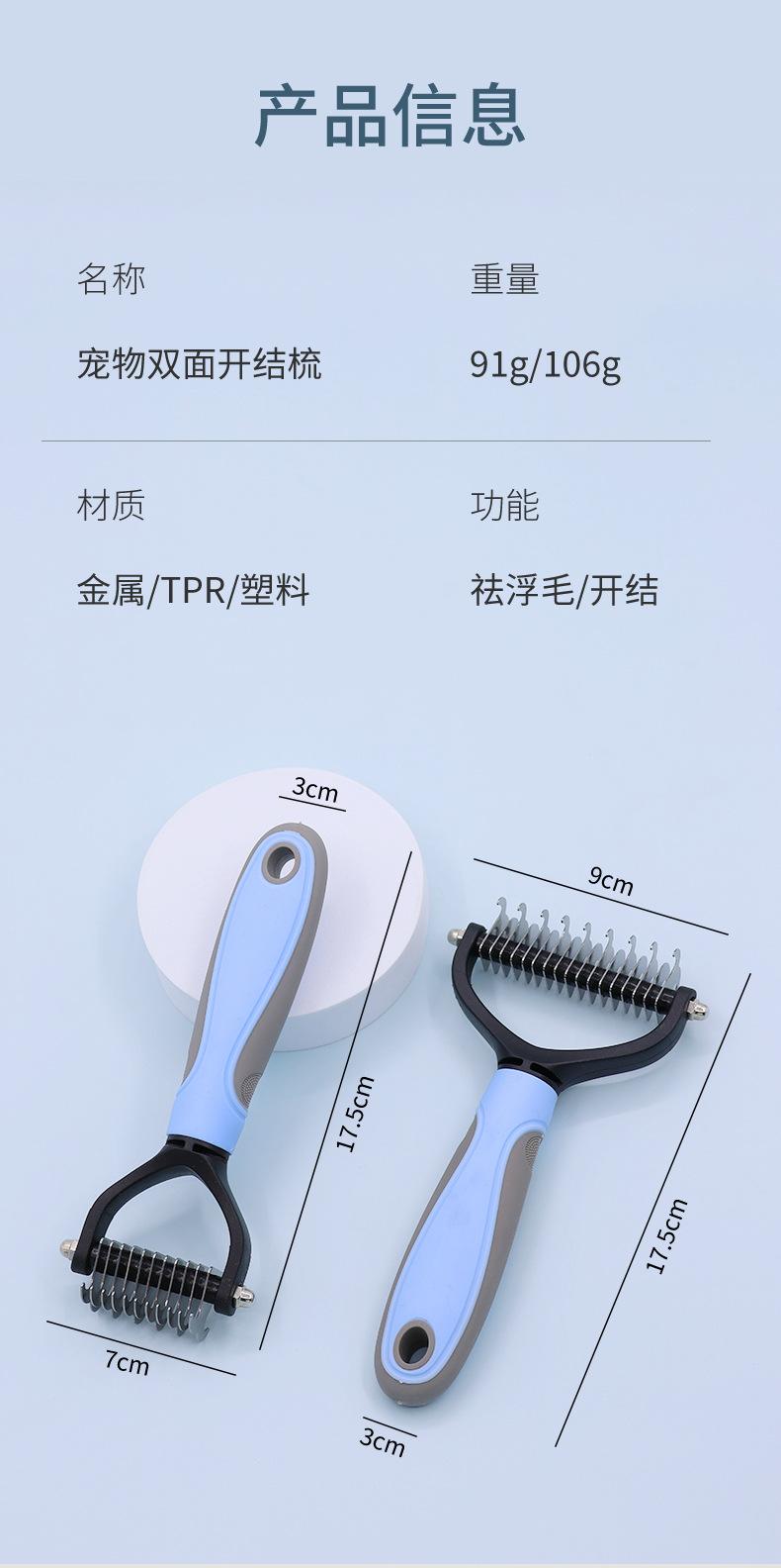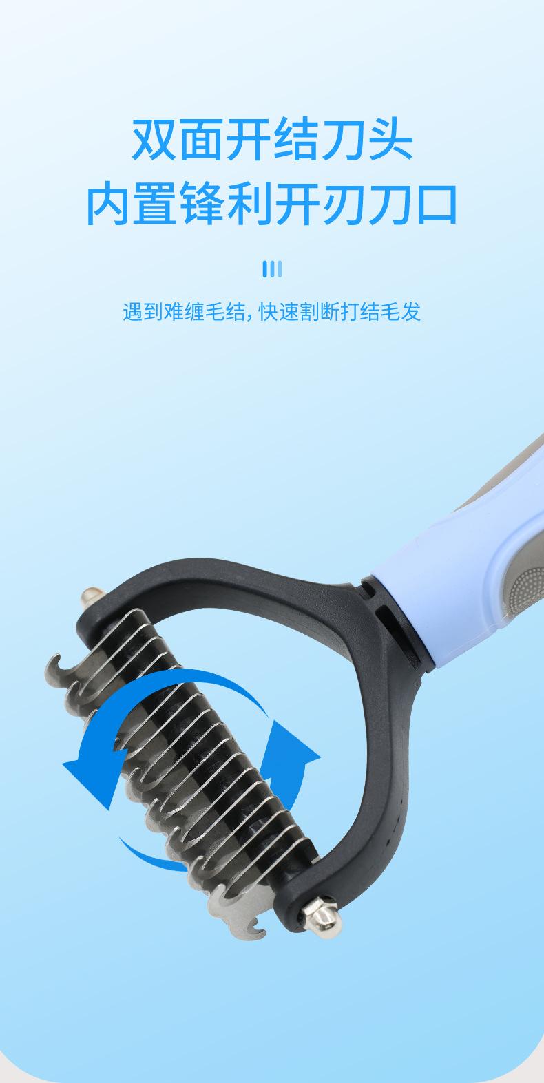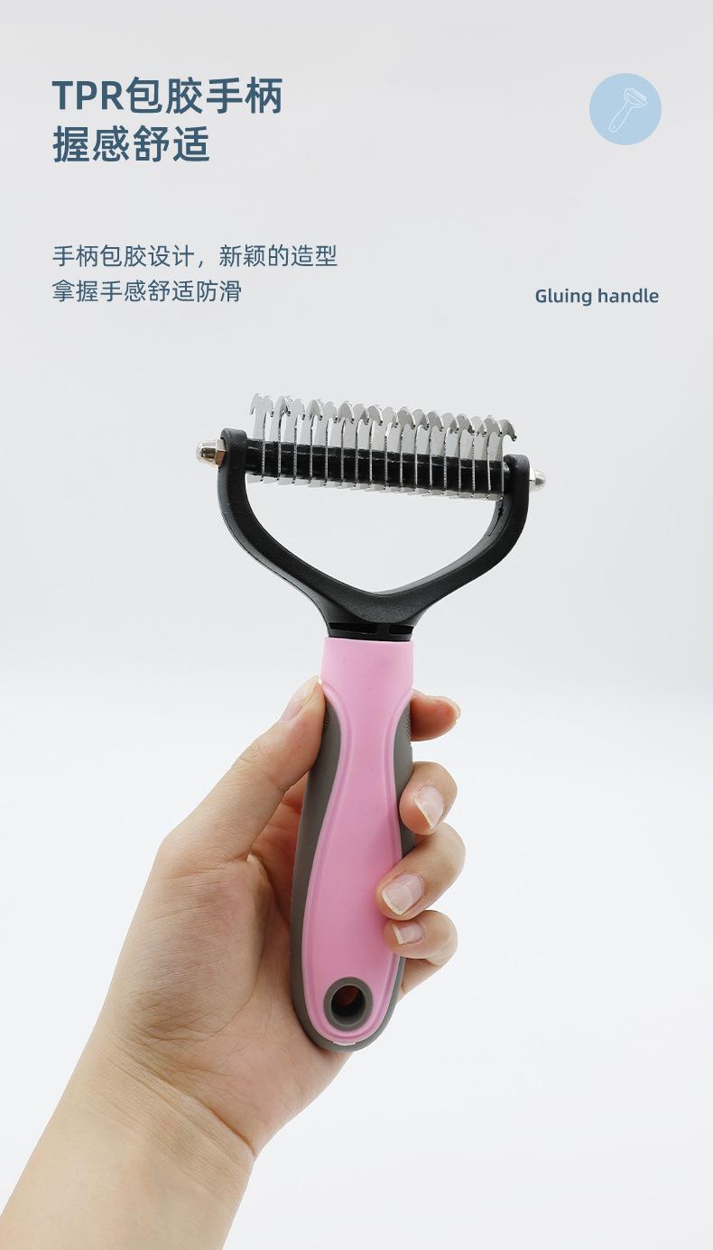 Pente de nó aberto para animais de estimação Pente para gatos Depilação para animais de estimação Suprimentos de beleza Pente de cabelo derretido Lâmina de aço inoxidável Pente para cães de dupla face