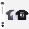 Roupas Masculinas Etai | Camiseta Listrada Retro Solta da Marca American Tide, Roupa Masculina de Alta Qualidade, Moderna, Lavada, Curta e Larga, Manga Curta