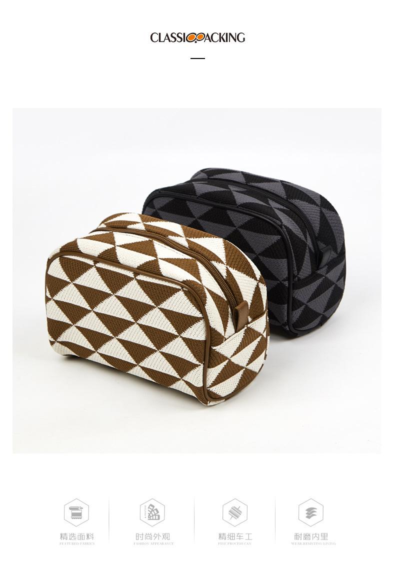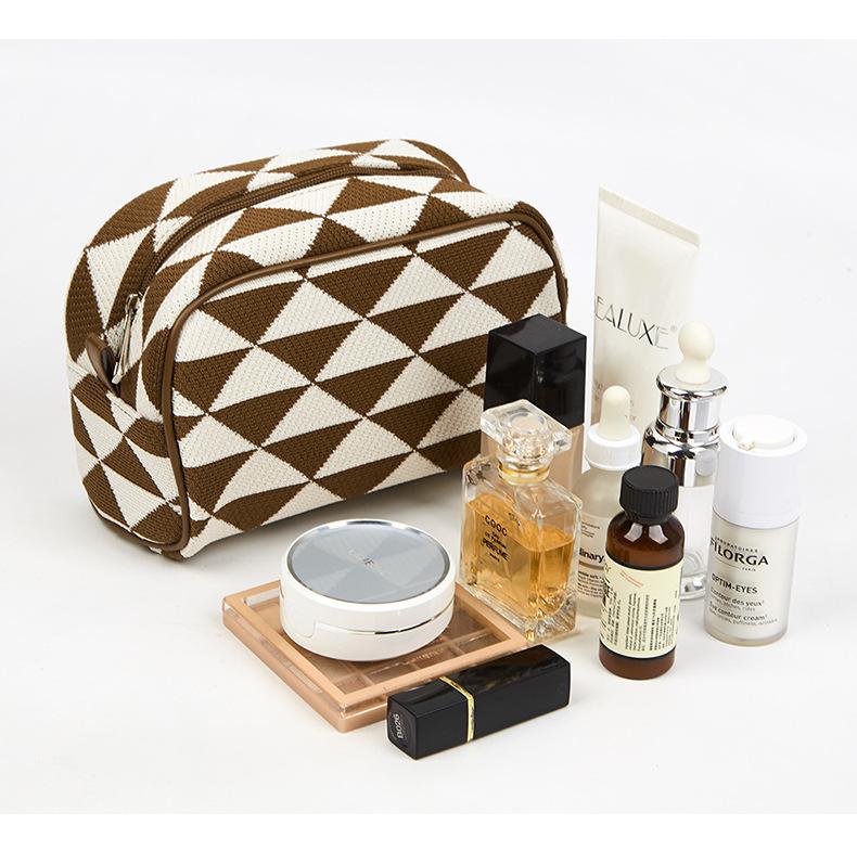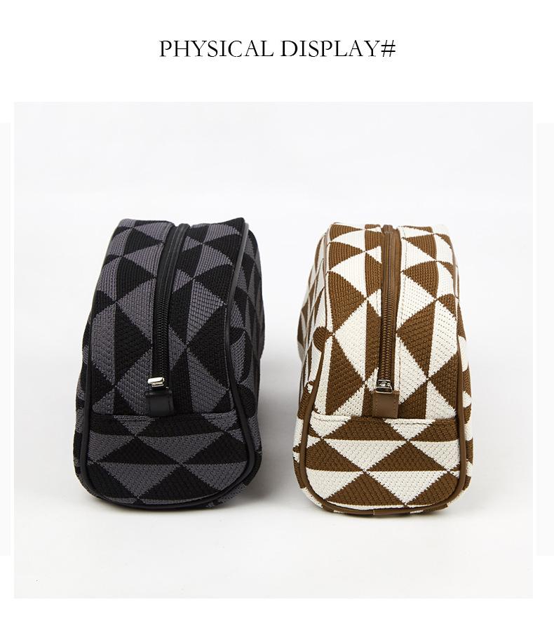 Bolsa de cosméticos geométrica de grande capacidade, organizadora de artigos de higiene pessoal portátil de viagem, bolsa de cosméticos com zíper de poliéster, personalização de fábrica