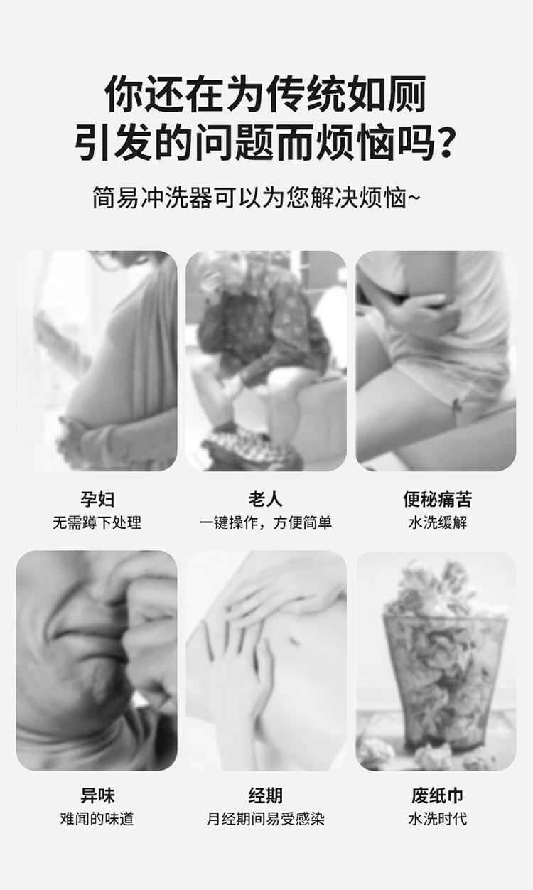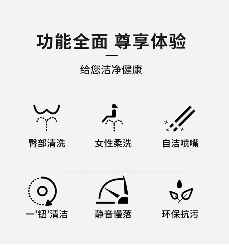 Wash buttocks, Women wash, Seat heating, Water pressure adjustment, Nozzle self-cleaning