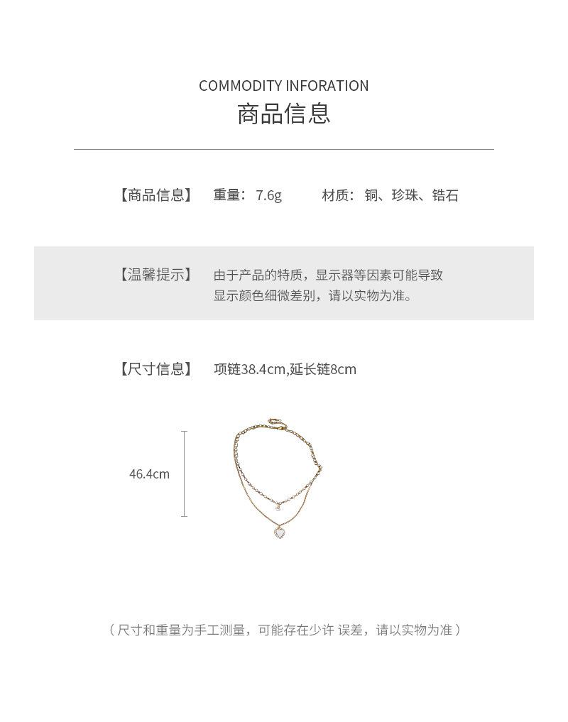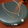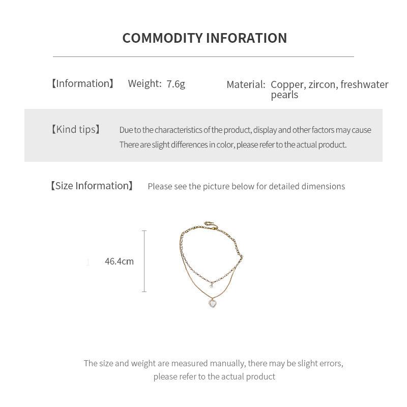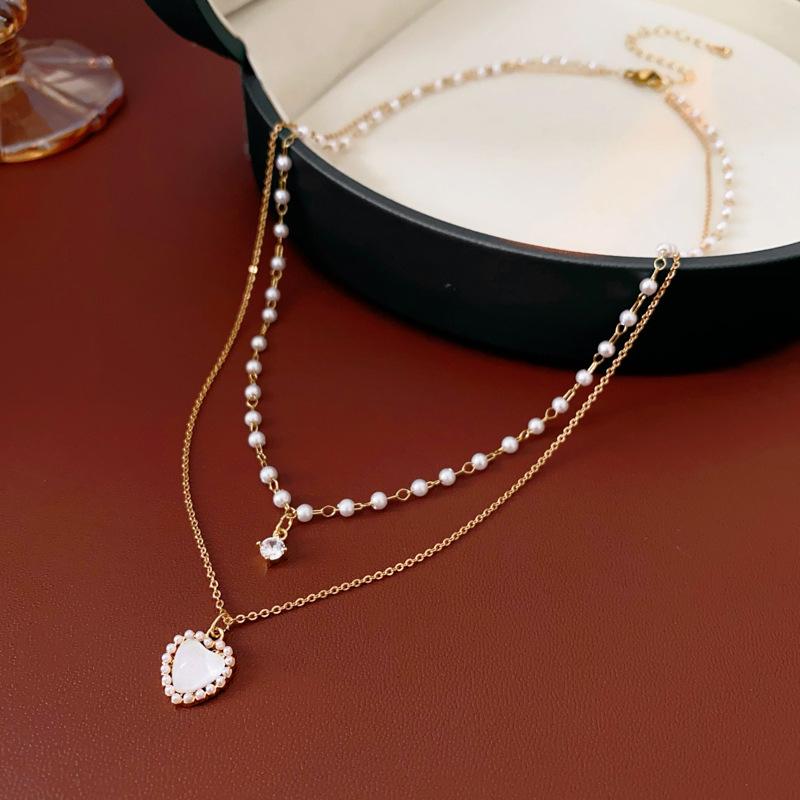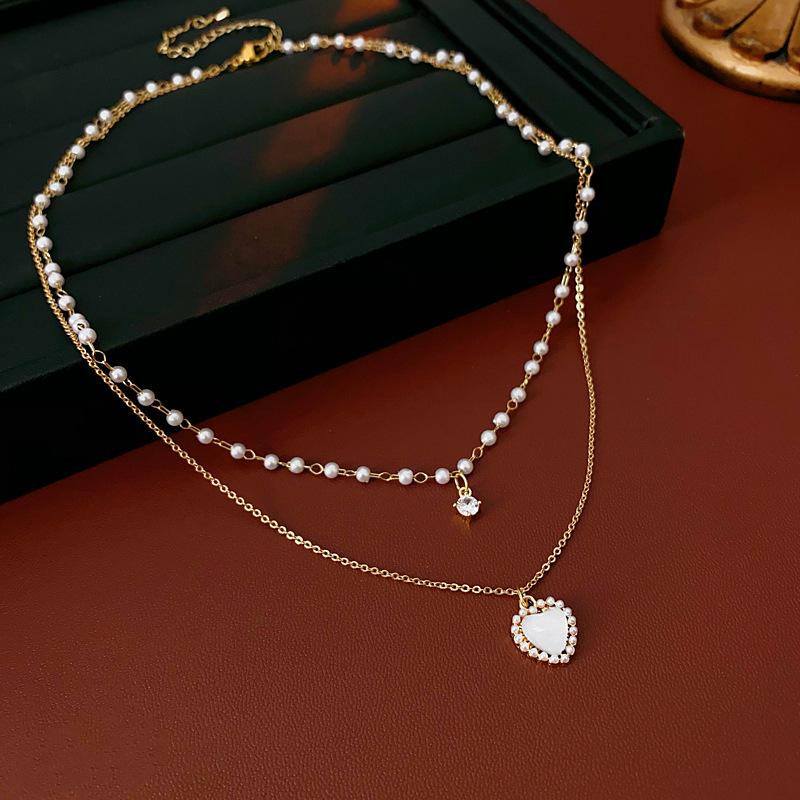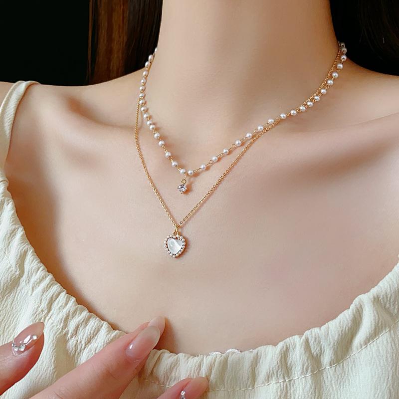 Colar de amor, estilo de luxo leve, corrente de clavícula de camada dupla de pérolas de zircônia, colar moderno, simples, sofisticado e elegante, fábrica de casa
