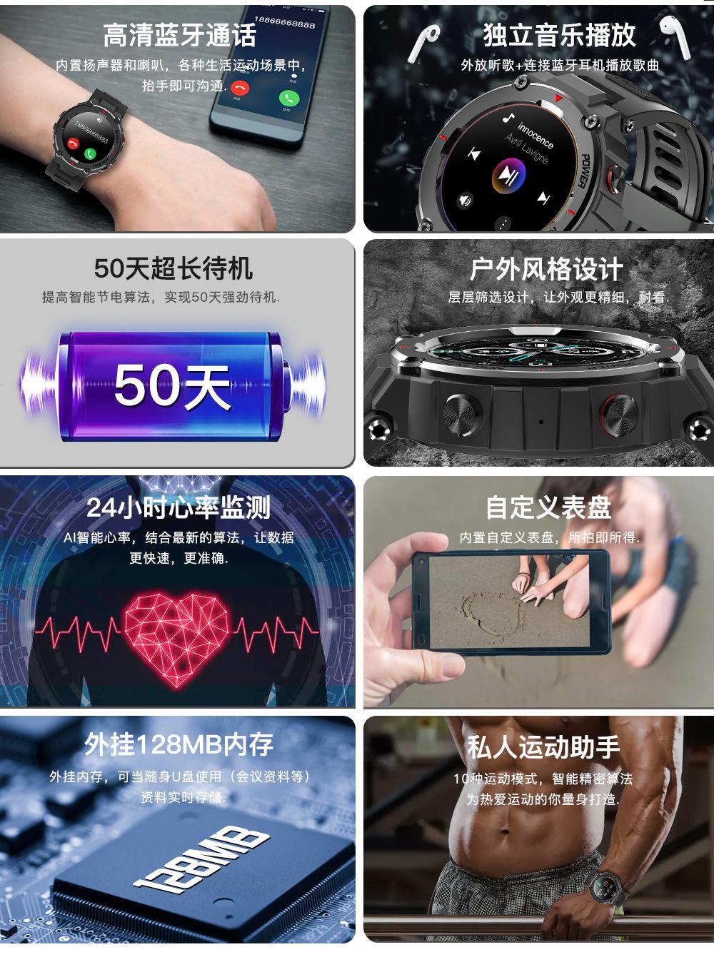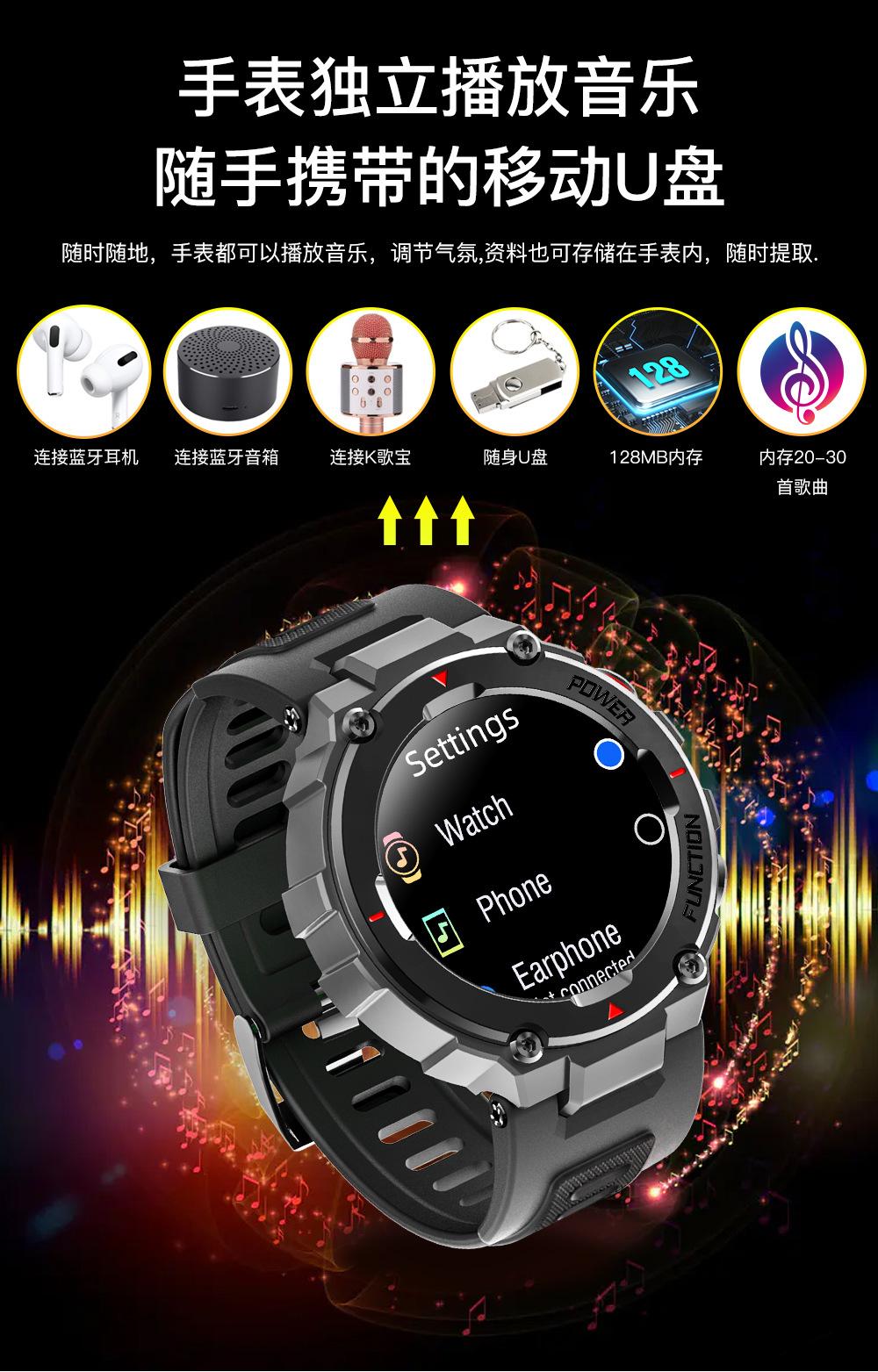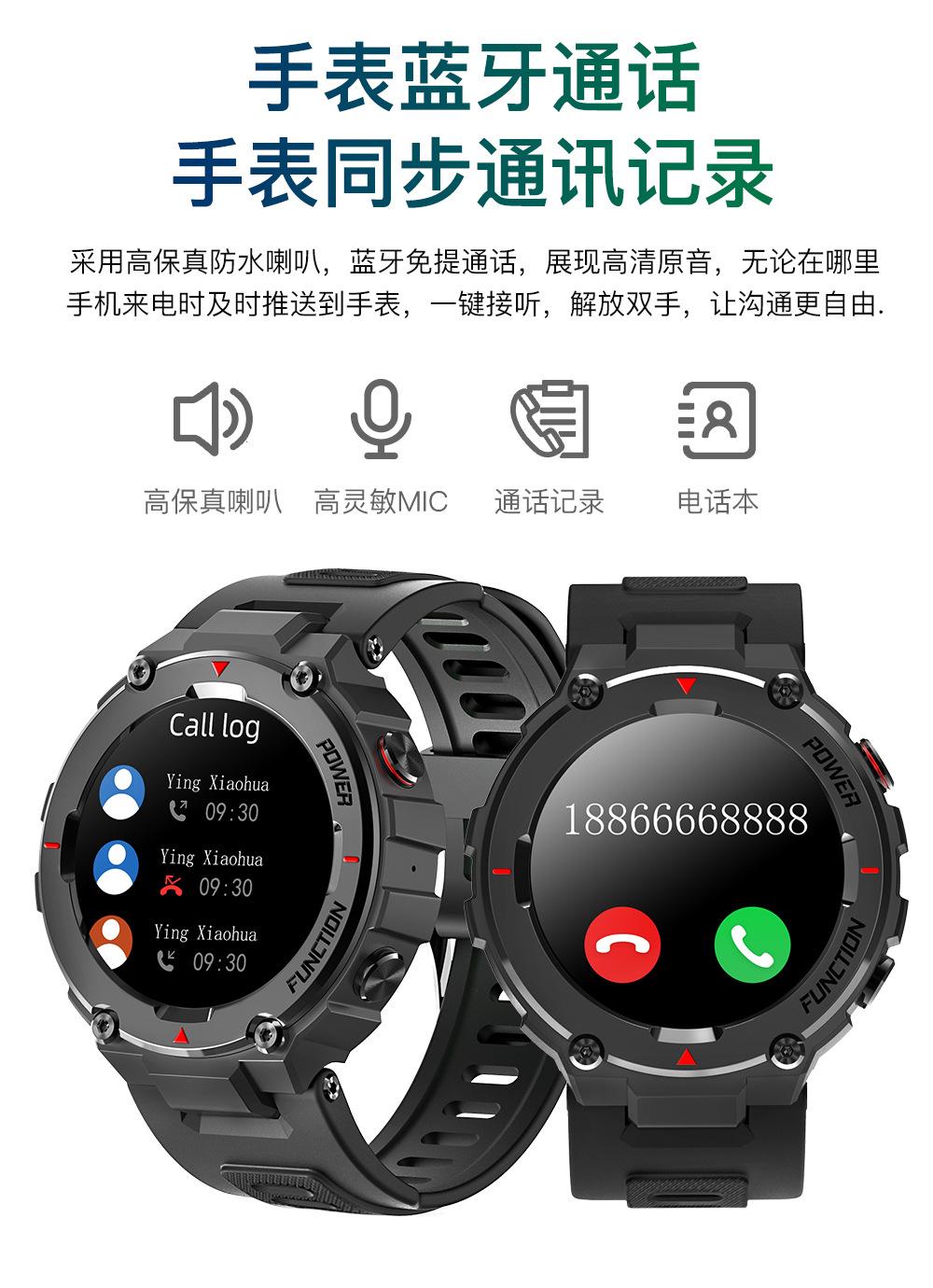 Relógio inteligente transfronteiriço F26 1,28 "com chamada esportes ao ar livre Frequência cardíaca Detecção de sono Reprodução de música