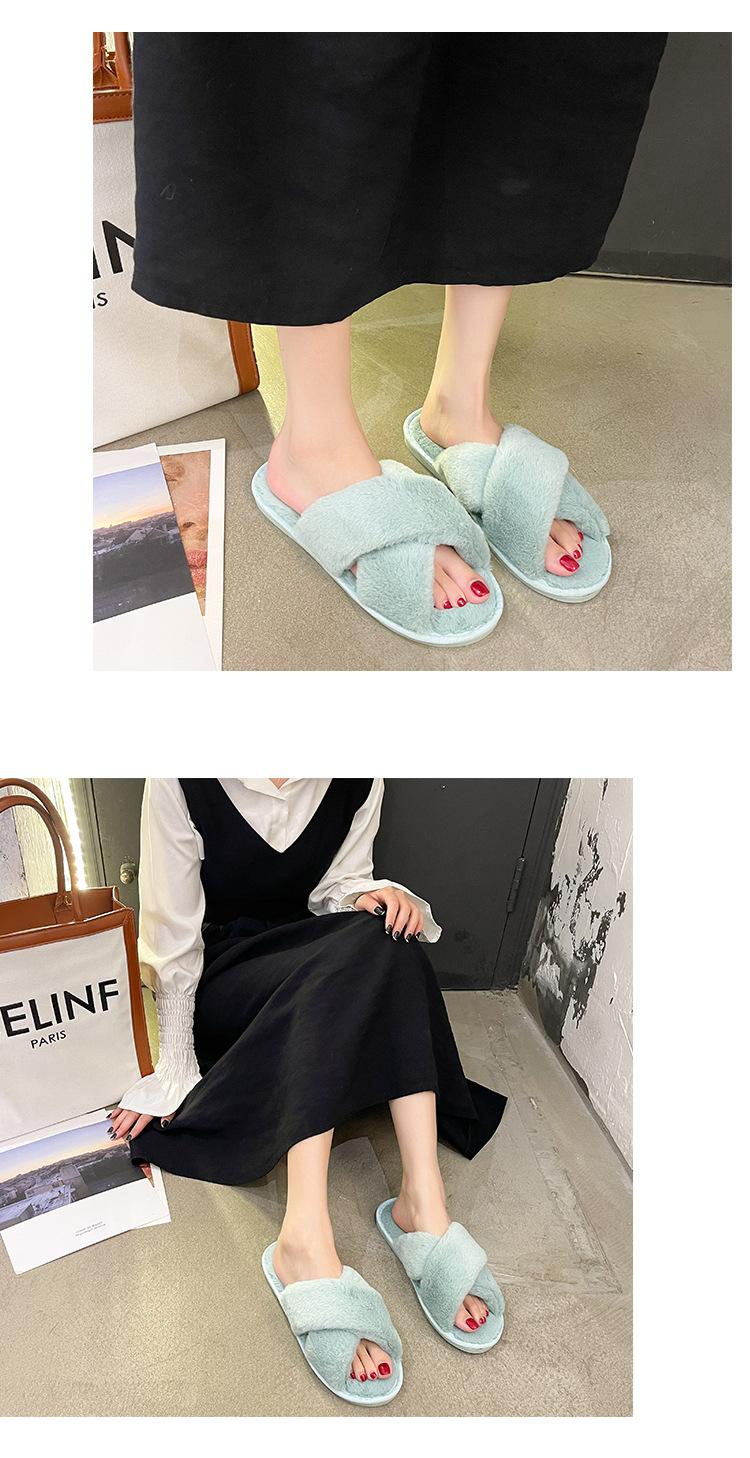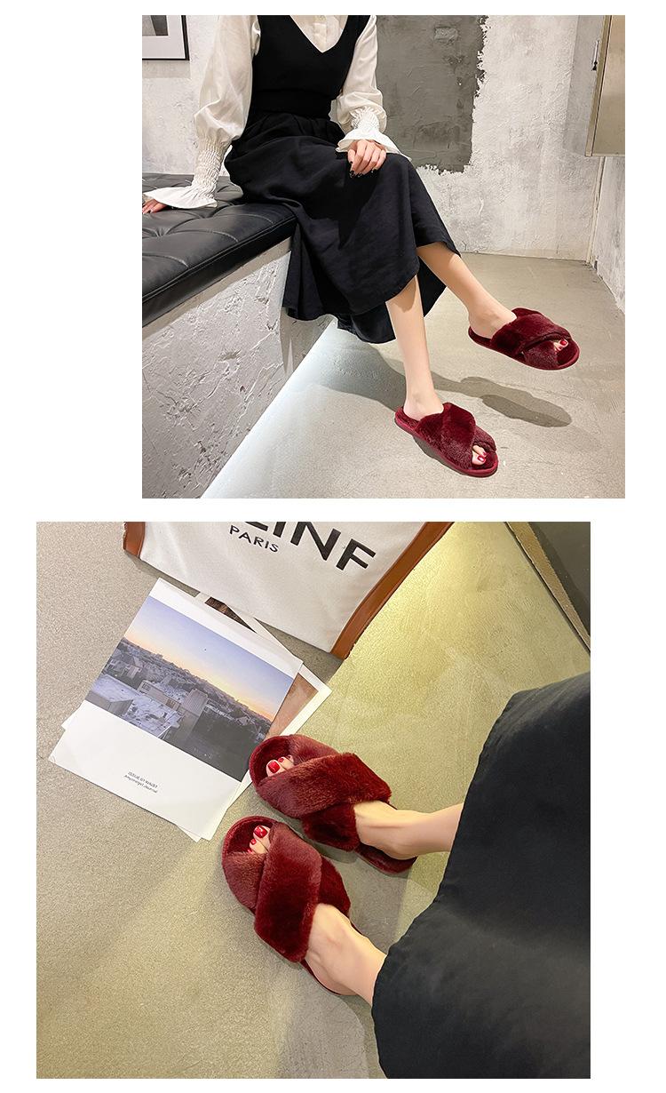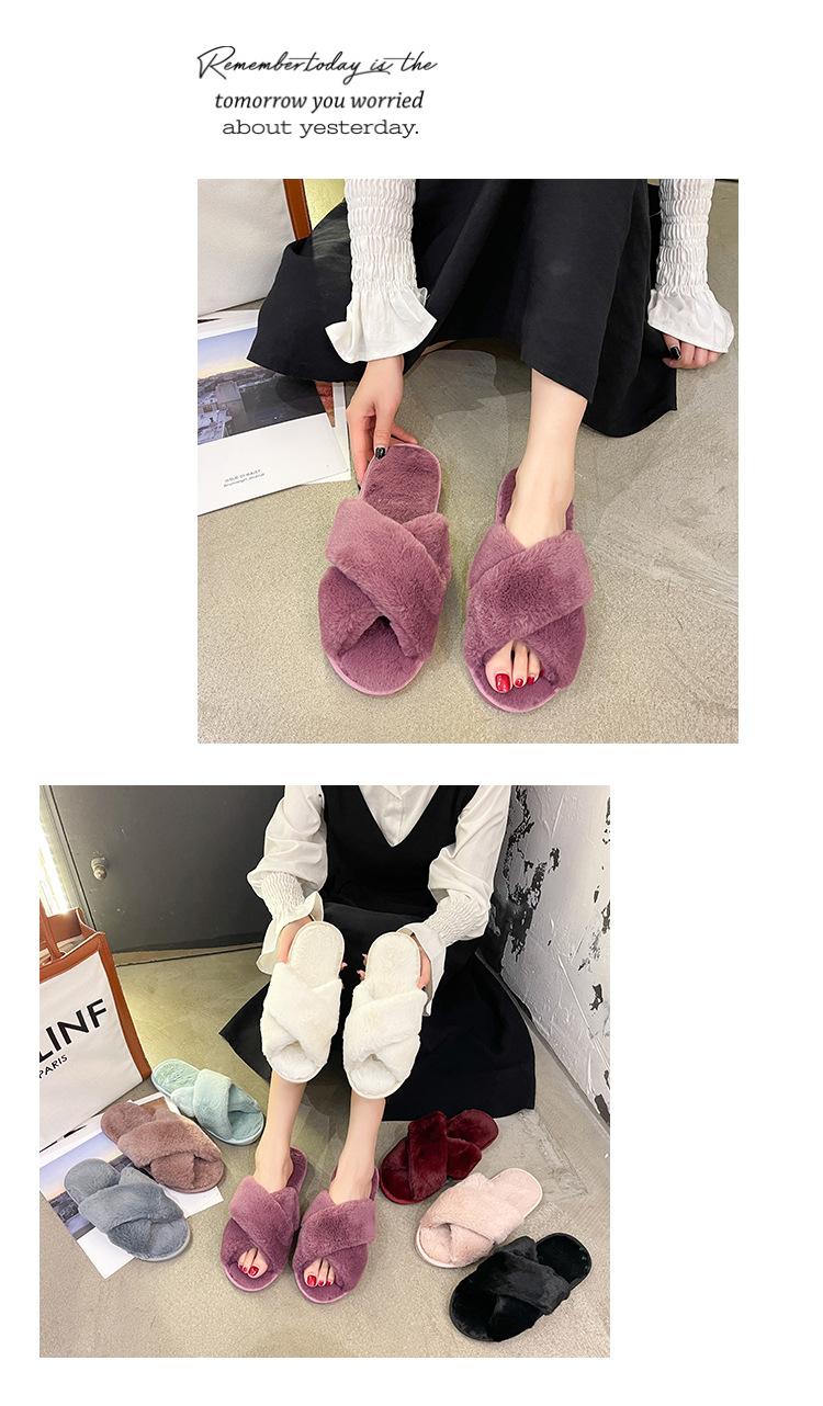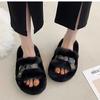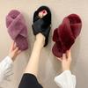 Chinelos de tamanho grande Cross Mao Mao para mulheres de outono e inverno novo fundo plano para casa chinelos de piso interno chinelos de ar condicionado