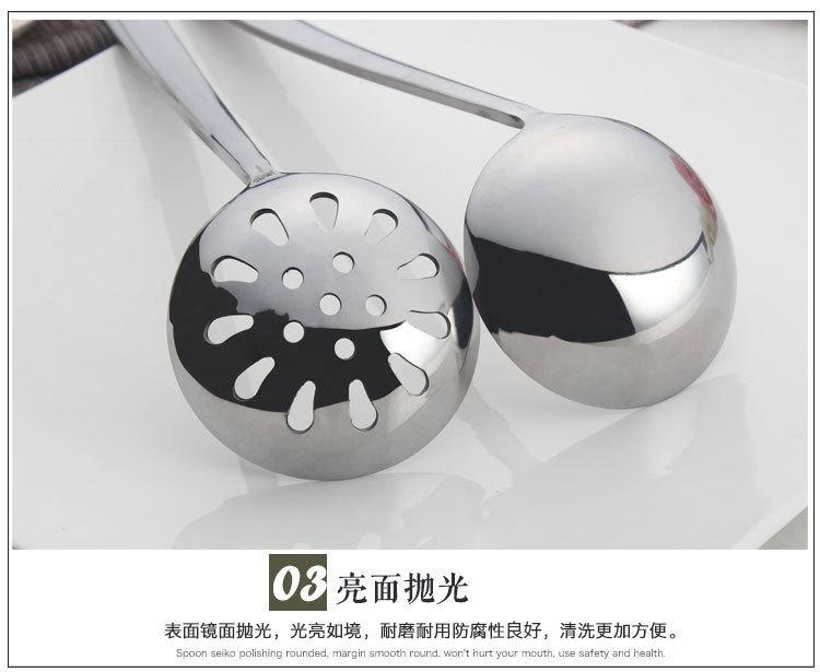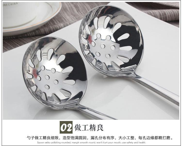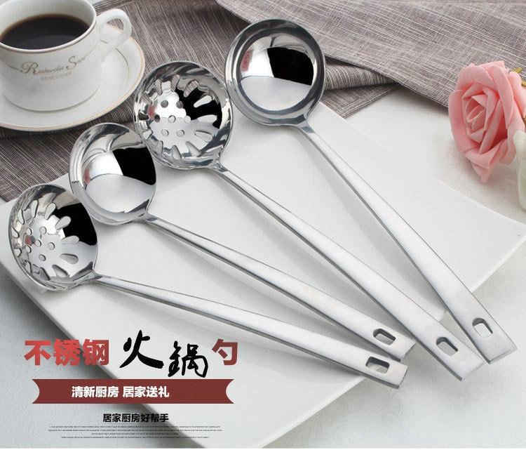 Colher de sopa de aço inoxidável para uso doméstico 5mm Alça quadrada Alça longa de cozinha Concha de sopa resistente a altas temperaturas Colher de panela quente Colher de sopa Escorredor engrossado