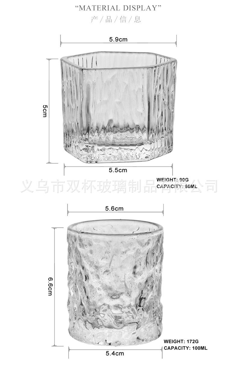 Copo de uísque de vidro hexagonal de padrão vertical criativo copo de vidro ondulado simples copo de chá pequeno copo de vinho estrangeiro