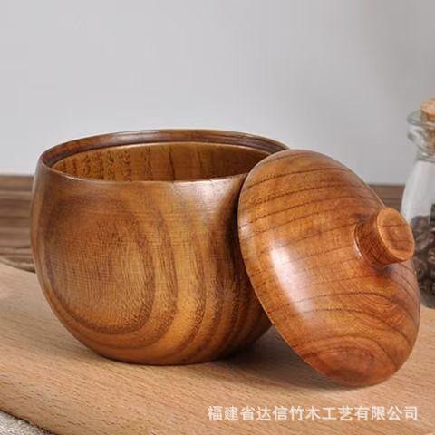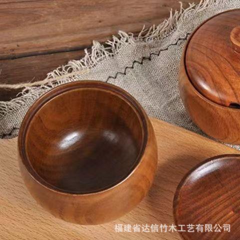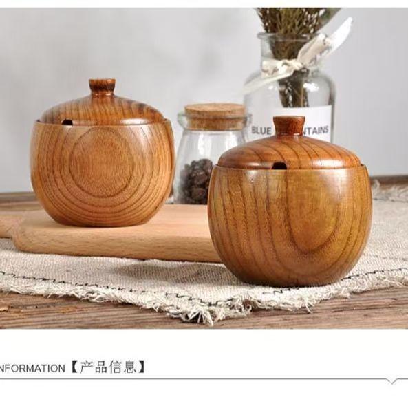 Jarra de tempero de madeira de jujuba transfronteiriça Garrafa de tempero estilo japonês Jarra de sal vintage de madeira com tampa Jarra de tempero Terno de jarra de tempero
