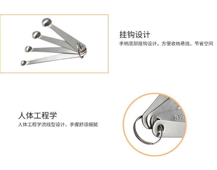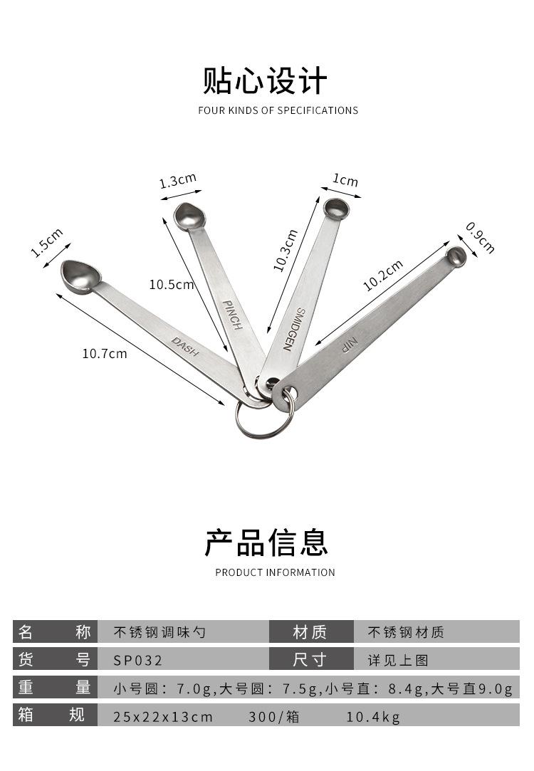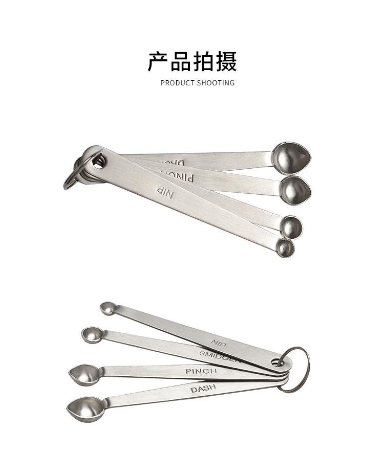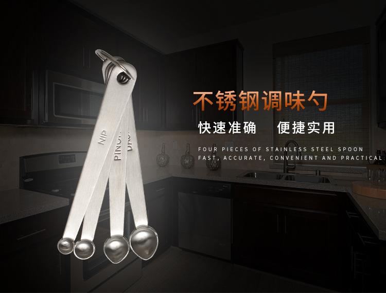 Fornecimento direto da fábrica de aço inoxidável colher de medição colher de tempero conjunto de quatro peças colher de tempero com escala de cozimento colher de medição Ferramentas de cozimento