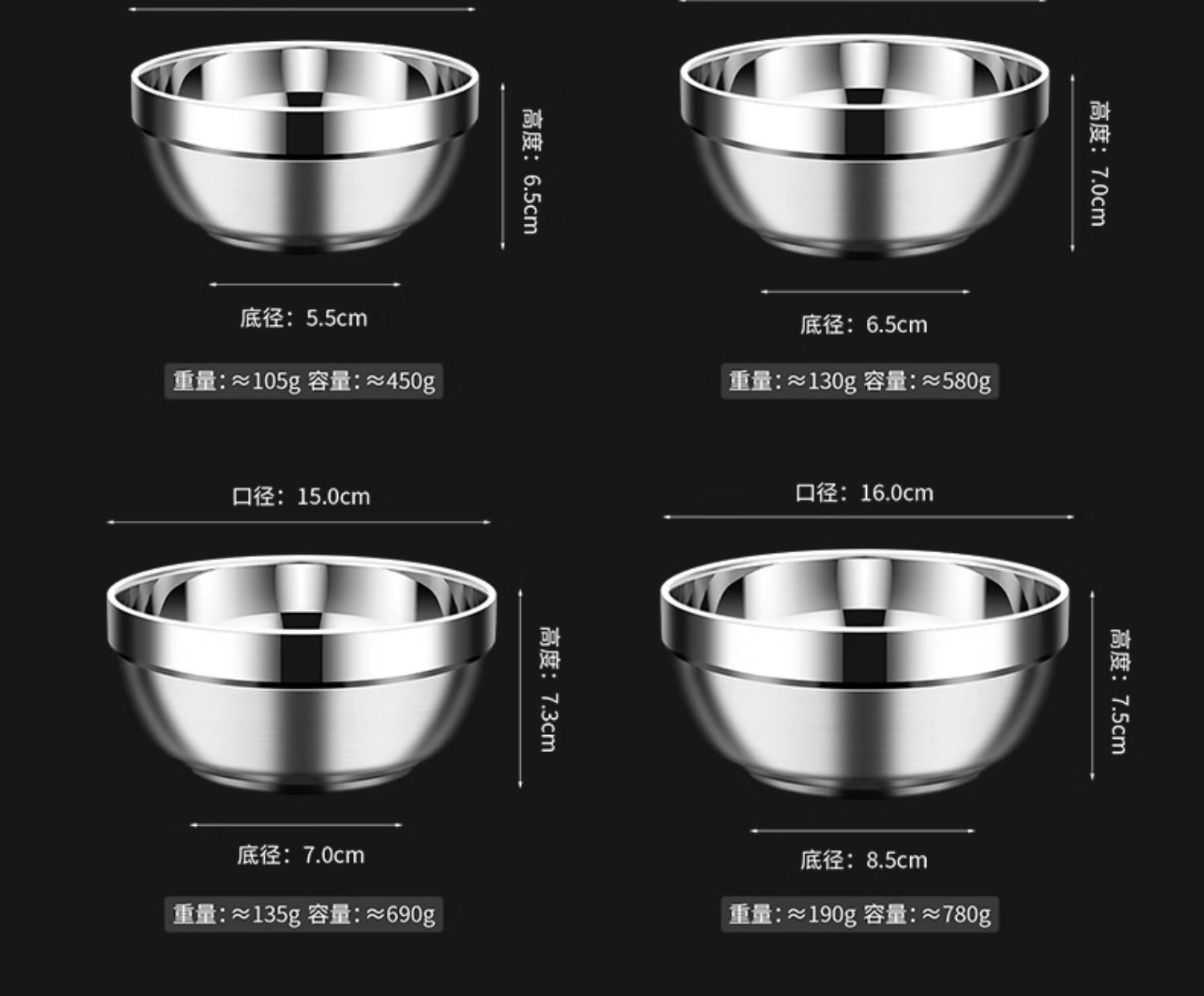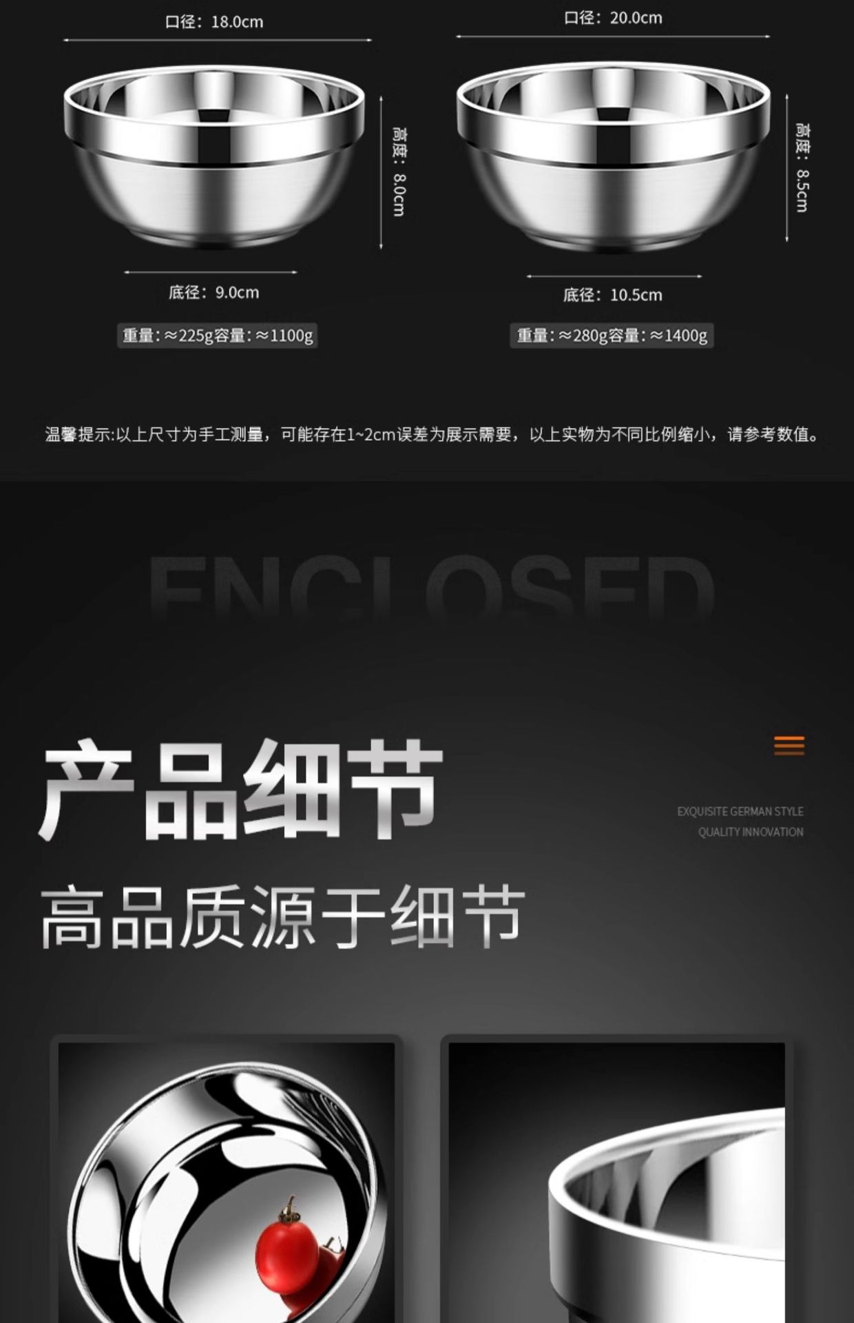 [Thickened double layer] 304 platinum bowl 11.5cm [without lid], [Thickened double layer] 304 platinum bowl 12...