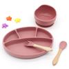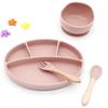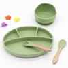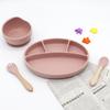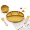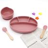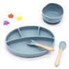 Conjunto de quatro peças de silicone para treinamento de bebês, garfo e colher para alimentação, utensílios de mesa de silicone de platina de grau alimentício