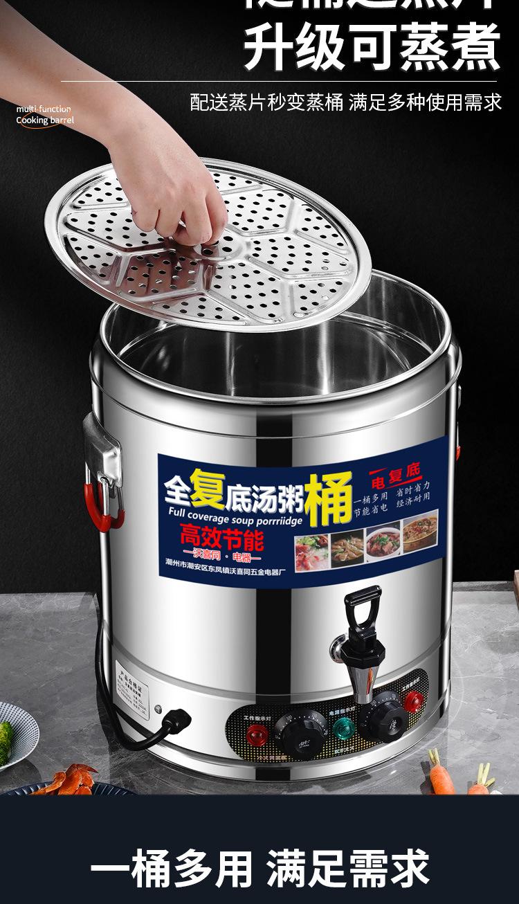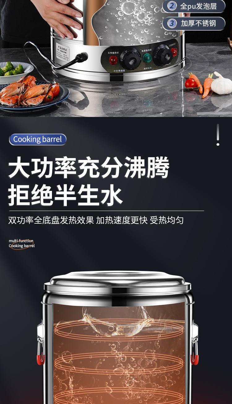 Balde de Sopa Elétrico, Balde de Cozimento Elétrico com Aquecimento em Aço Inoxidável, Balde de Isolamento Térmico, Balde Elétrico Comercial para Ensopado de Carne, Balde para Ferver Água com Controle Inteligente de Temperatura