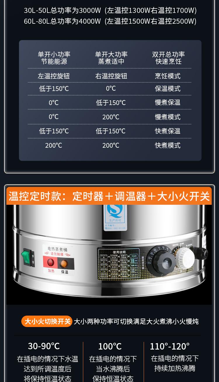 30L faucetless (three layers of anti-scalding with insulation) comes with steaming sheet, 30L with faucet (thr...