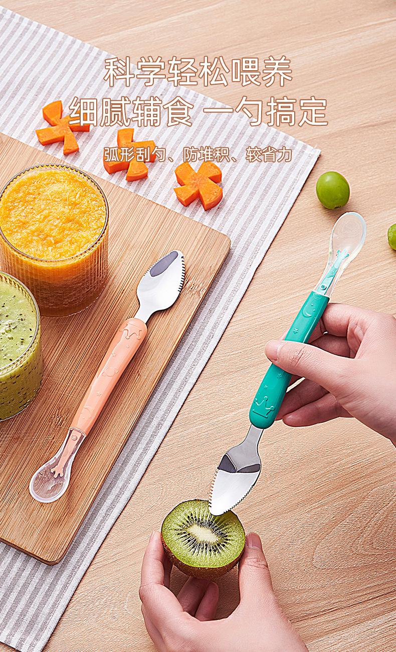 Nome do Produto: Raspador de Aço Inoxidável de Dupla Cabeça para Bebê
