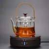 Chaleira de Chá de Vidro Resistente a Altas Temperaturas por Atacado, Chaleira de Chá, Chaleira com Cabo de Madeira, Chaleira a Vapor para Saúde Doméstica