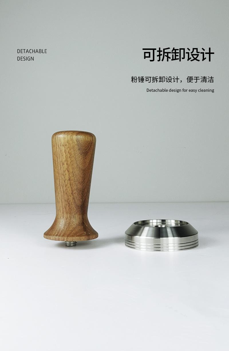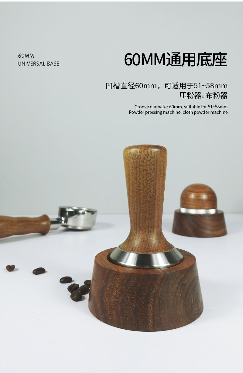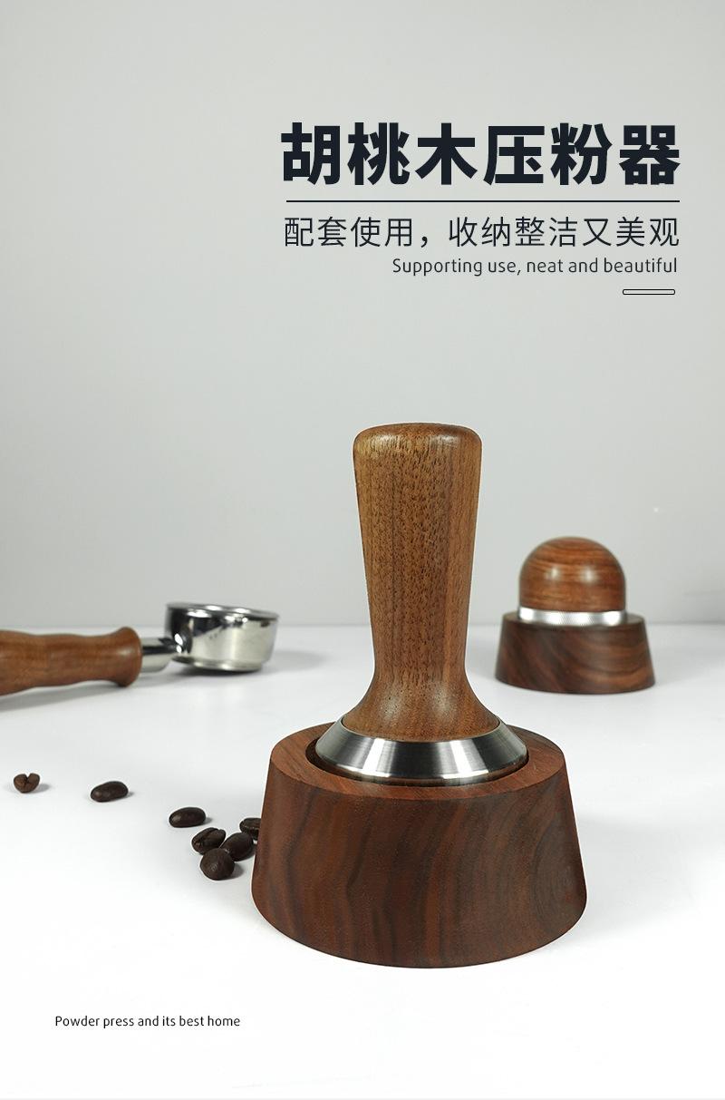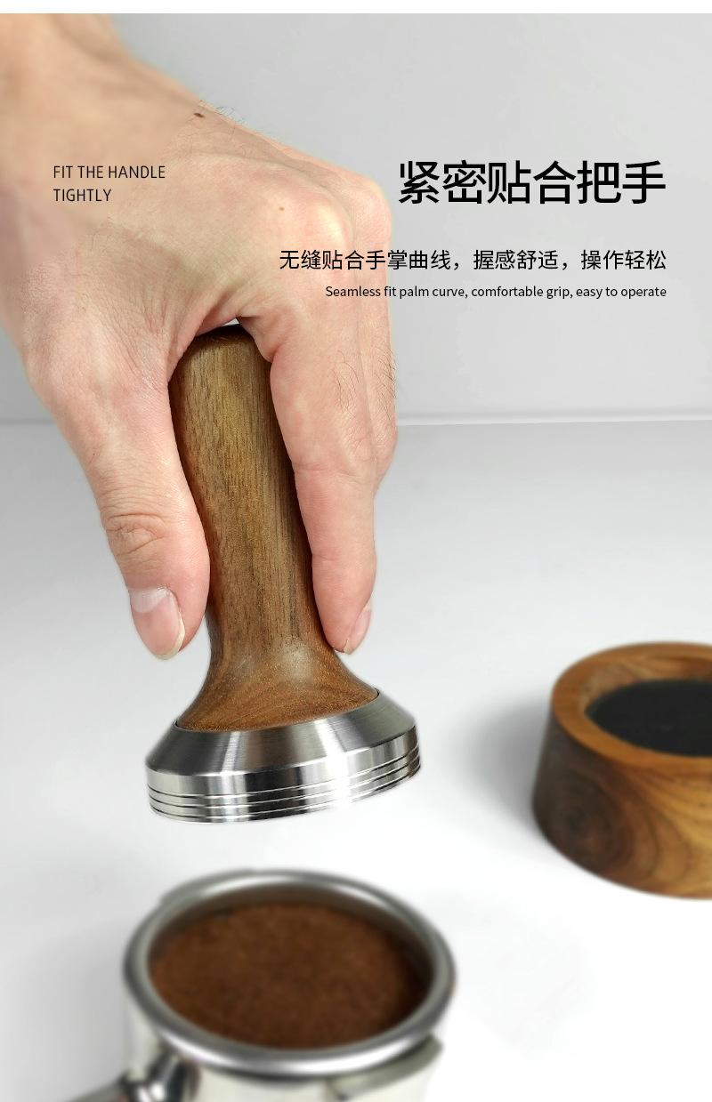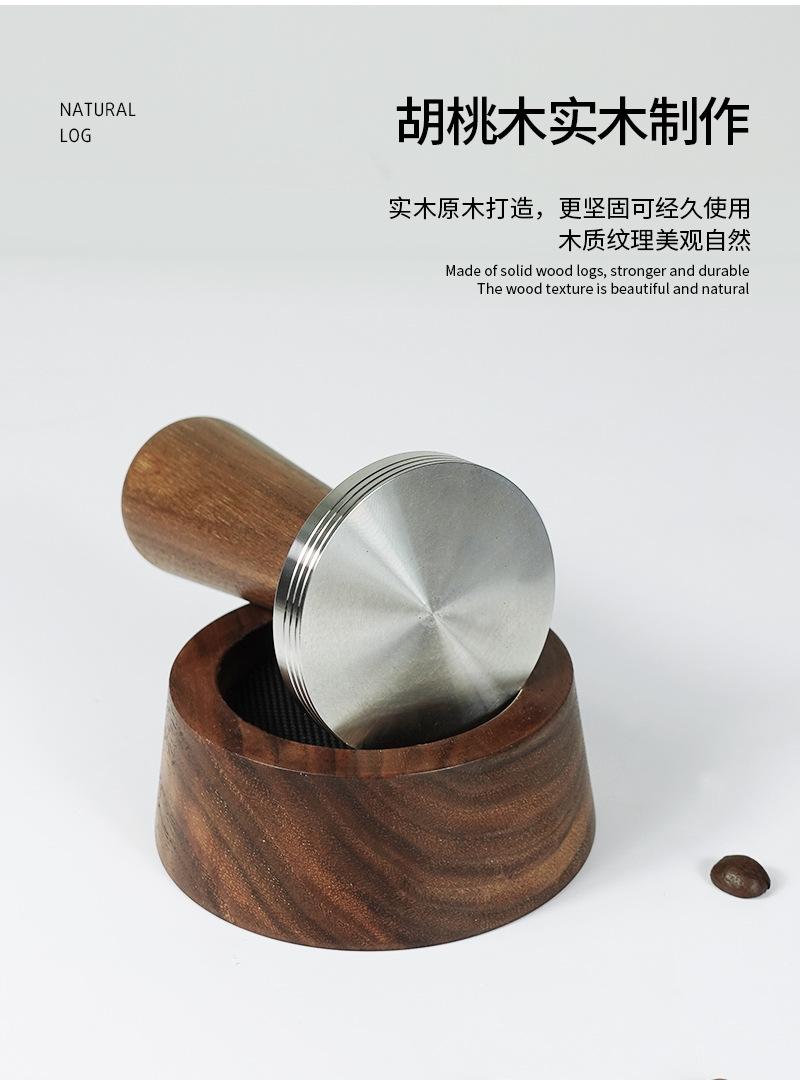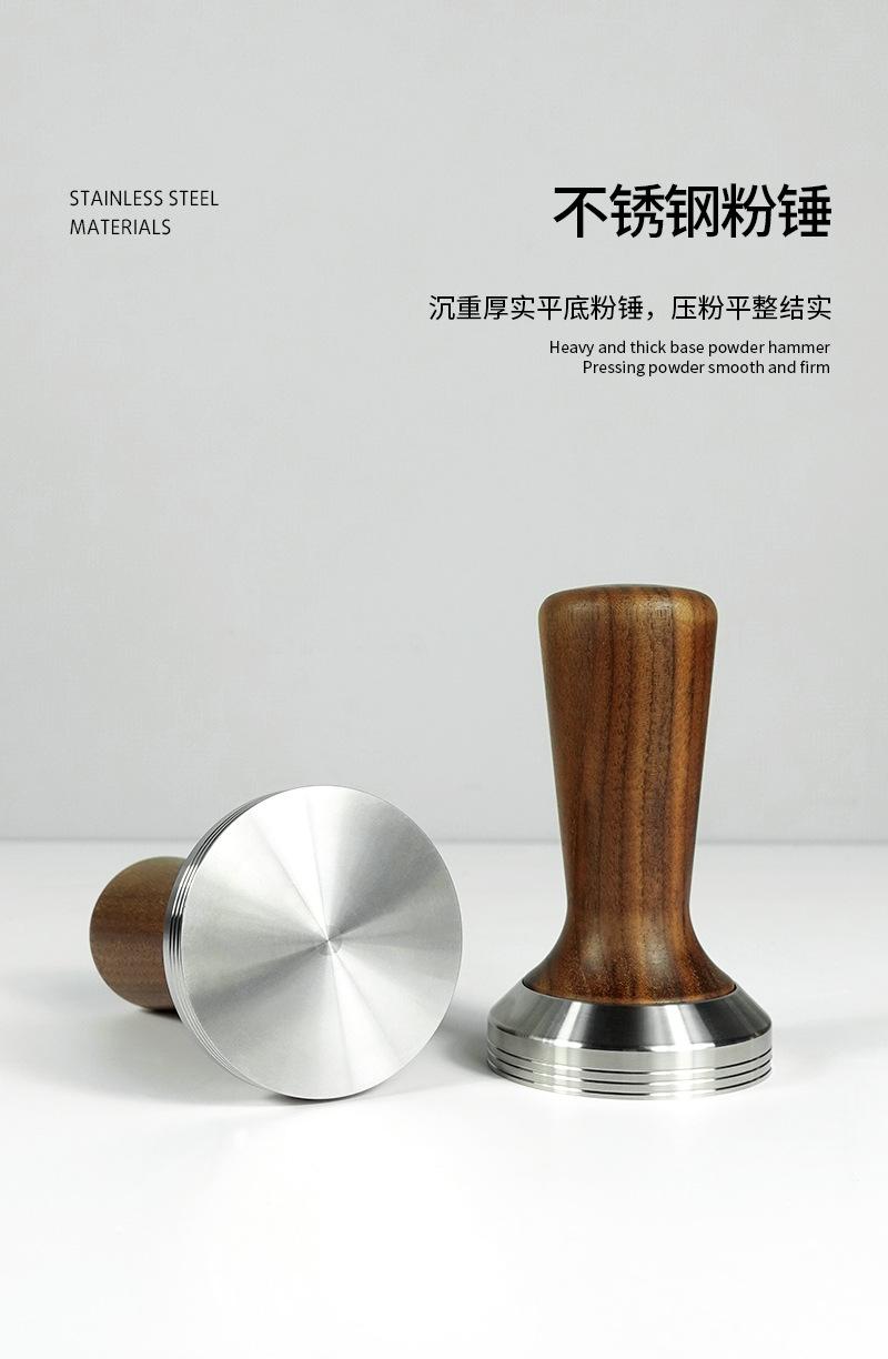 Pó de núcleo sólido de aço inoxidável Conjunto de prensa fundo plano martelo base de nogueira 58mm Pó de pano de café italiano