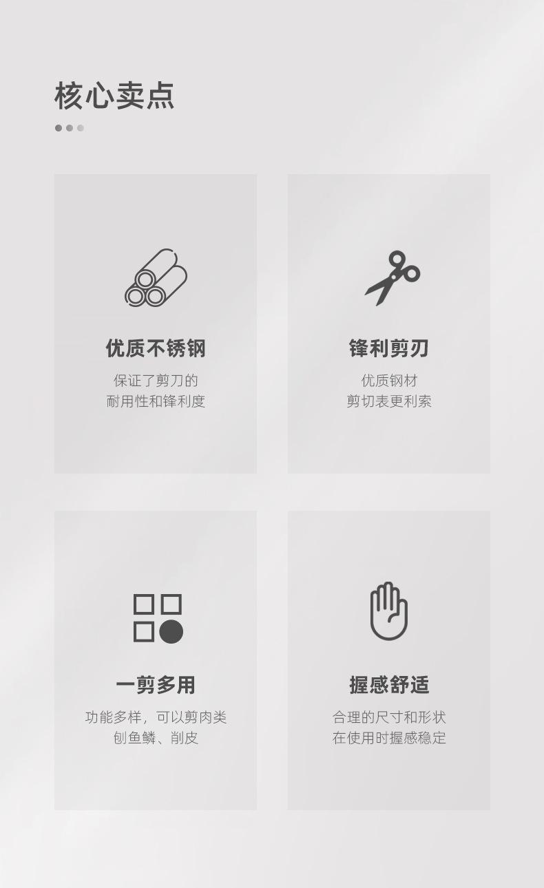 Tesoura de cozinha Tesoura de osso de frango de aço inoxidável Tesoura multiuso para alimentos de carne familiar Raspagem de escamas de peixe