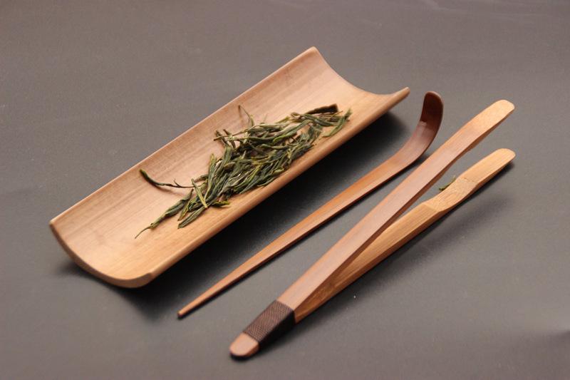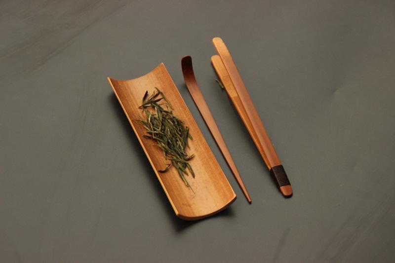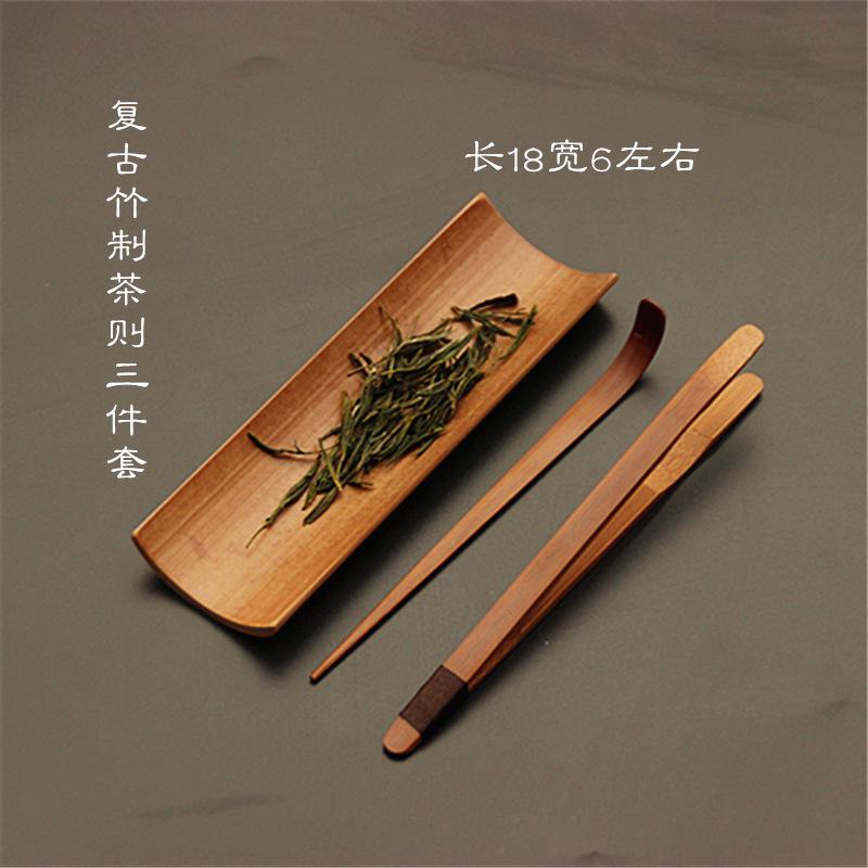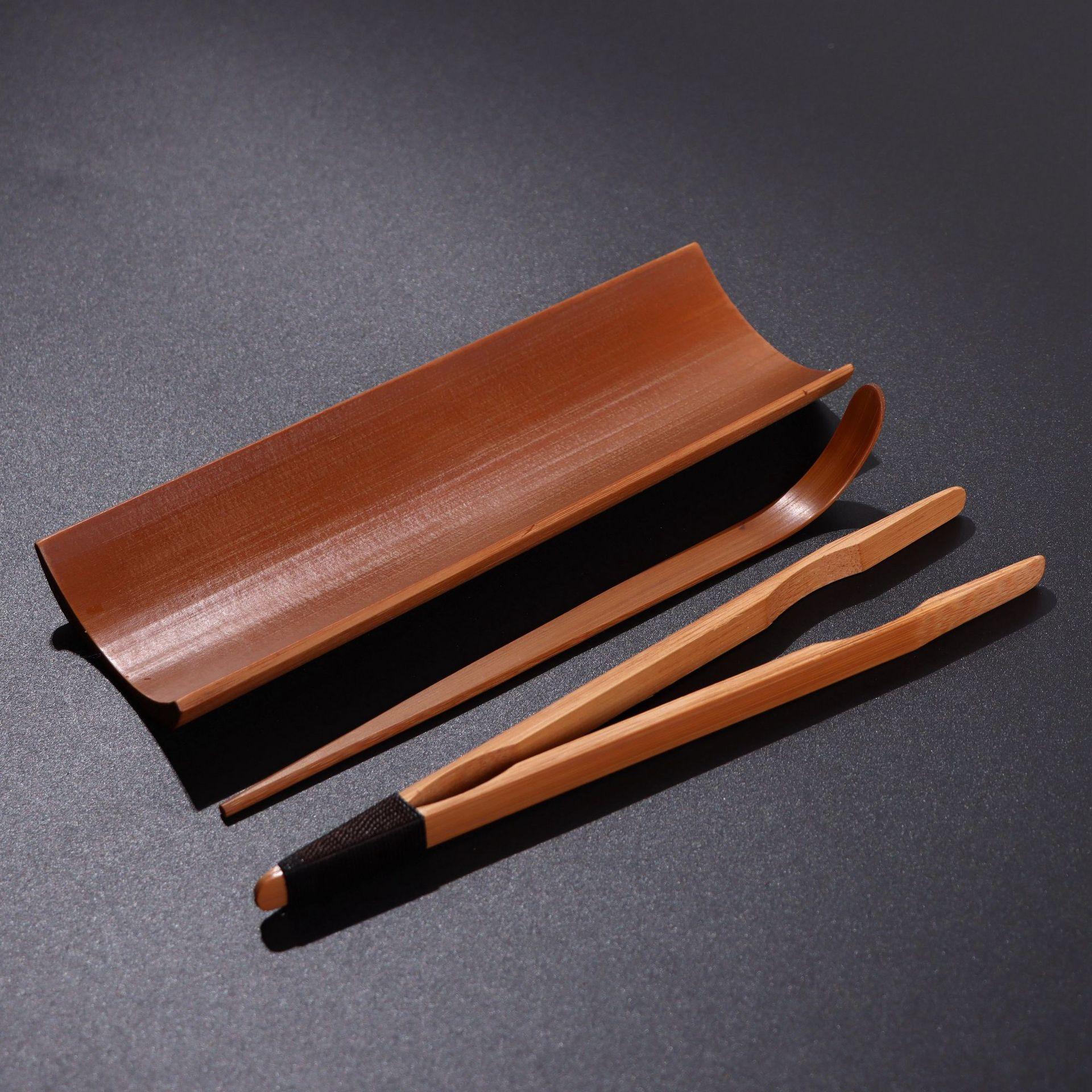 Conjunto de chá de bambu carbonizado com três peças, chá de apreciação, clipe de chá de lótus, chá grelhado, agulha de chá, arte de chá, conjunto de chá, acessórios para cerimônia do chá Kung Fu