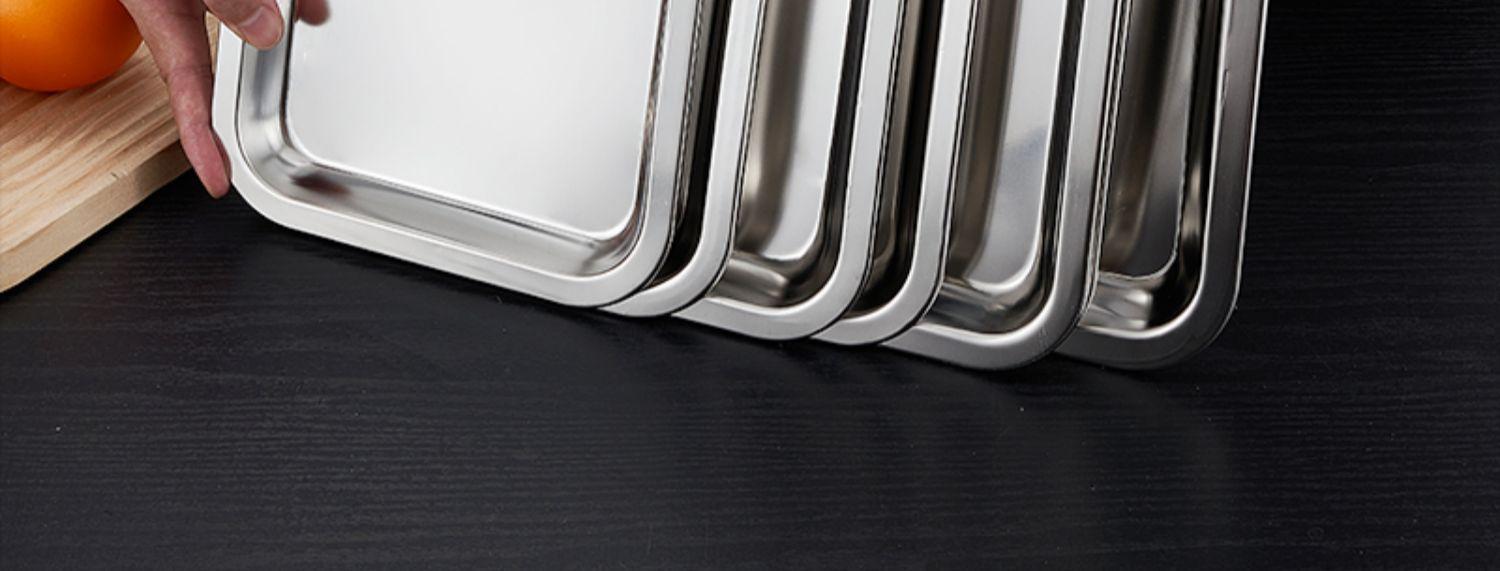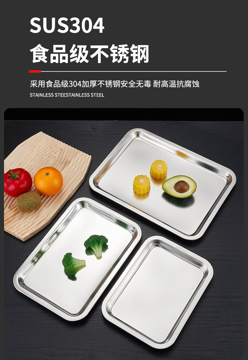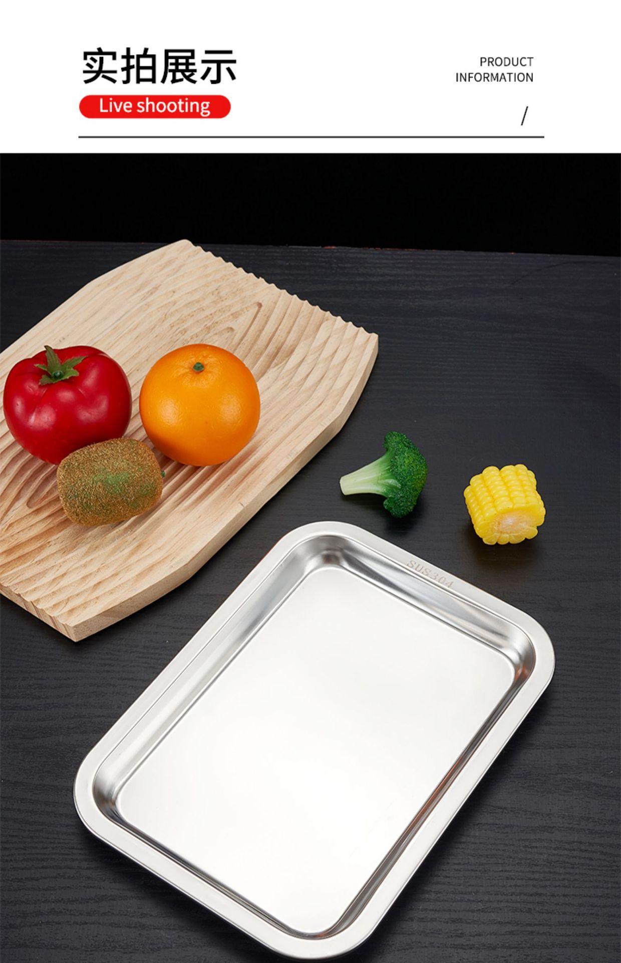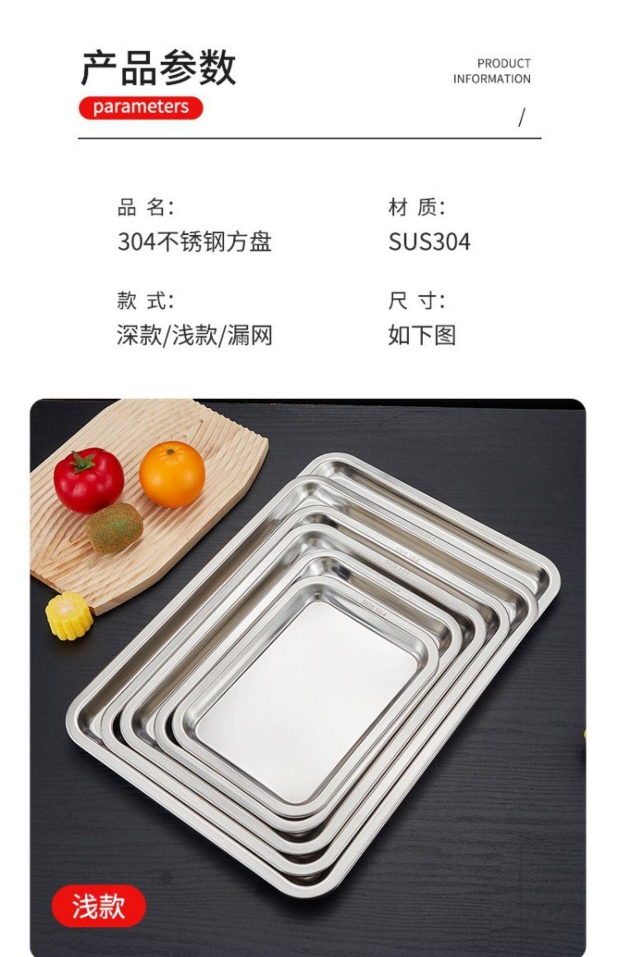 304 Bandeja de aço inoxidável de grau alimentício Cozinha retangular Bandeja quadrada de fundo plano perfurado Bandeja de cozimento Bacia com vazamento comercial Bandeja de arroz cozido no vapor