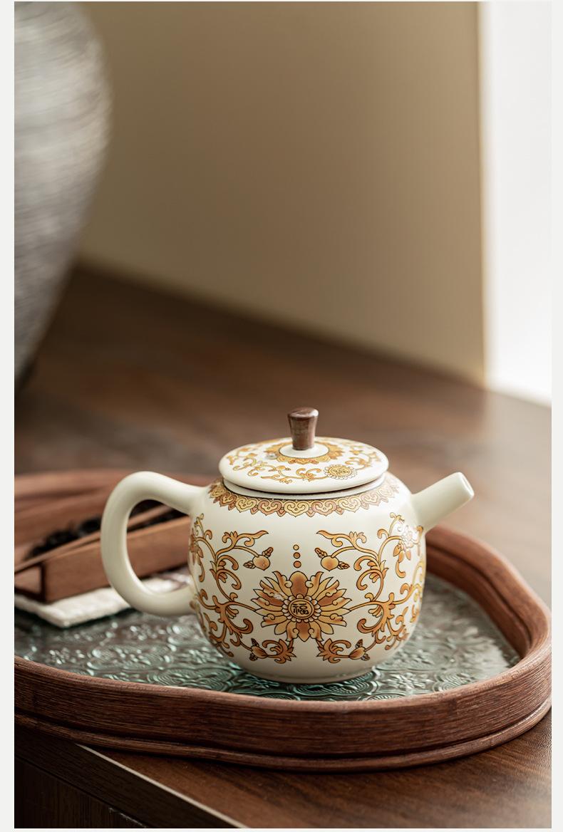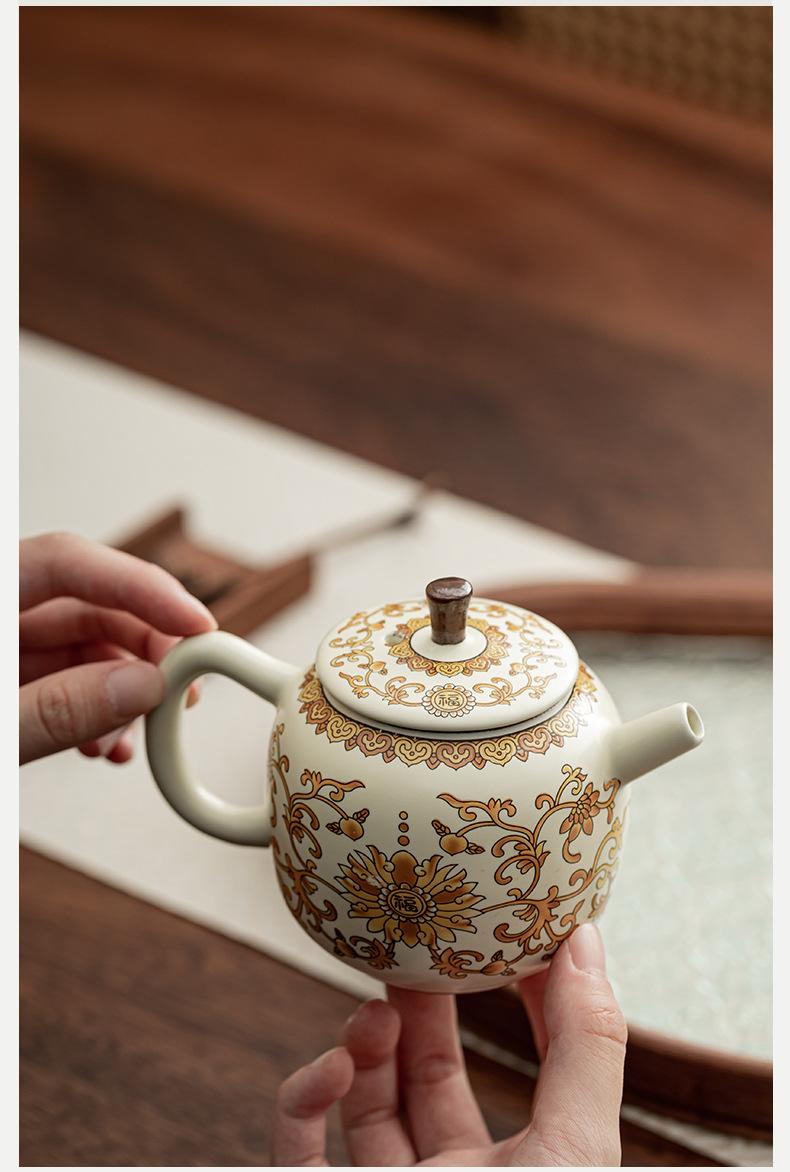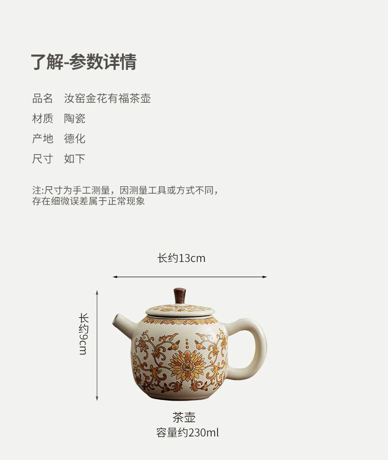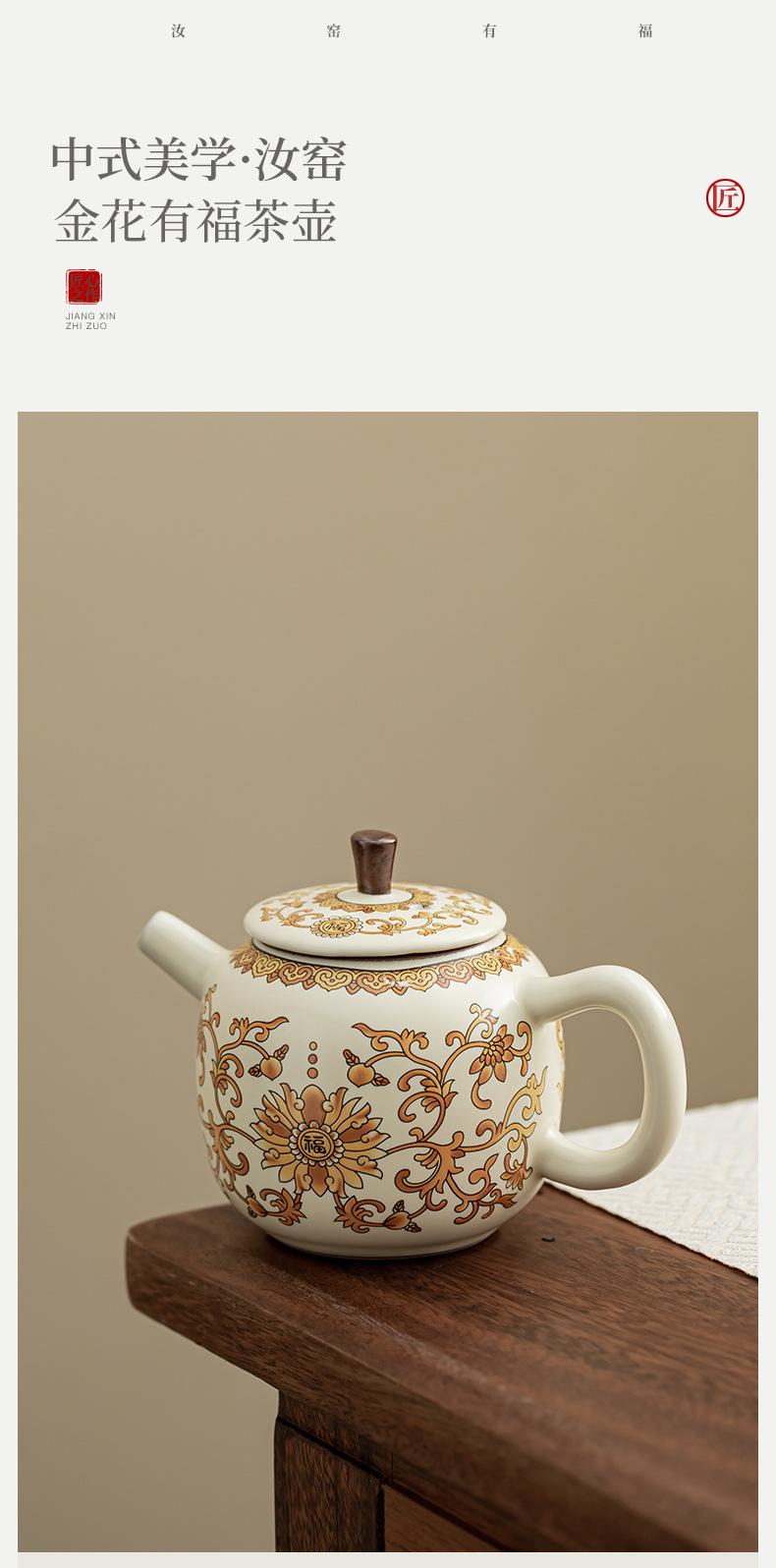 Ru Forno Flor Dourada Bule Bule Único Pote Doméstico Cerâmica Filme de Abertura Kung Fu Jogo de Chá Bola Filtro Chaleira