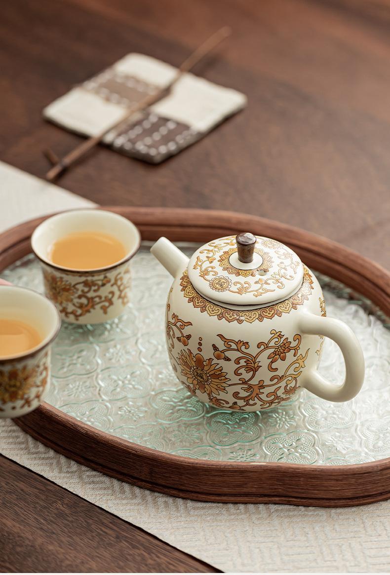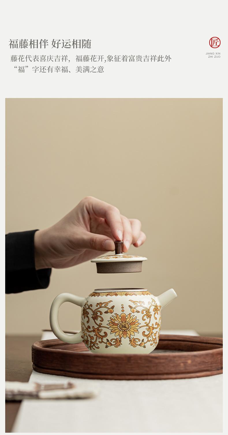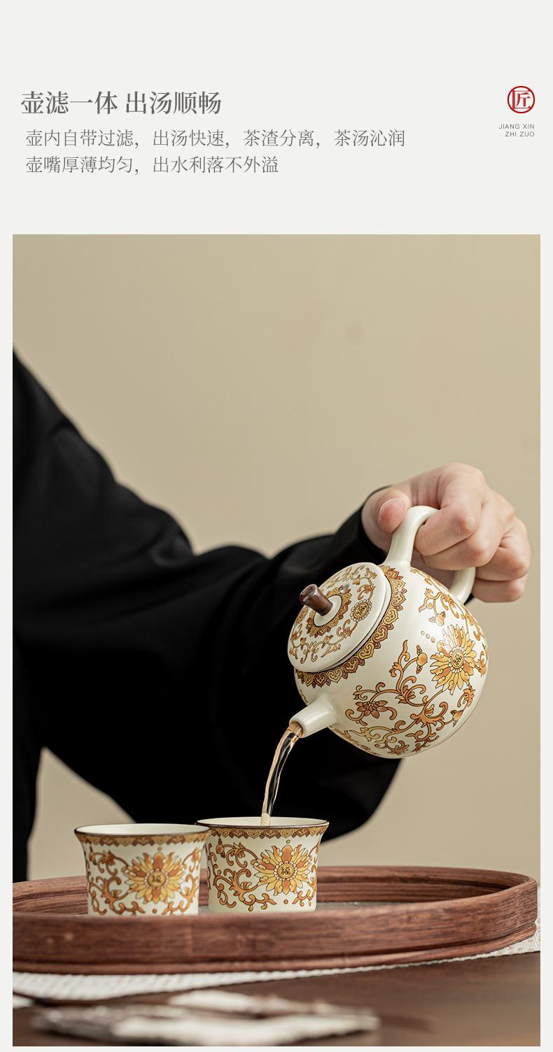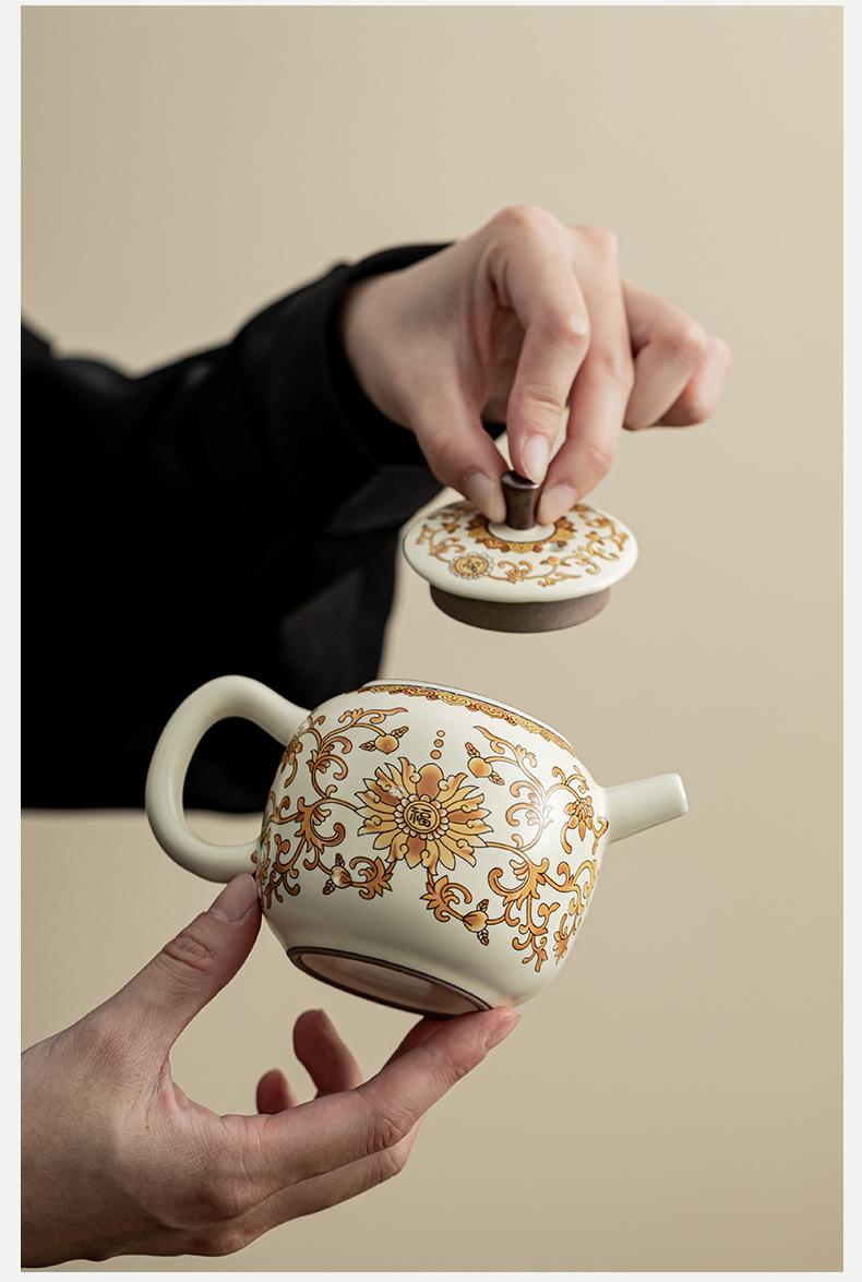 Ru Forno Flor Dourada Bule Bule Único Pote Doméstico Cerâmica Filme de Abertura Kung Fu Jogo de Chá Bola Filtro Chaleira
