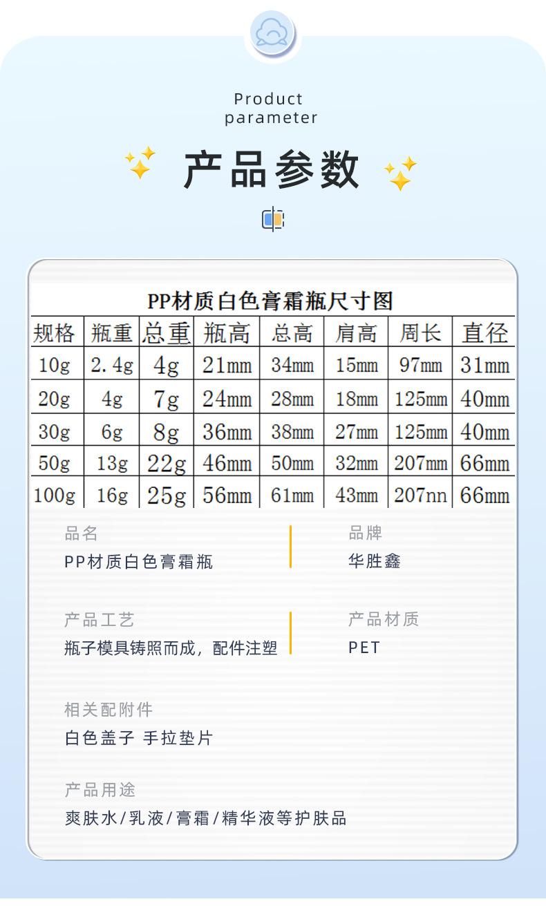 Pote PP Branco Embalagem 10-100g 150g Produto para Cuidados com a Pele Plástico Frasco Vazio Creme Facial Creme para Área dos Olhos Sub-Frasco