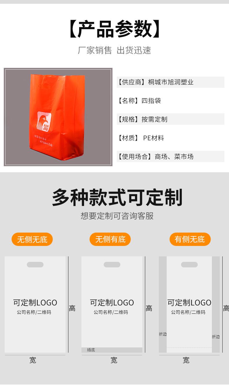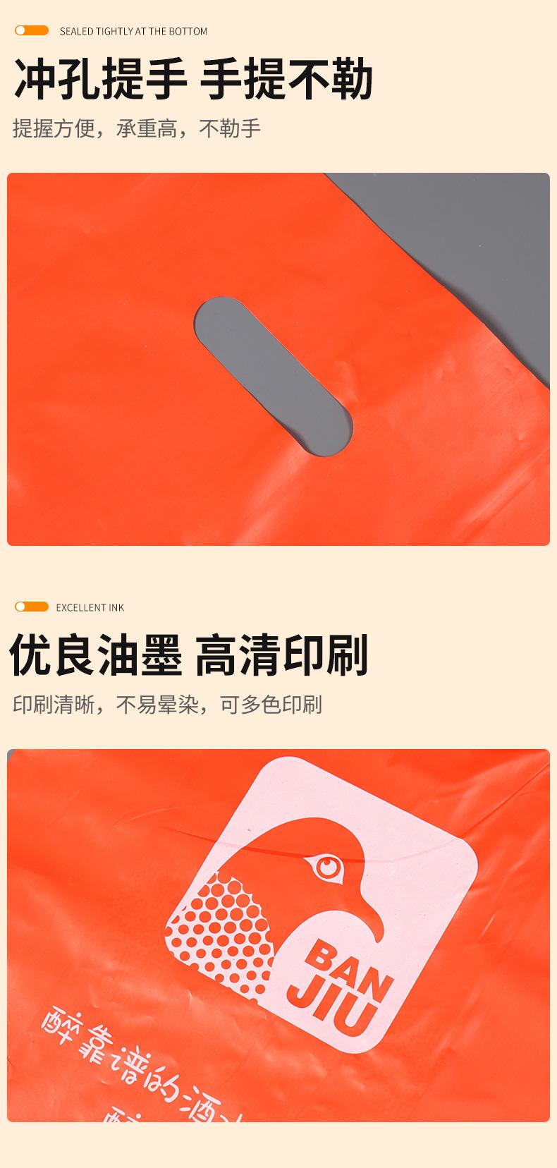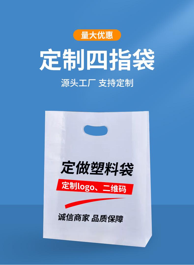 Sacola de quatro dedos personalizada com boca plana para presente, sacola plástica para roupas, bolsa perfurada, bolsa gráfica com logotipo personalizado impresso