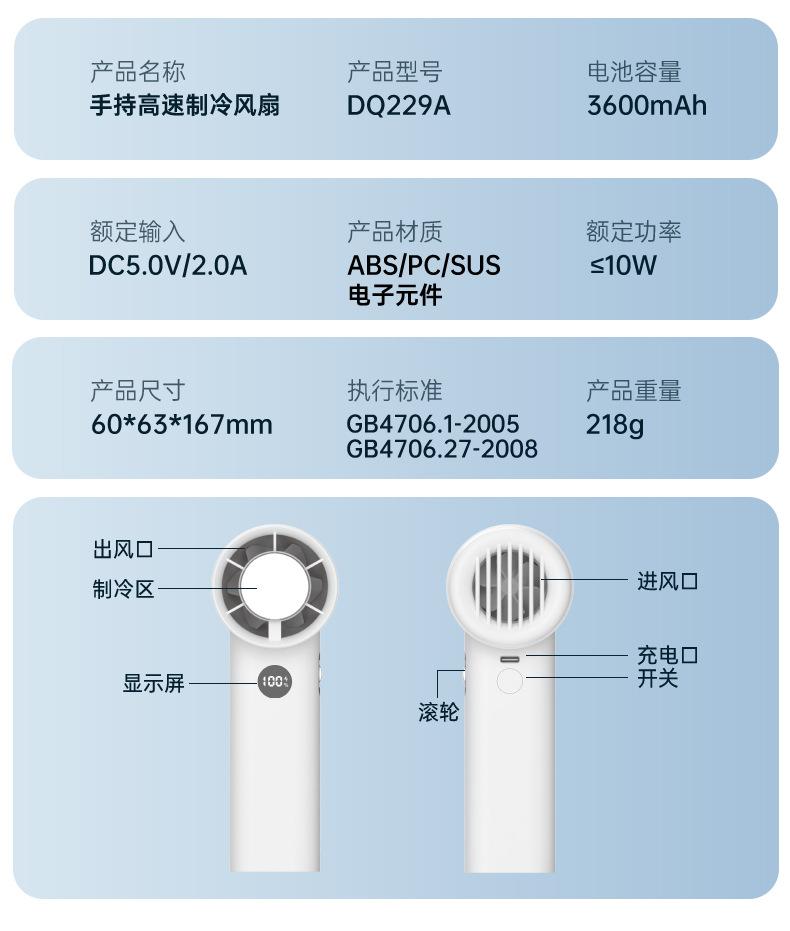 Modelo do produto: ventilador de resfriamento portátil de alta velocidade DQ229A