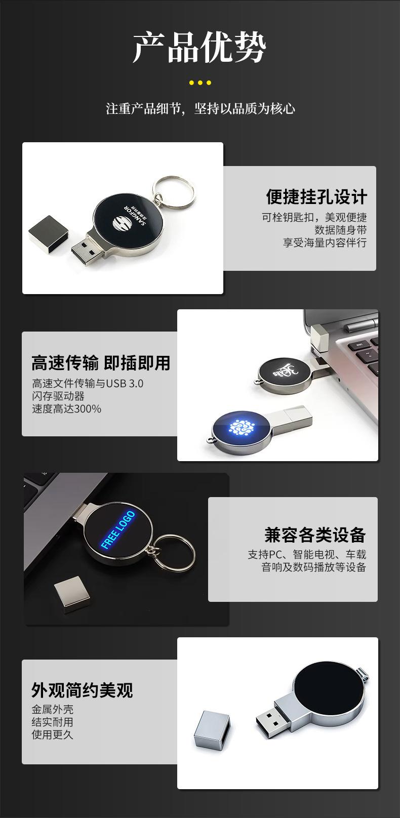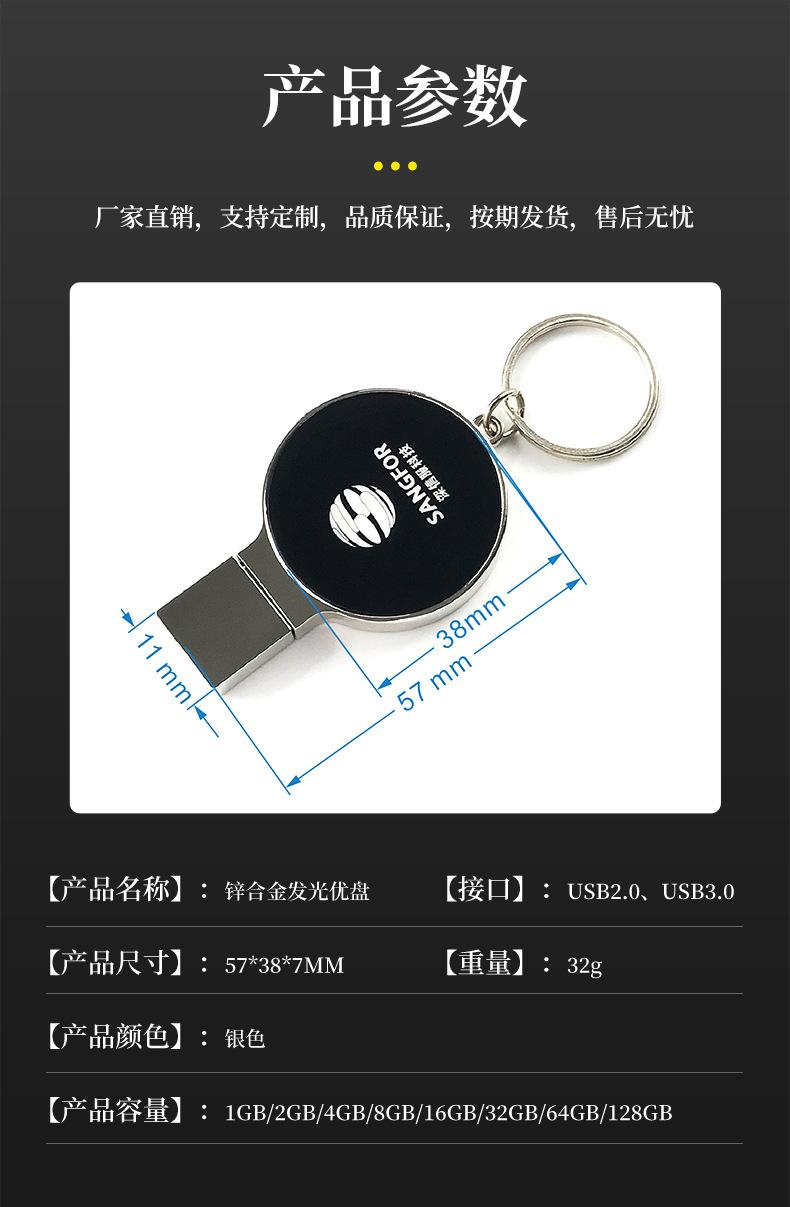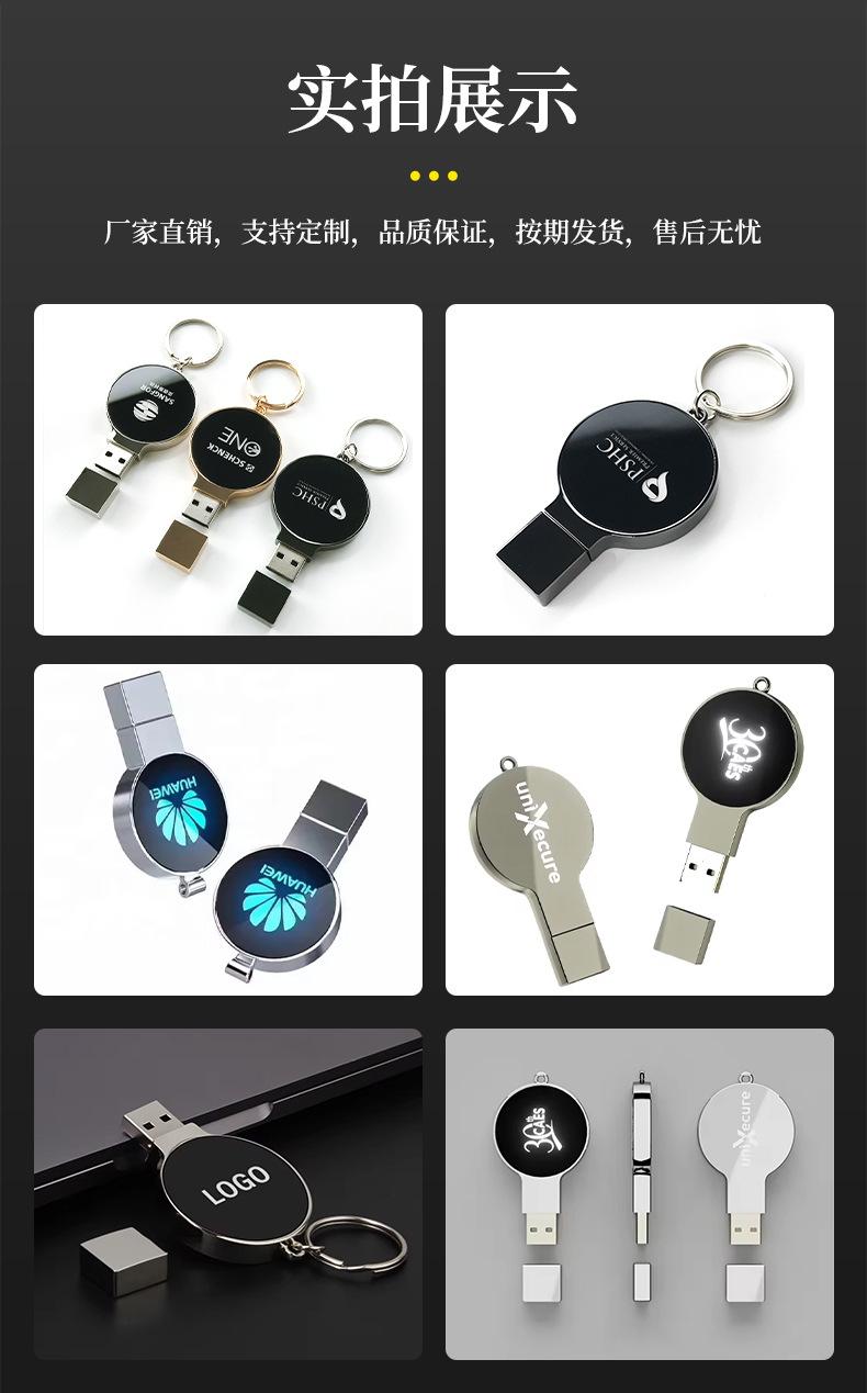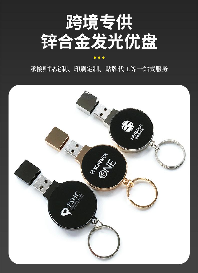 Pen drive USB luminoso de liga de zinco redondo personalizado, pen drive USB de metal, pen drive USB criativo personalizado para negócios, pen drive USB