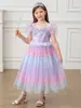 Fantasia de princesa com lantejoulas para meninas novas, traje de apresentação com xale de lantejoulas para sereia