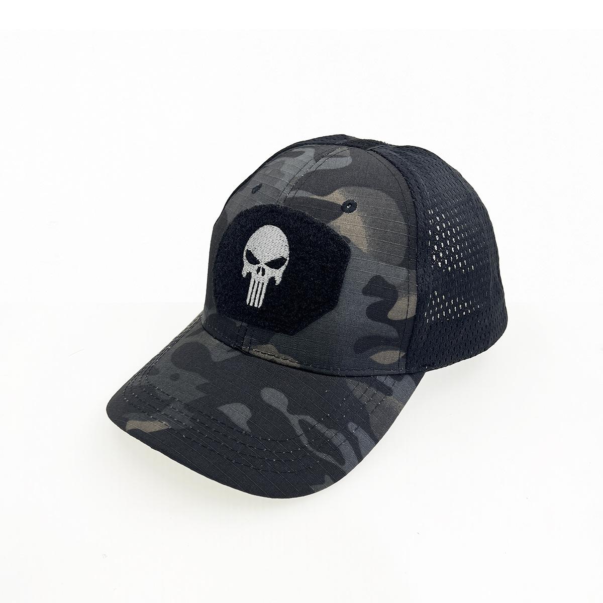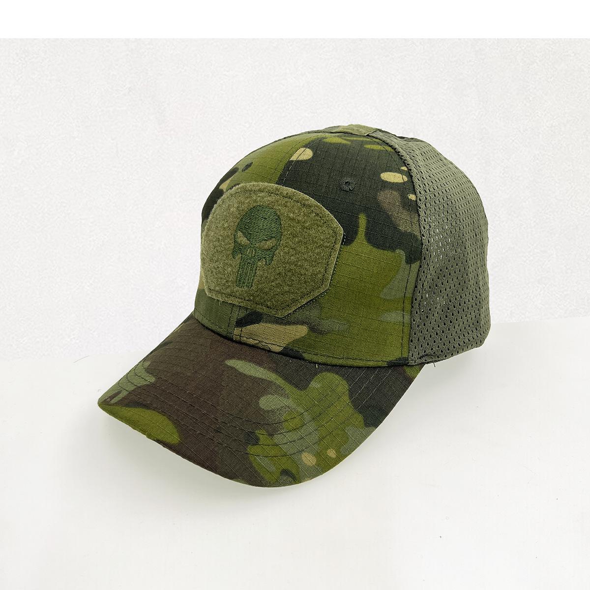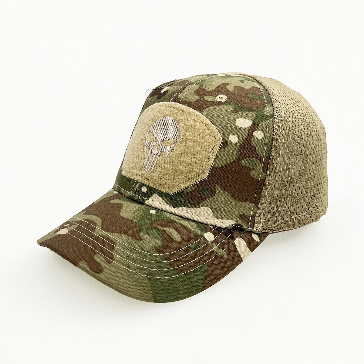 [Nome]: Boné de treinamento militar xadrez Punisher camuflado primavera e verão esportes ao ar livre guarda-sol proteção solar boné de malha velcro boné militar fã