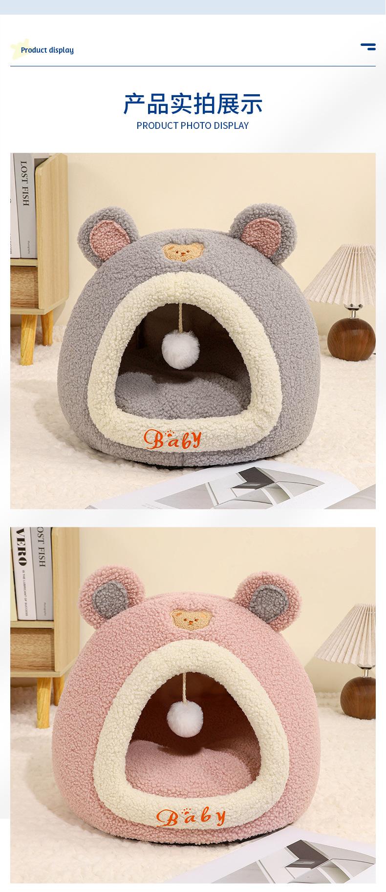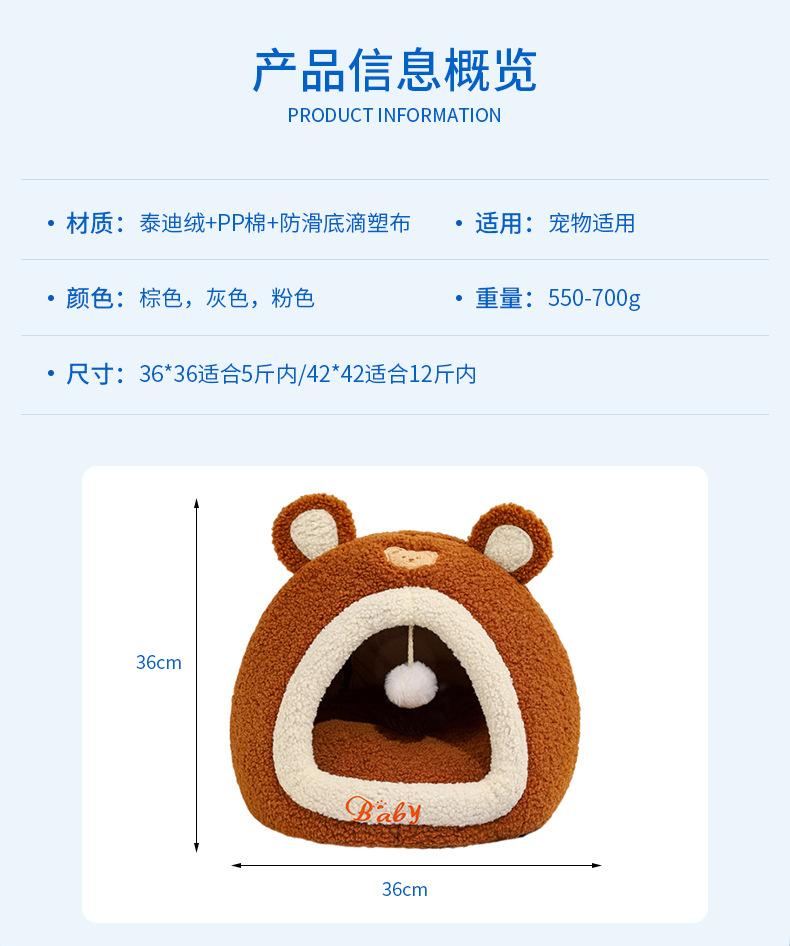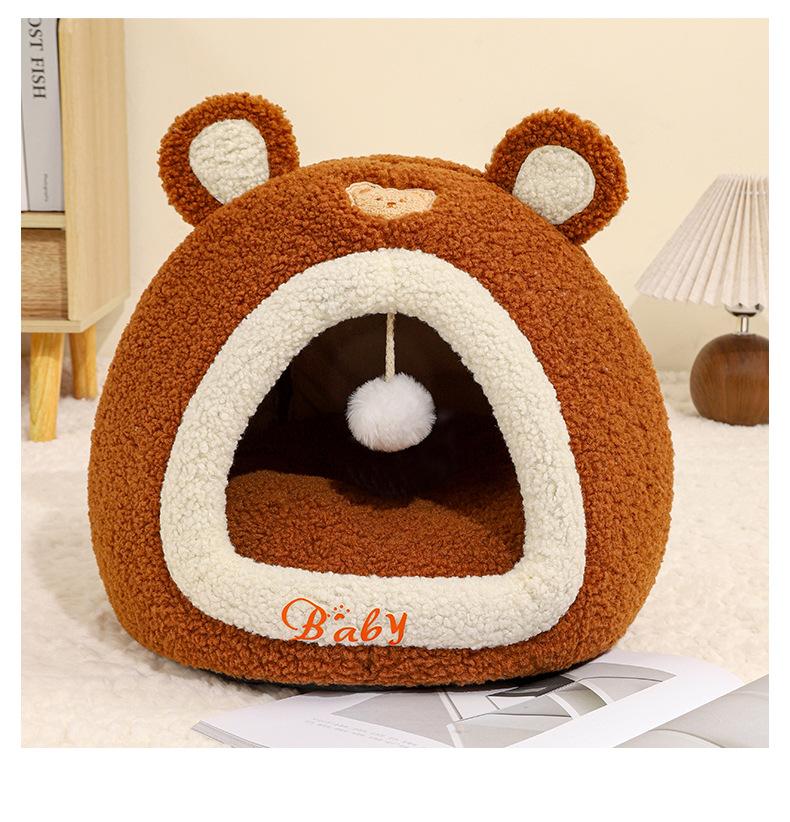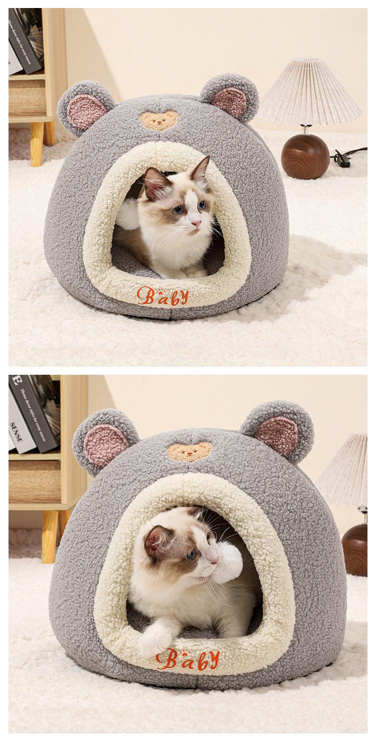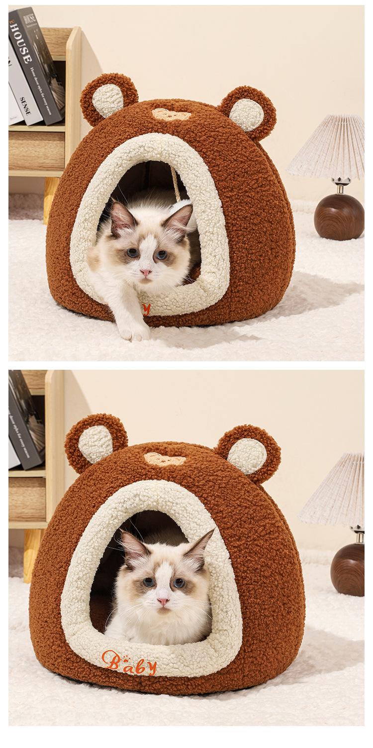 Ninho de Gato Little Bear Outono e Inverno Novo Gato Quente Fechado Casa de Dormir Ninho de Animal de Estimação Sofá de Gato Quarto de Gato