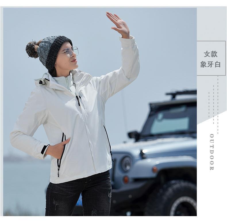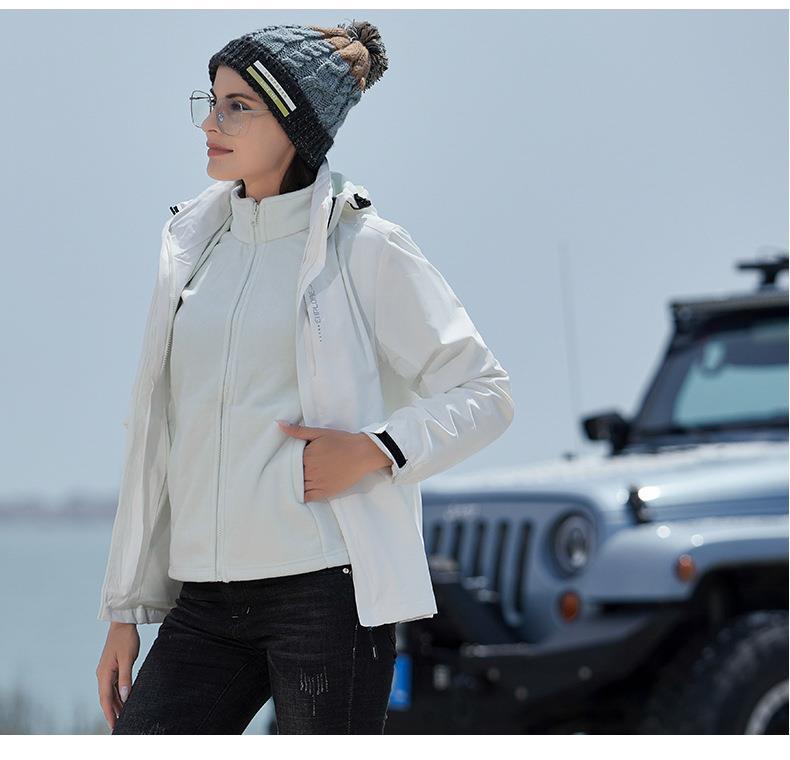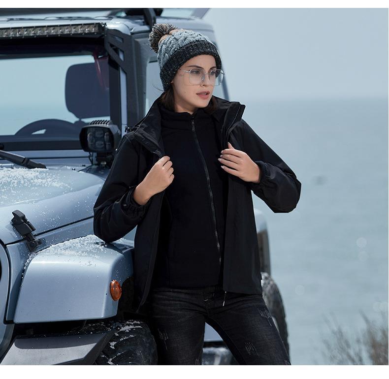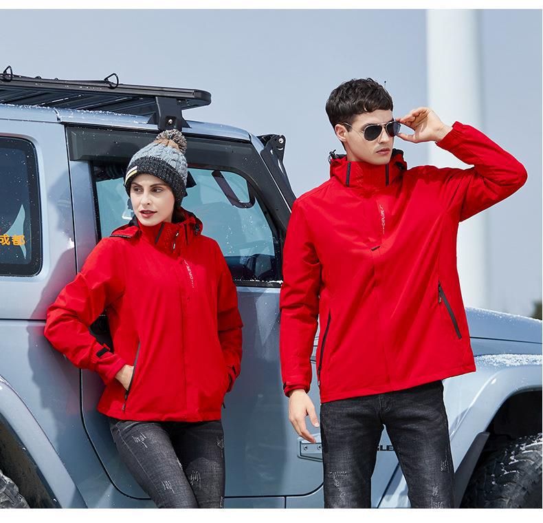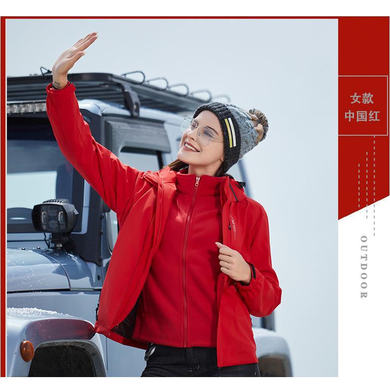 Roupas de corrida ao ar livre homens e mulheres três-em-um destacável de duas peças conjunto forrado de lã engrossado impermeável respirável terno de montanhismo imprimível