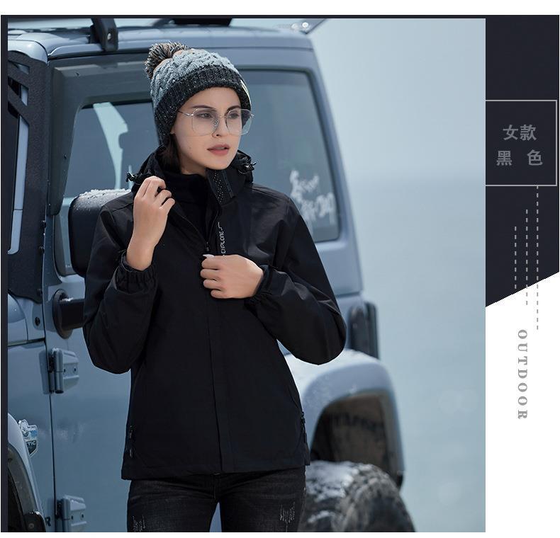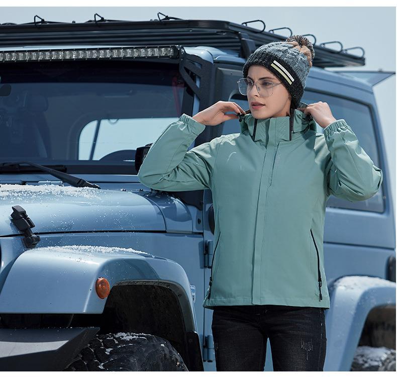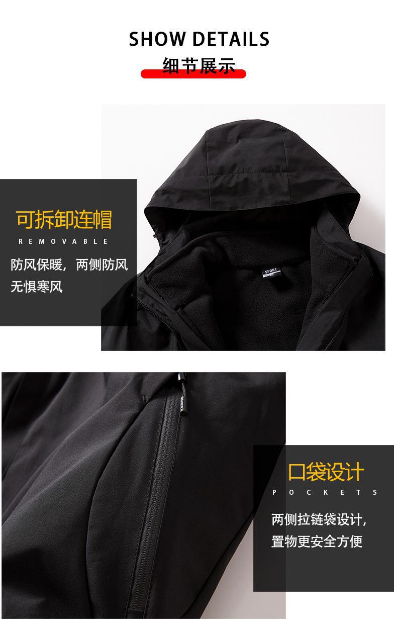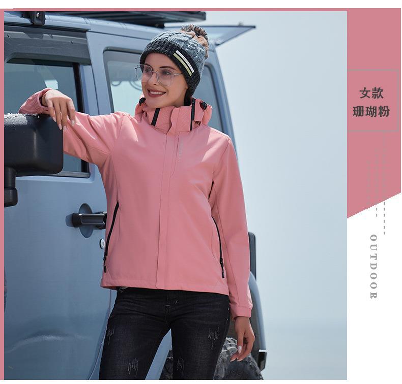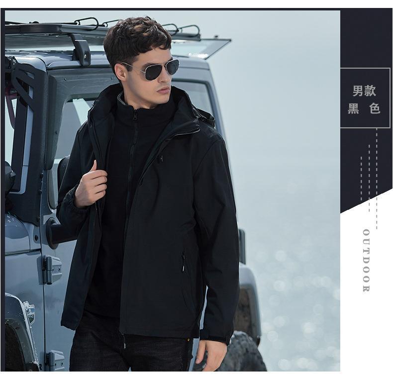 Roupas de corrida ao ar livre homens e mulheres três-em-um destacável de duas peças conjunto forrado de lã engrossado impermeável respirável terno de montanhismo imprimível