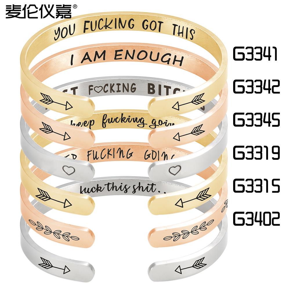 Keding lettering jóias de aço inoxidável personalizado galvanoplastia oco carta colar pingente europeu e americano pulseira transfronteiriça pulseira