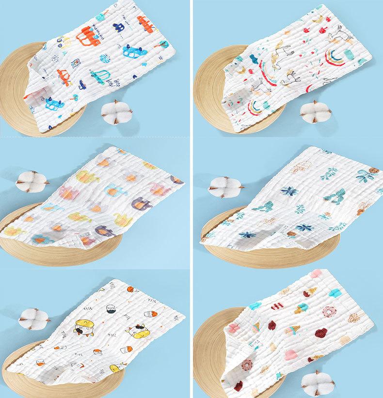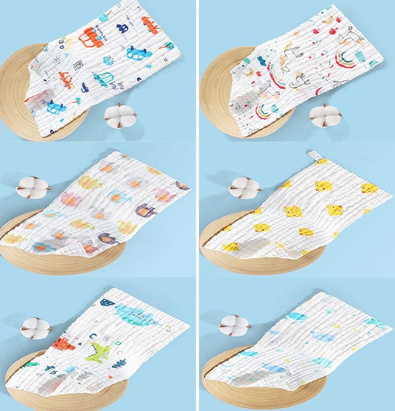 [Pacote com 4] Gaze de bebê Toalha infantil Algodão de seis camadas Toalha pequena Toalha infantil de seis camadas Toalha de lavagem Toalha de rosto