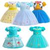 Europeu e Americano Primavera e Verão Novas Meninas Estilizam Vestido Puff Manga Malha Frozen Princesa Aisha Mesmo Vestido