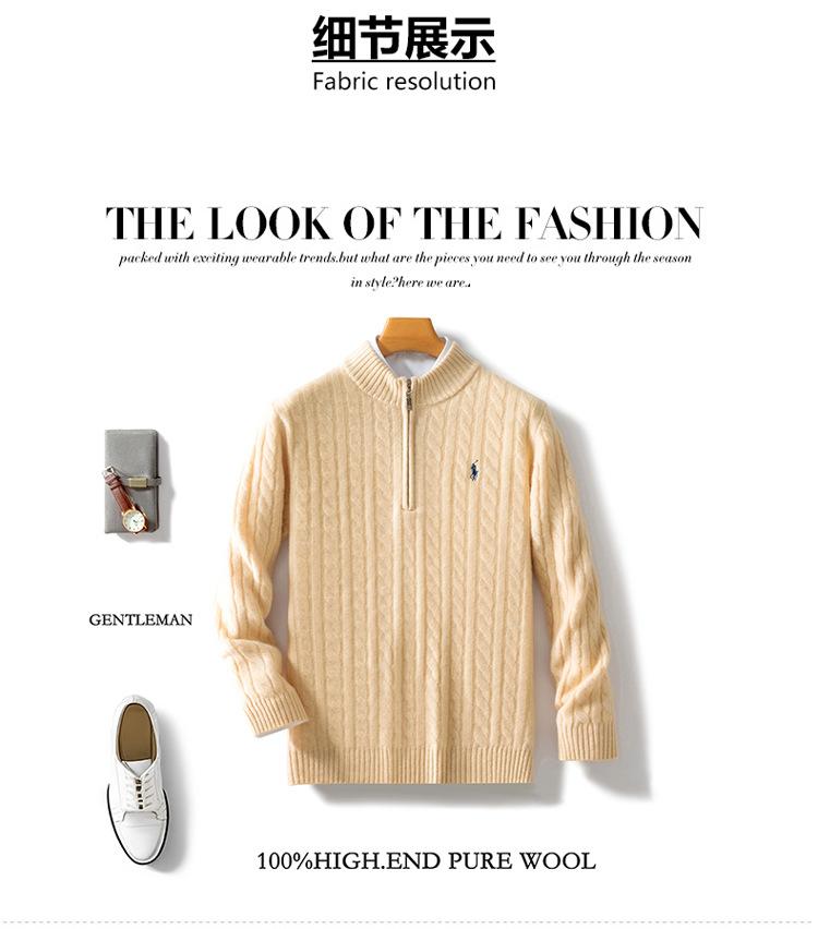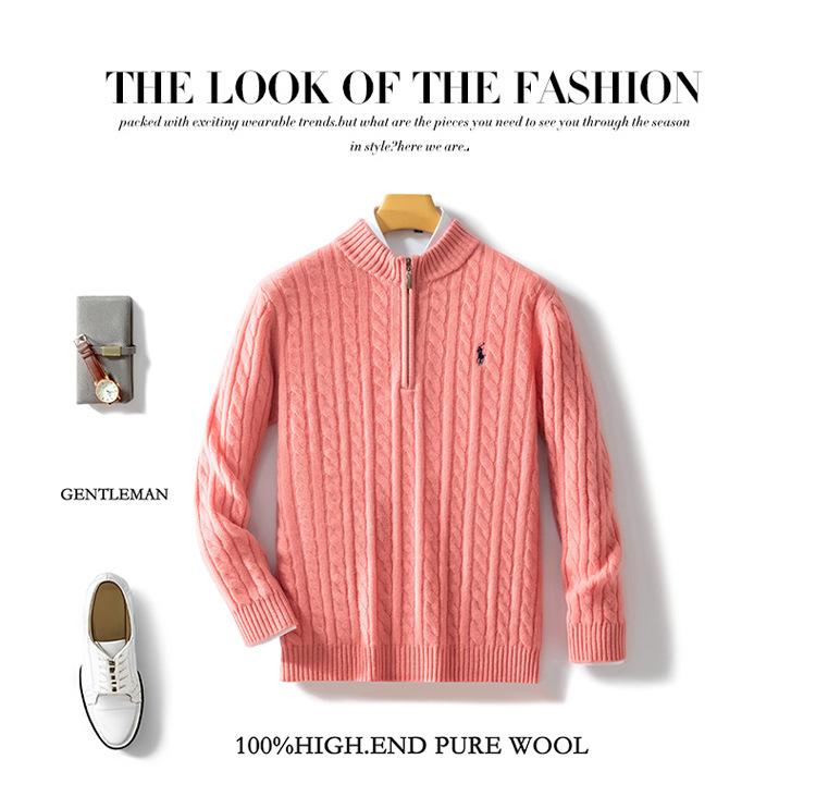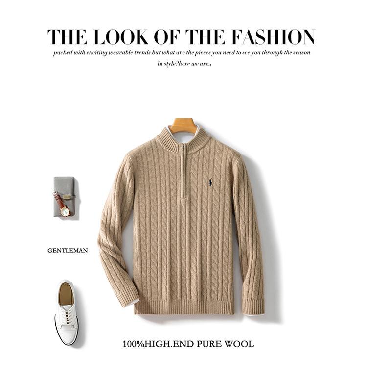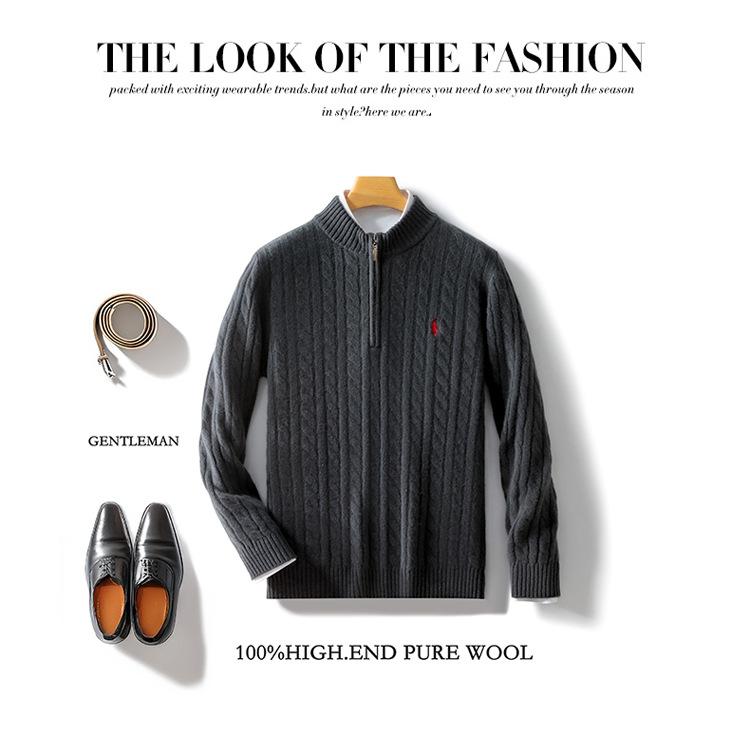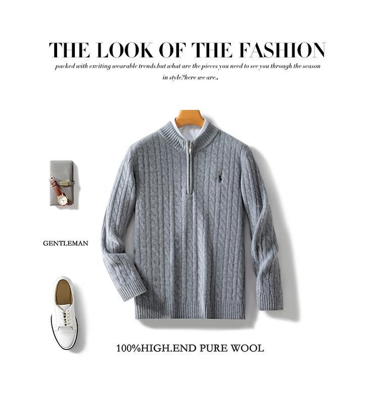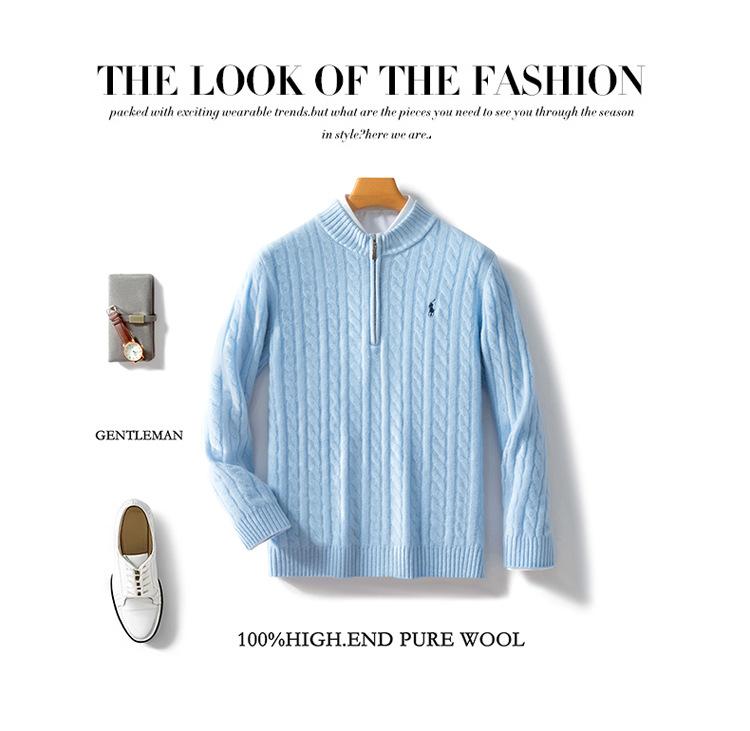 2024 Nova Chegada Suéter de Lã Masculino Gola Meia Alta Outono e Inverno Zíper Engrossado Torção Pulôver Camisa de Base de Malha Suéter