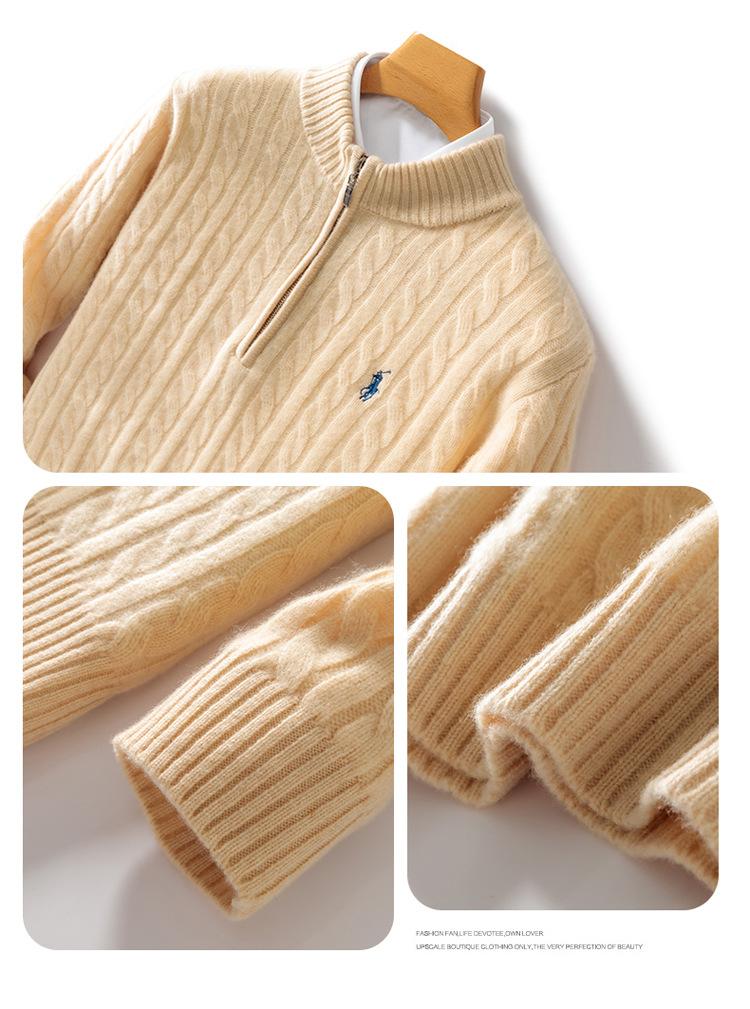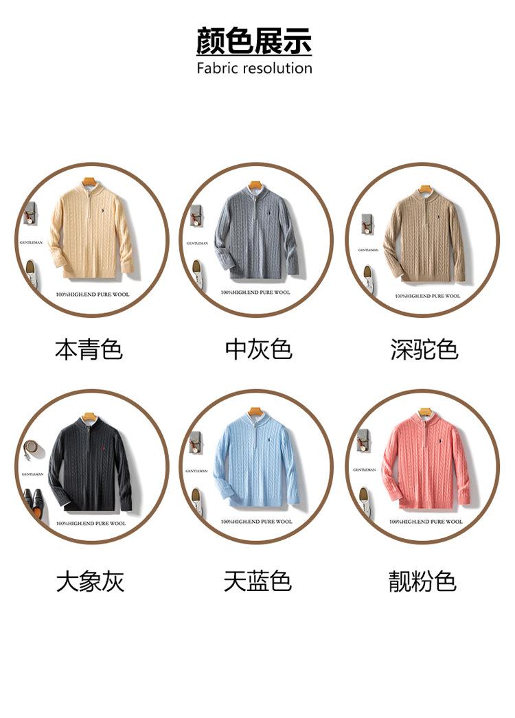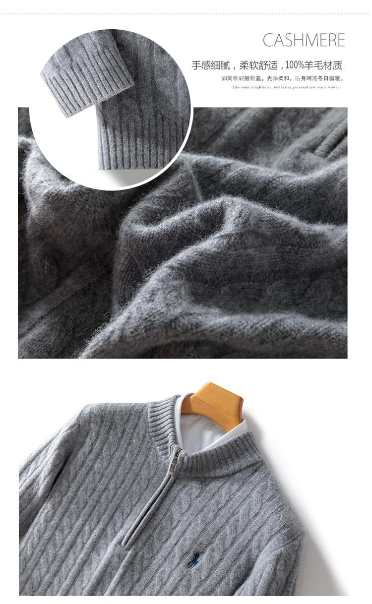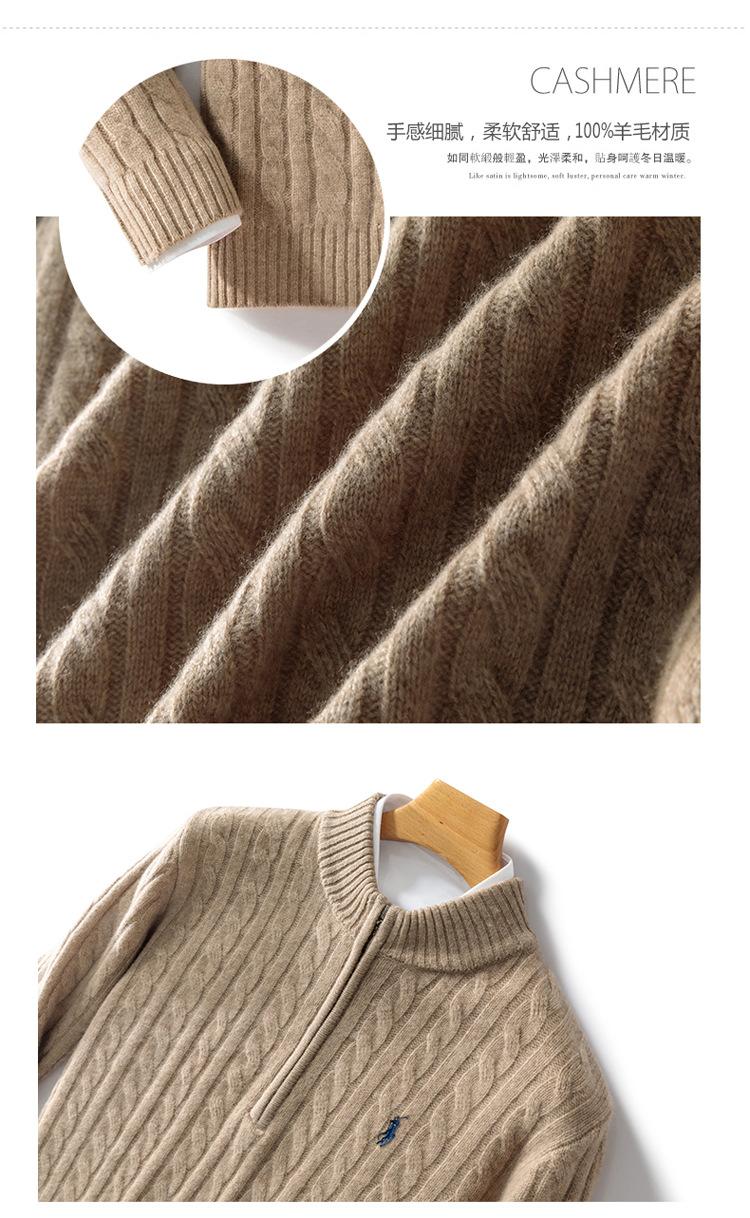 2024 Nova Chegada Suéter de Lã Masculino Gola Meia Alta Outono e Inverno Zíper Engrossado Torção Pulôver Camisa de Base de Malha Suéter