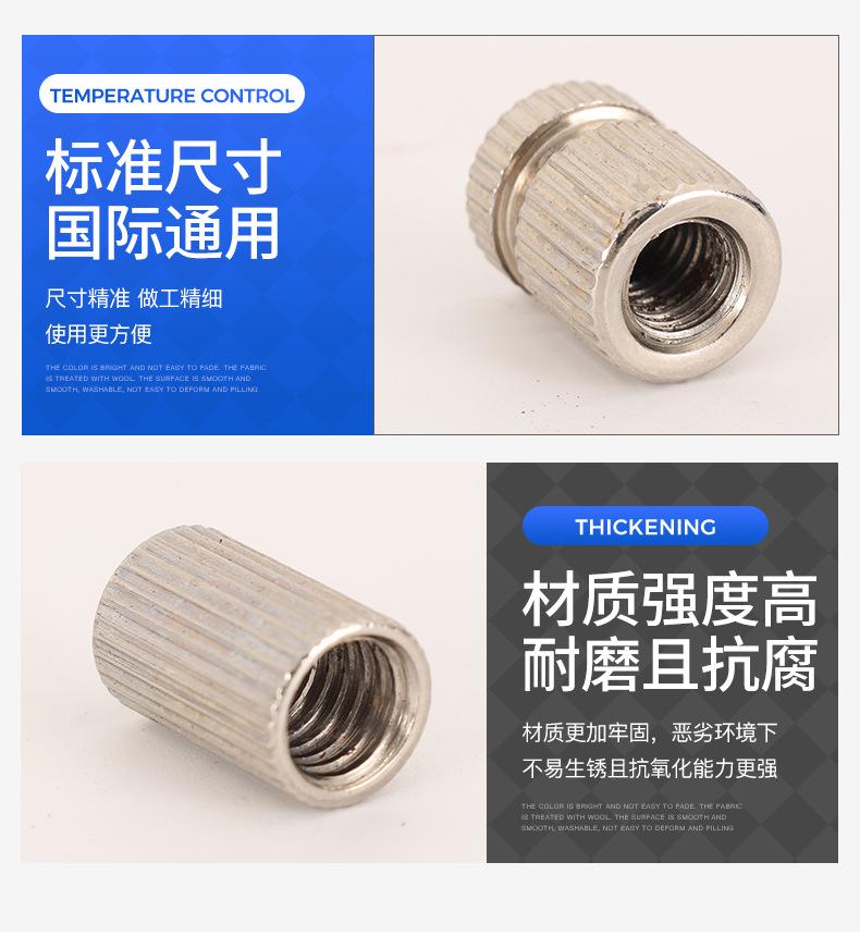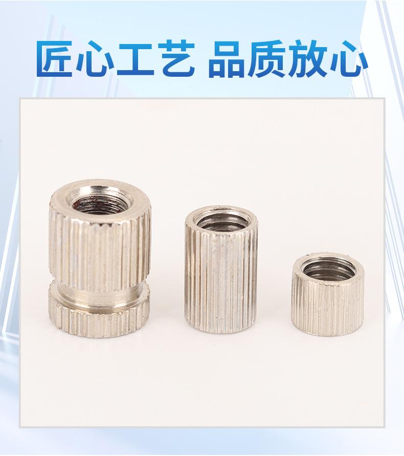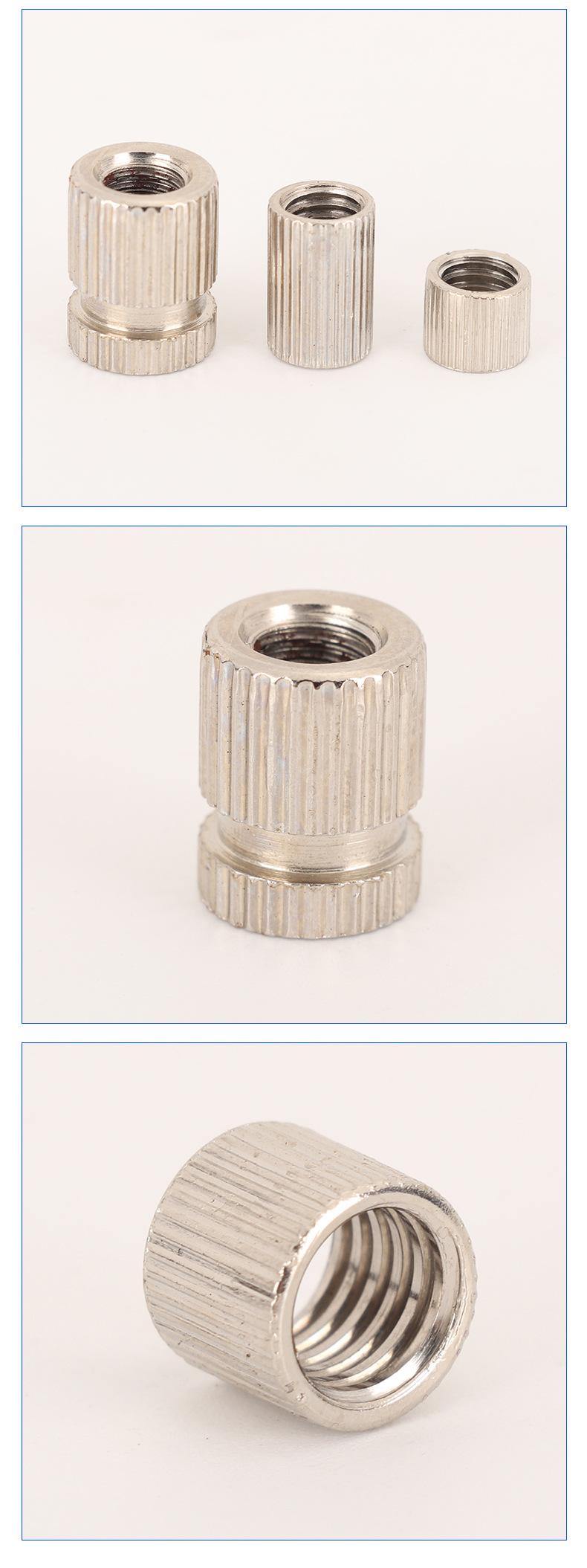 Insira a porca serrilhada, porca de injeção dupla, porca serrilhada, peças embutidas de cobre, porca de cobre de alta precisão agora