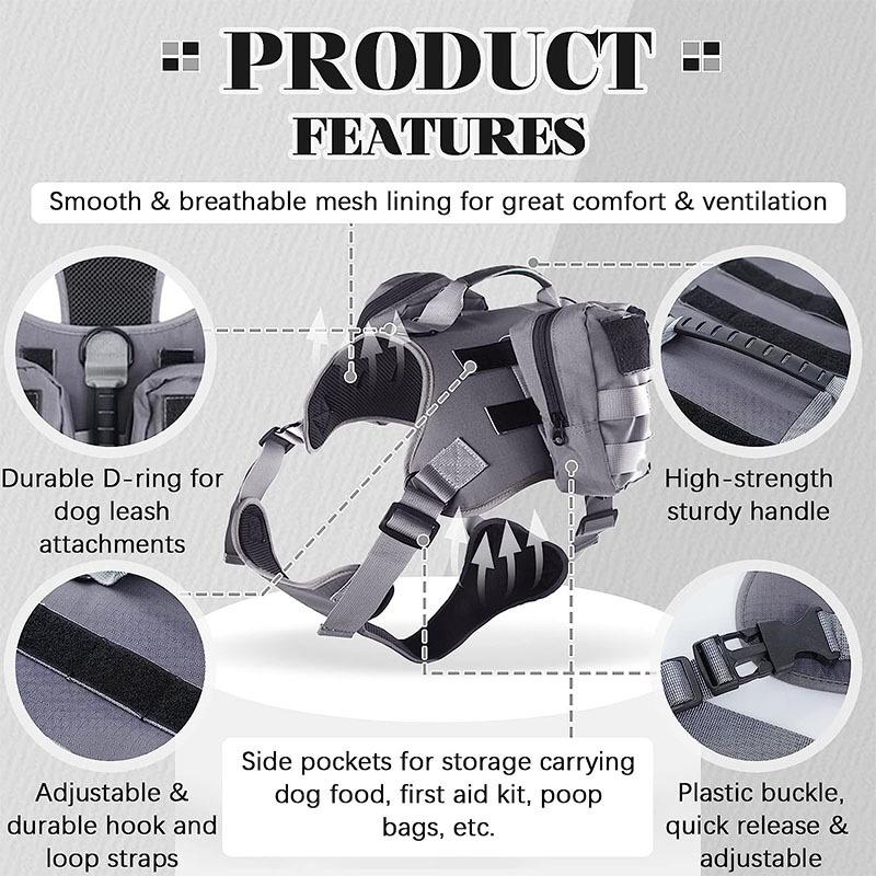 Nova cinta de cachorro grande cinta de peito para animais de estimação ao ar livre cão andando trela treinamento correndo tático pet bolsa
