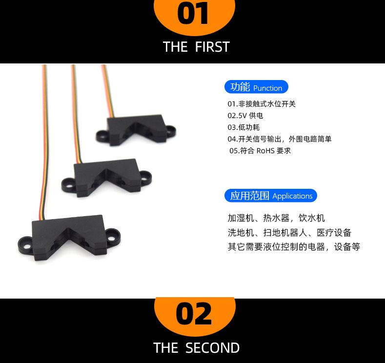 O interruptor fotoelétrico de nível de líquido é um interruptor de tamanho pequeno, potência de espera ultrabaixa com funções poderosas, funções diversificadas, precisão profissional, sem necessidade de furação, e pode ser personalizado de acordo com as diferentes necessidades do usuário. A detecção sem contato é muito conveniente de instalar, profissional, precisa, segura, confiável e estável em desempenho. O modelo é BL-YW-CFL, e suas funções principais são lembrete de falta de água e lembrete de água cheia. Tem uma ampla gama de aplicações em máquinas de álcool em gel, bebedouros, aparelhos de aromaterapia e outros campos.