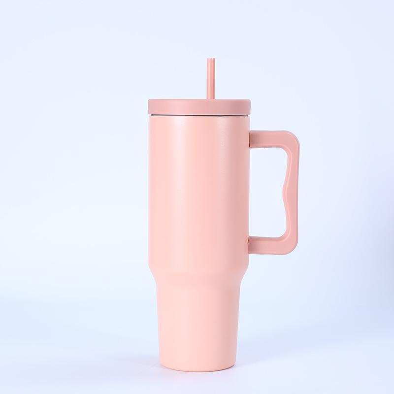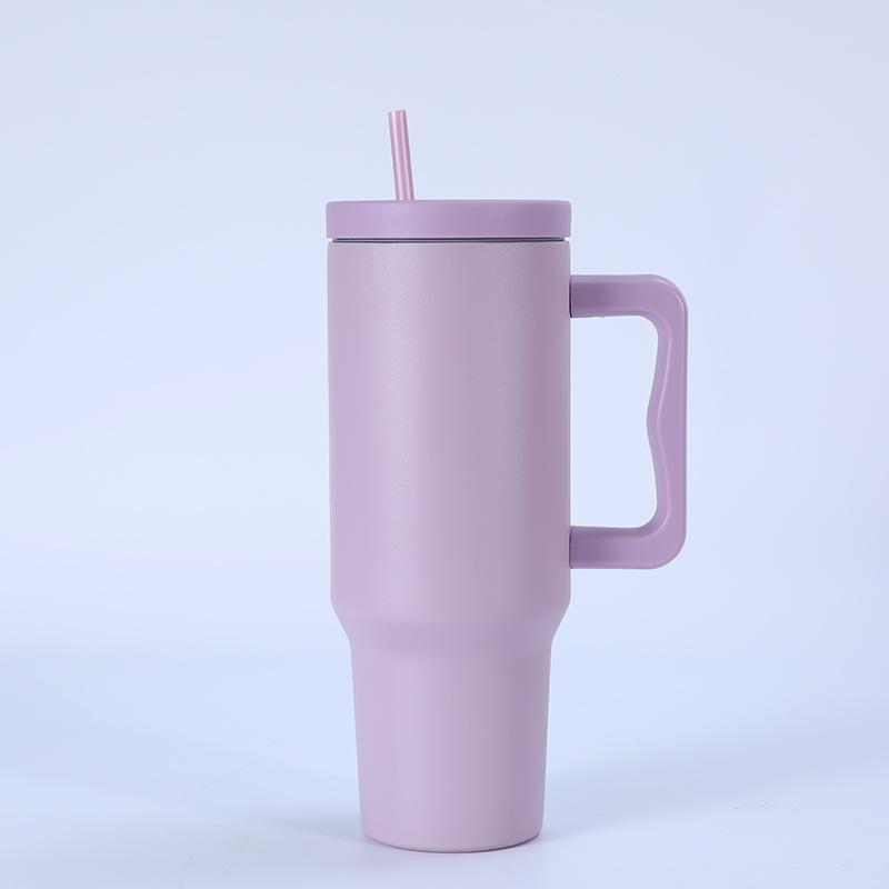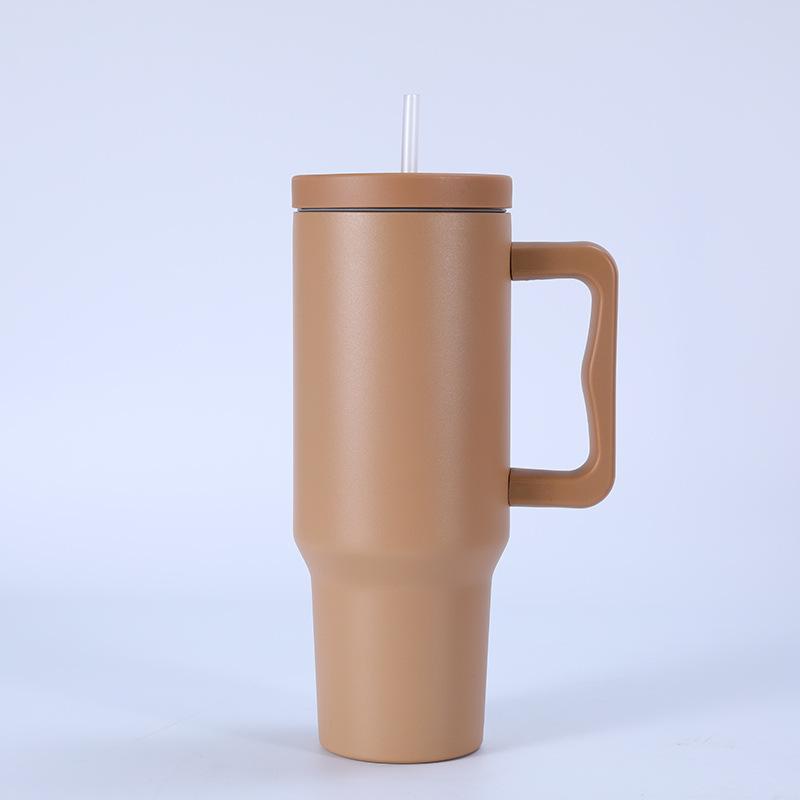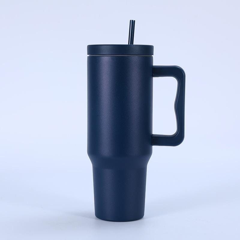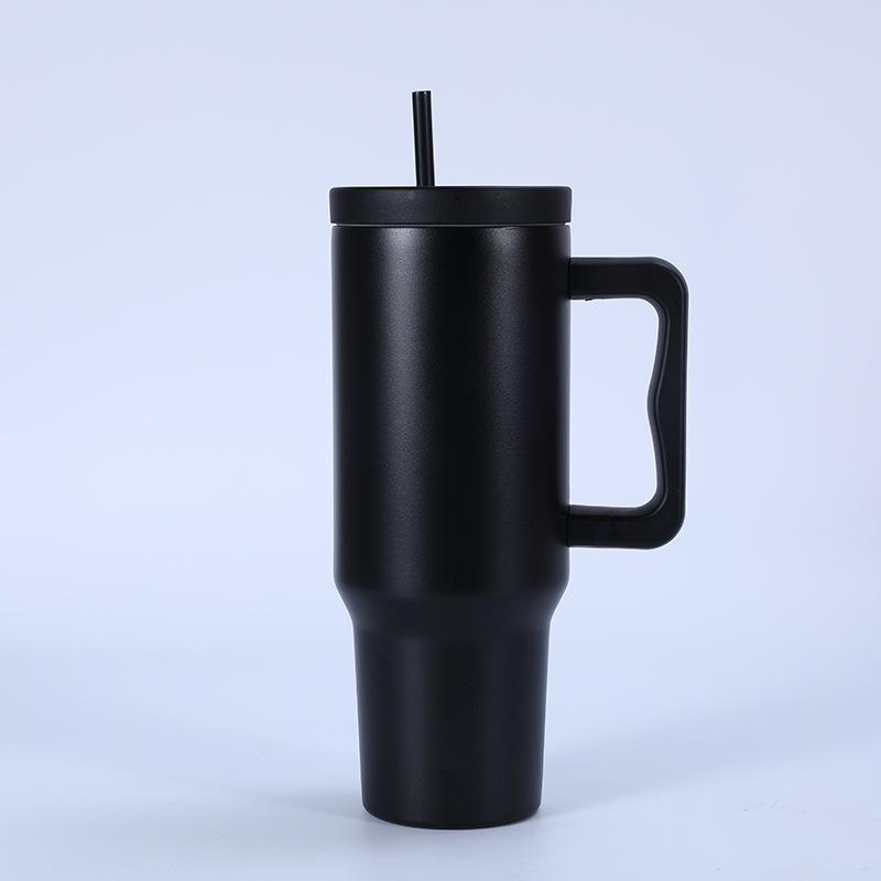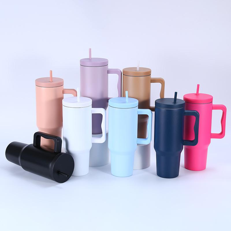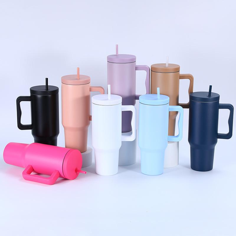 Tampa plana de três gerações transfronteiriça 40 onças copo de carro simples camada dupla 304 copo de gelo de aço inoxidável alça palha copo térmico