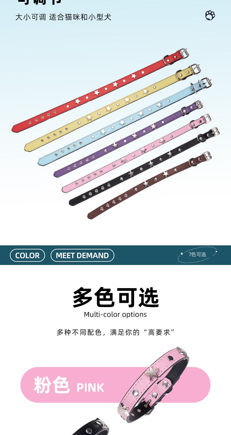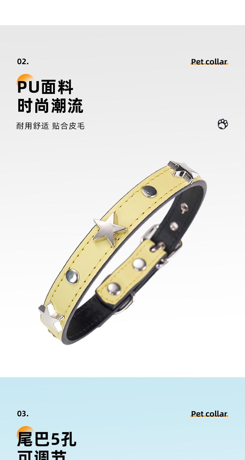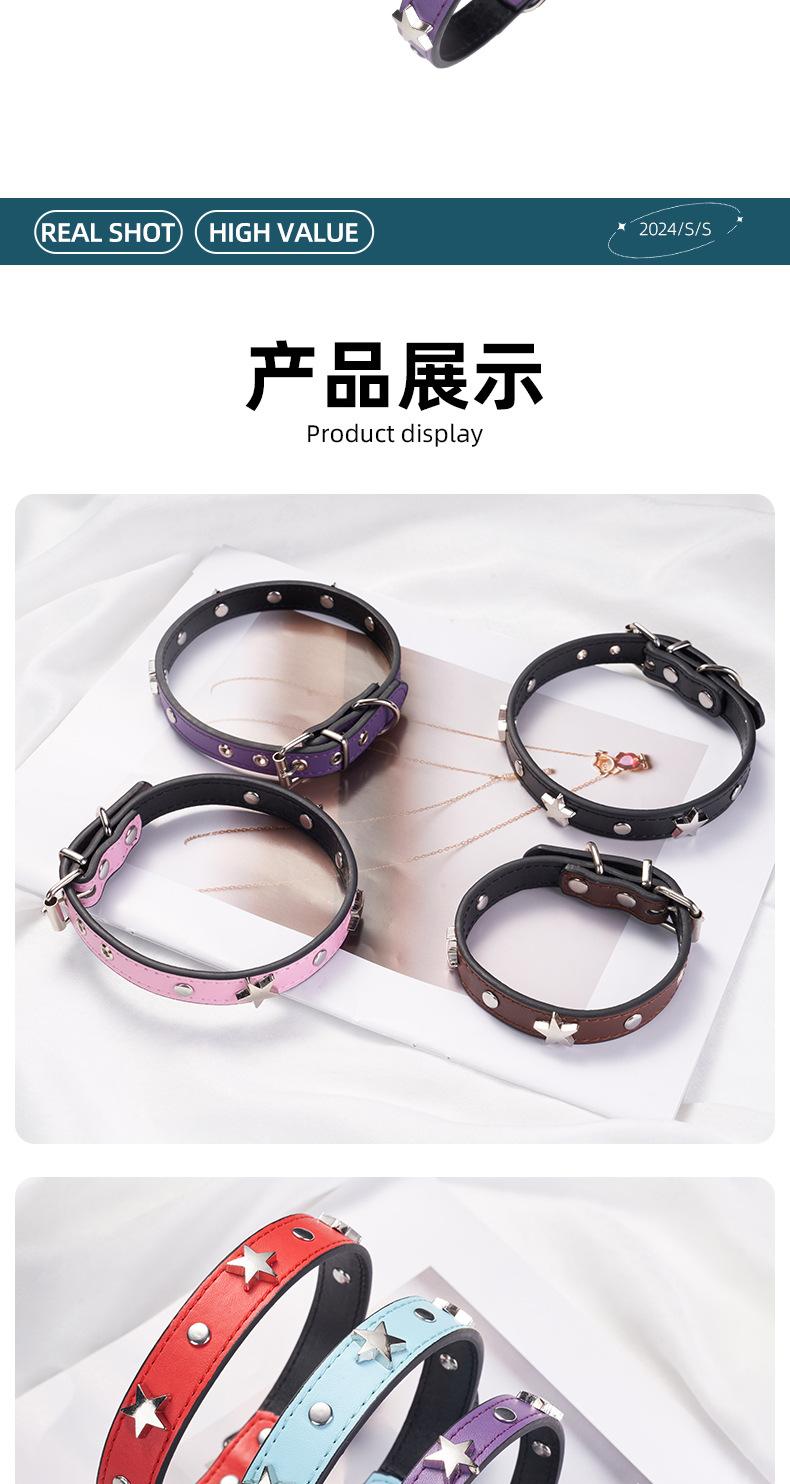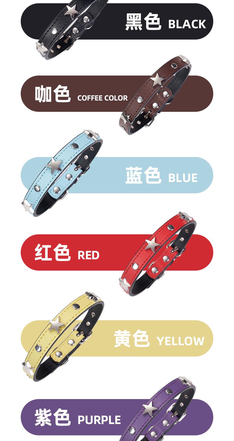 Coleira de couro Amazon cross-border para gatos pequenos e médios, coleira de cachorro estrela de cinco pontas em estoque, coleira para animais de estimação, atacado