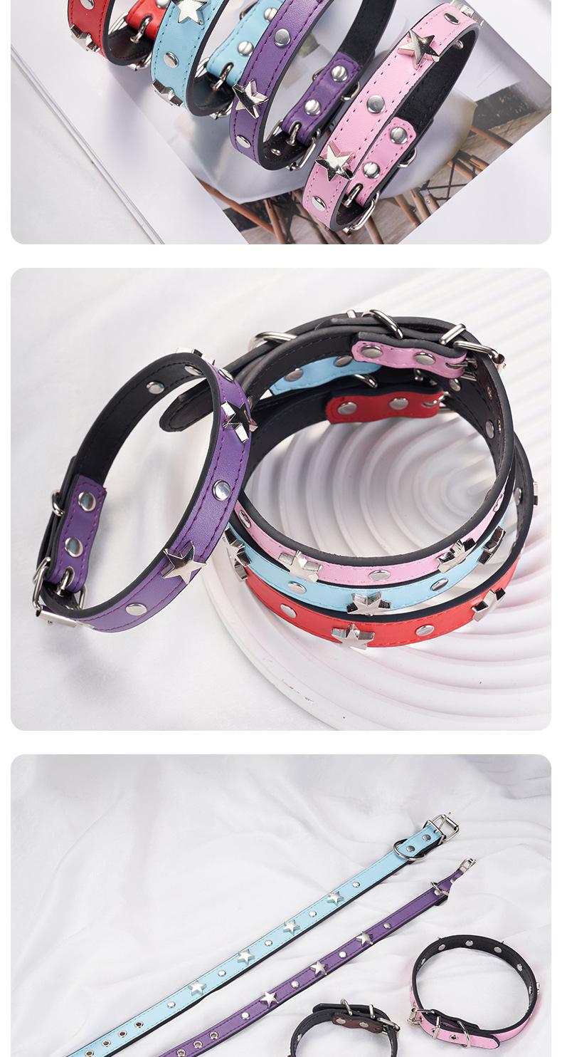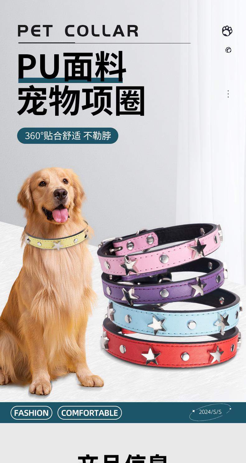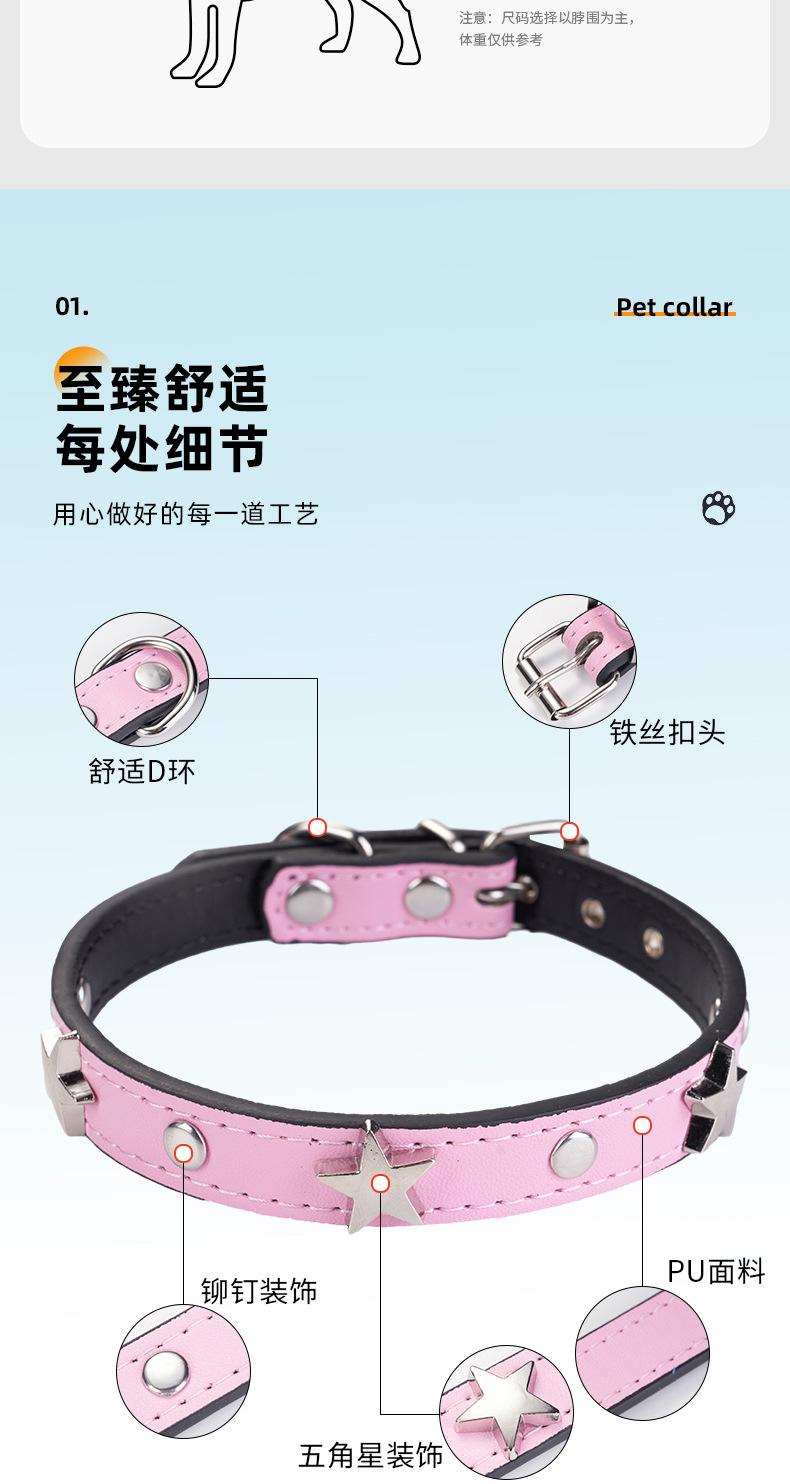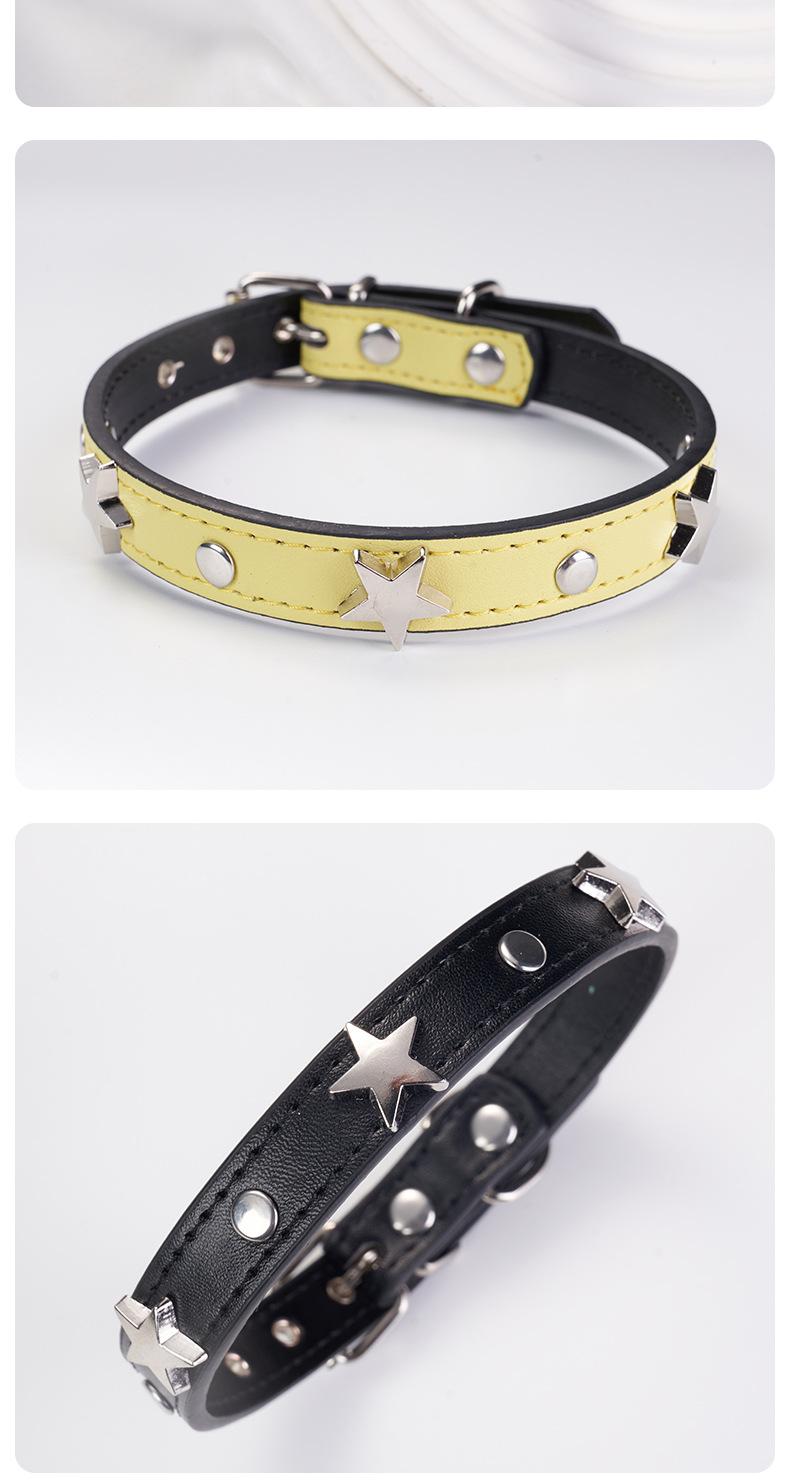 Coleira de couro Amazon cross-border para gatos pequenos e médios, coleira de cachorro estrela de cinco pontas em estoque, coleira para animais de estimação, atacado